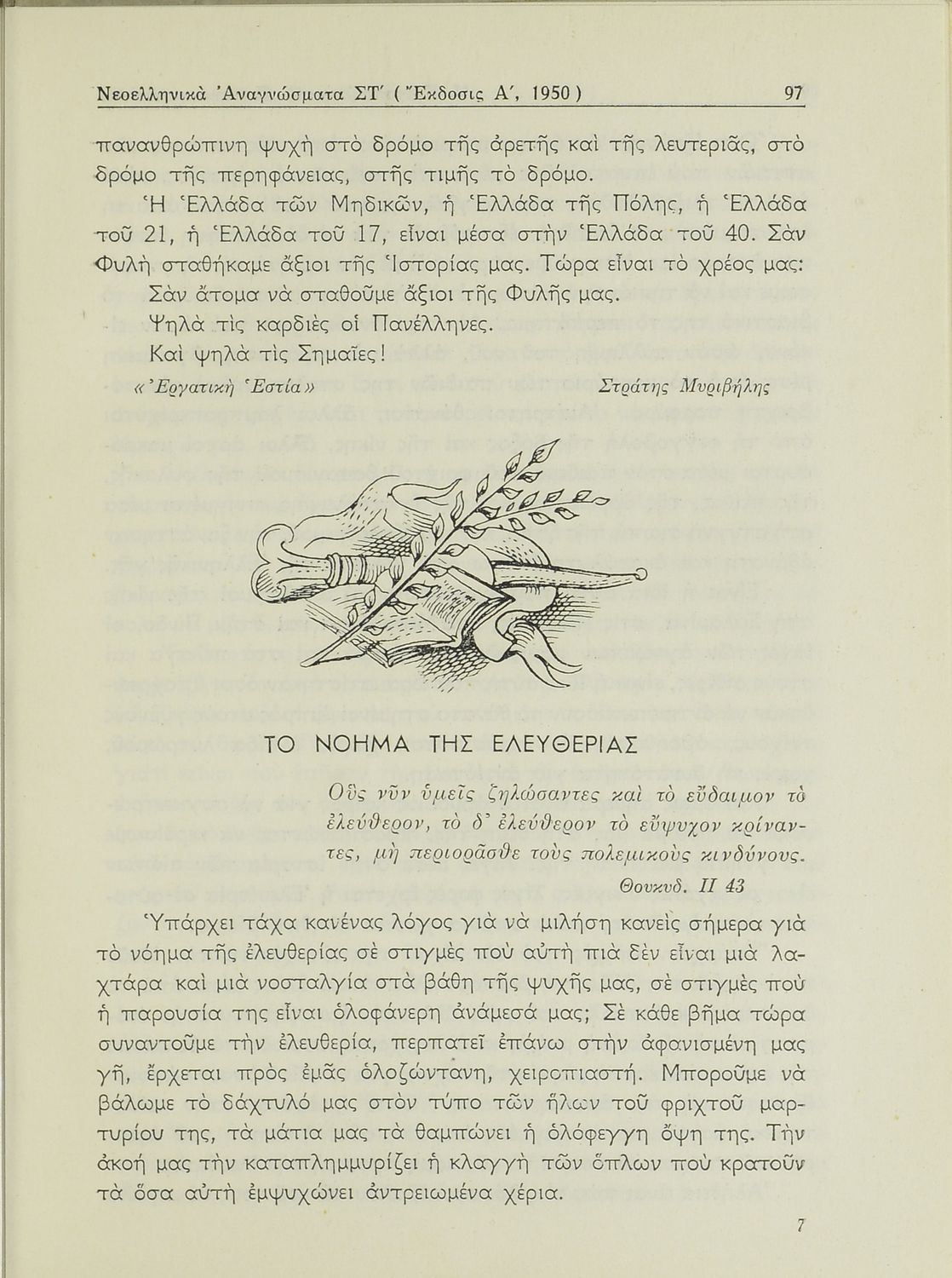 Σχολικό εγχειρίδιο Νέων Ελληνικών ΣΤ΄ Γυμνασίου και Λυκείου που περιλαμβάνει κείμενα Ελλήνων και ξένων συγγραφέων με θέματα από την σύγχρονη ελληνική ιστορία και την οικογενειακή και θρησκευτική ζωή, και ...