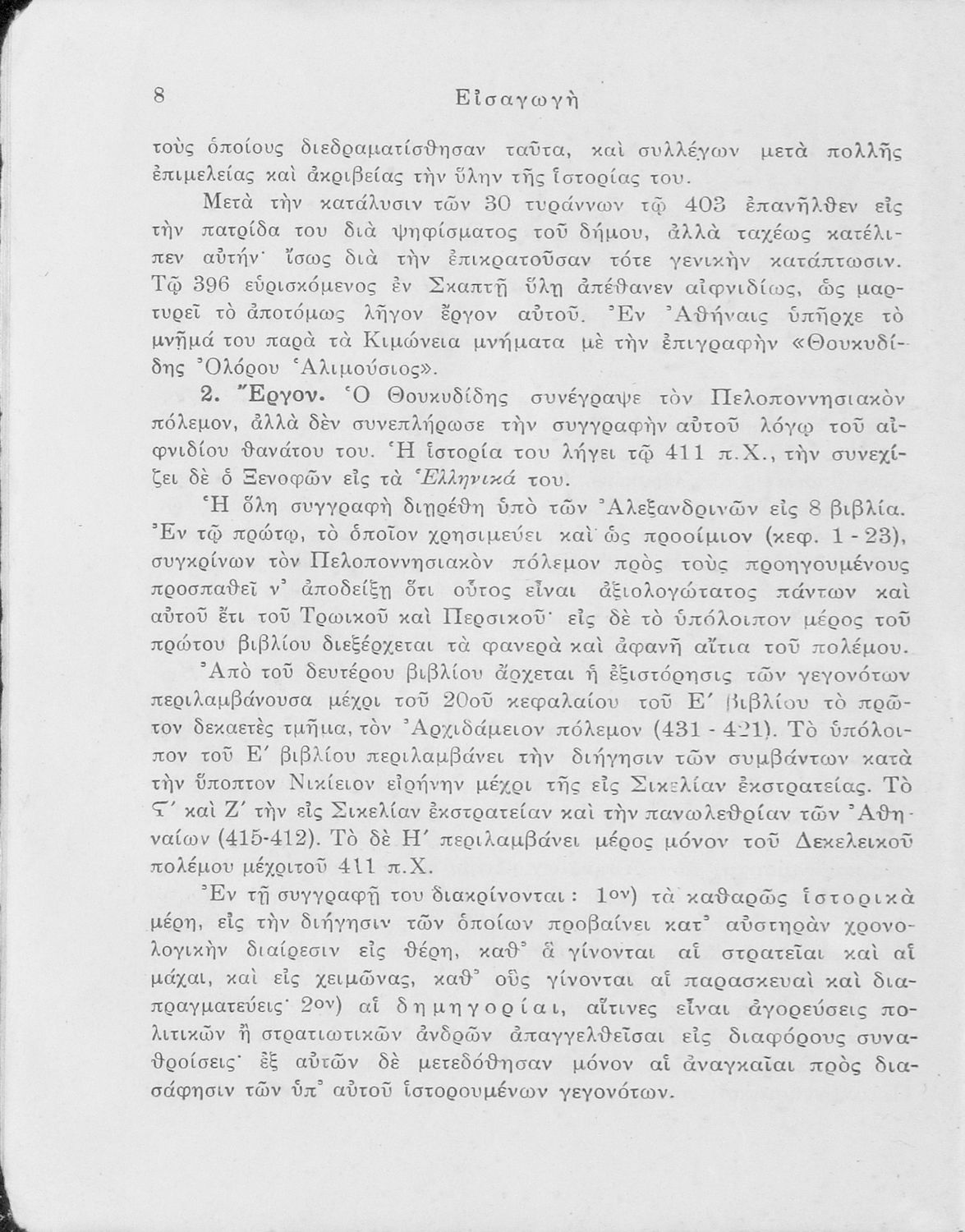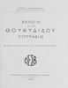 Βαθμίδα εκπαίδευσης: Δευτεροβάθμια Τάξη: Δ' Γυμνασίου παλαιού τύπου / Ε' Γυμνασίου παλαιού τύπου / ΣΤ' Γυμνασίου παλαιού τύπου Μάθημα: Αρχαία Ελληνικά Γλώσσα: Καθαρεύουσα Παρουσίαση περιεχομένου: Σχολικό εγχειρίδιο Αρχαίων Ελληνικών για τις Δ΄, Ε΄ και ΣΤ΄ Γυμνασίου παλαιού τύπου που περιλαμβάνει σύντομο βιογραφικό σημείωμα του Θουκυδίδη, περιγραφή του ιστορικού πλαισίου, αποσπάσματα από τα Πλαταϊκά, τα Λεσβιακά και τον Επιτάφιο του Περικλή και ερμηνευτικές σημειώσεις. |