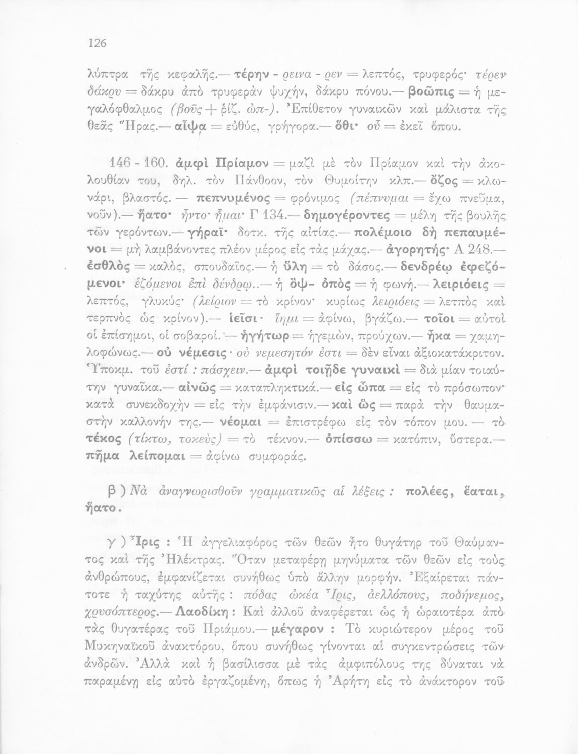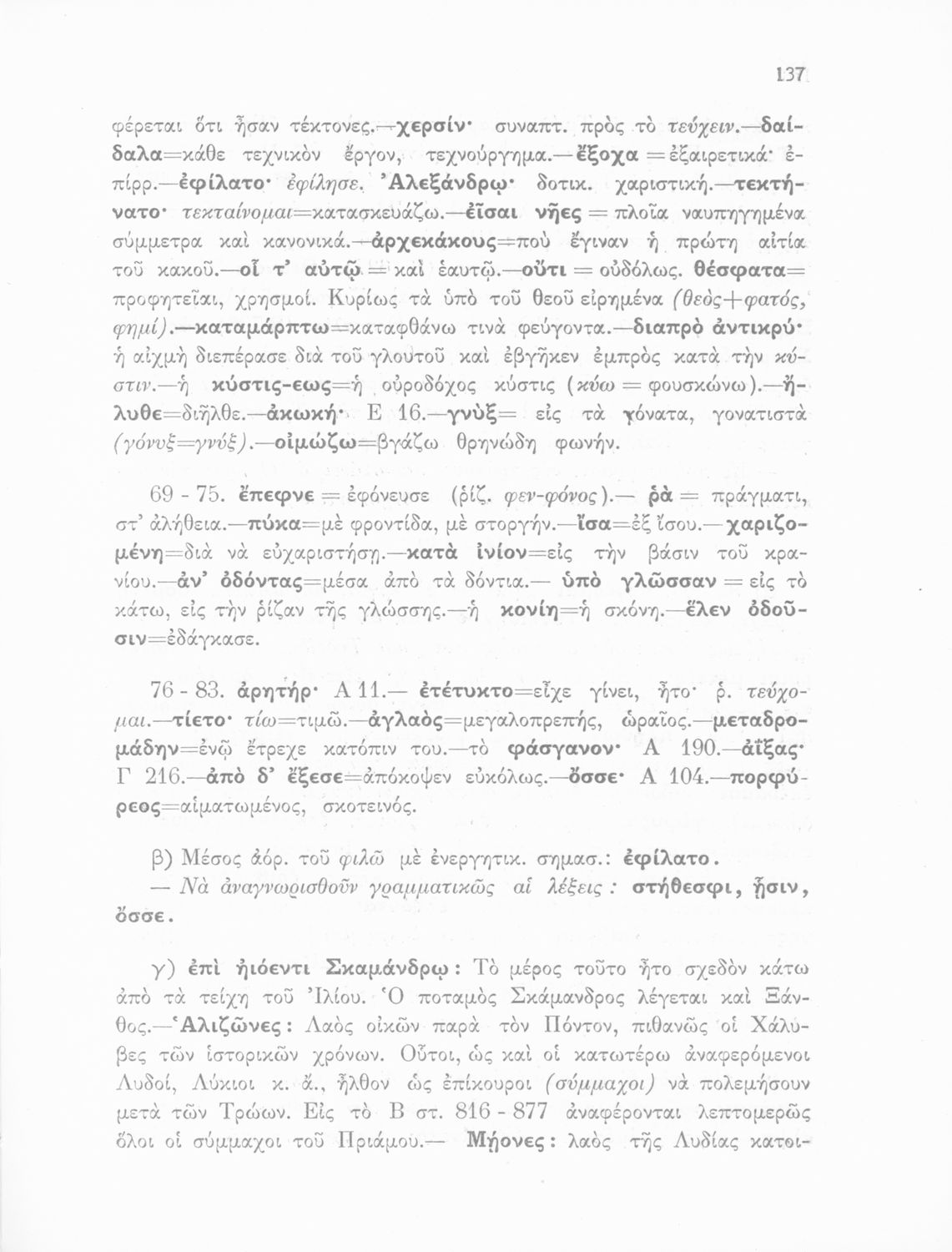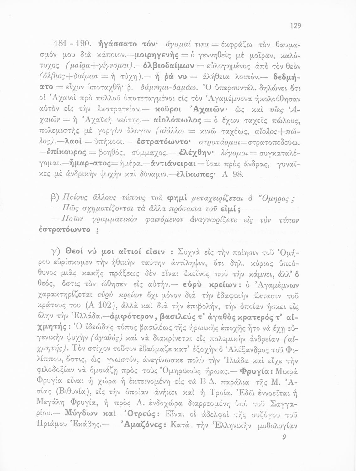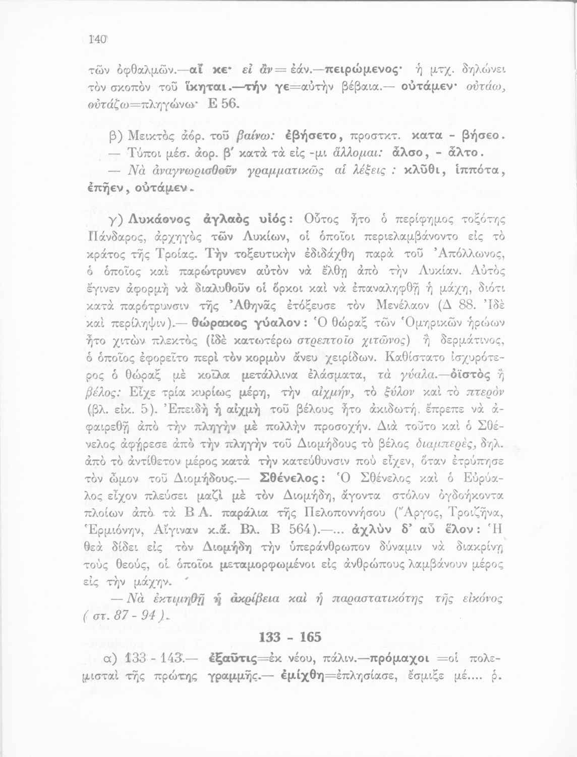 Μαθητικό βοήθημα του Ελληνικού Σχολείου, των Παρθεναγωγείων και του Γυμνασίου για το μάθημα των Αρχαίων Ελληνικών. Περιέχει τις ραψωδίες Ο, Π, Ρ, Σ, Τ, Χ, ψ, Ω από το πρωτότυπο με σχόλια και ερμηνευτικές ...