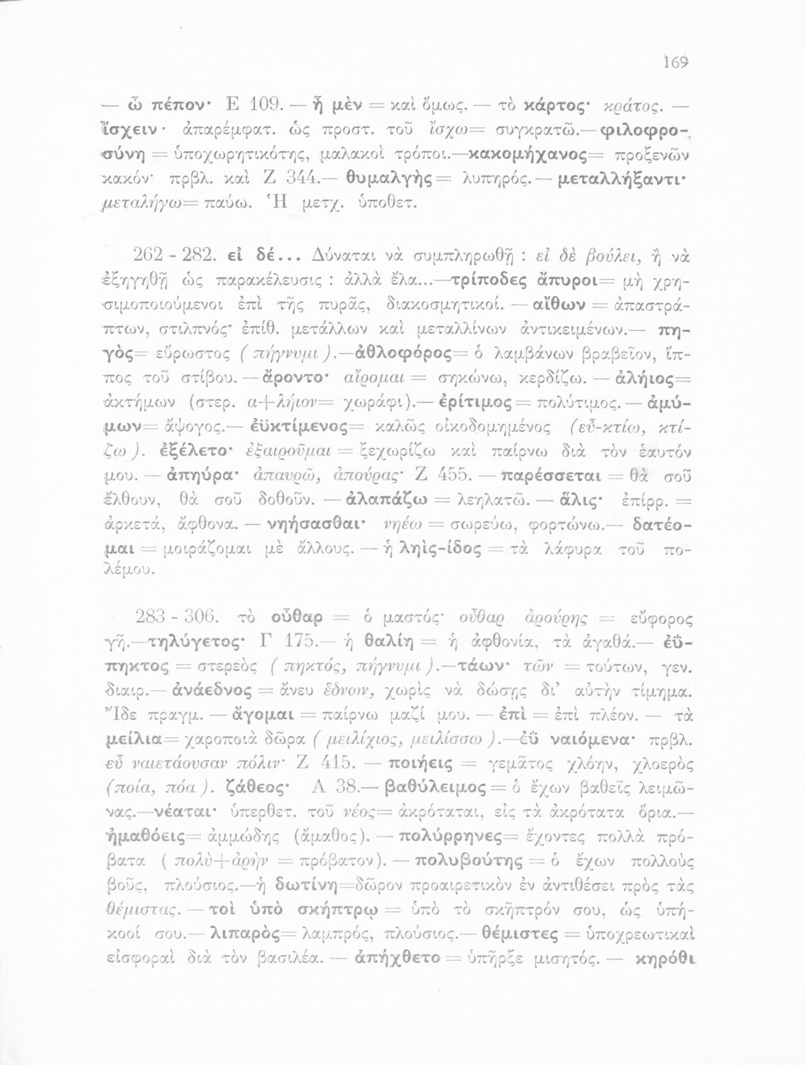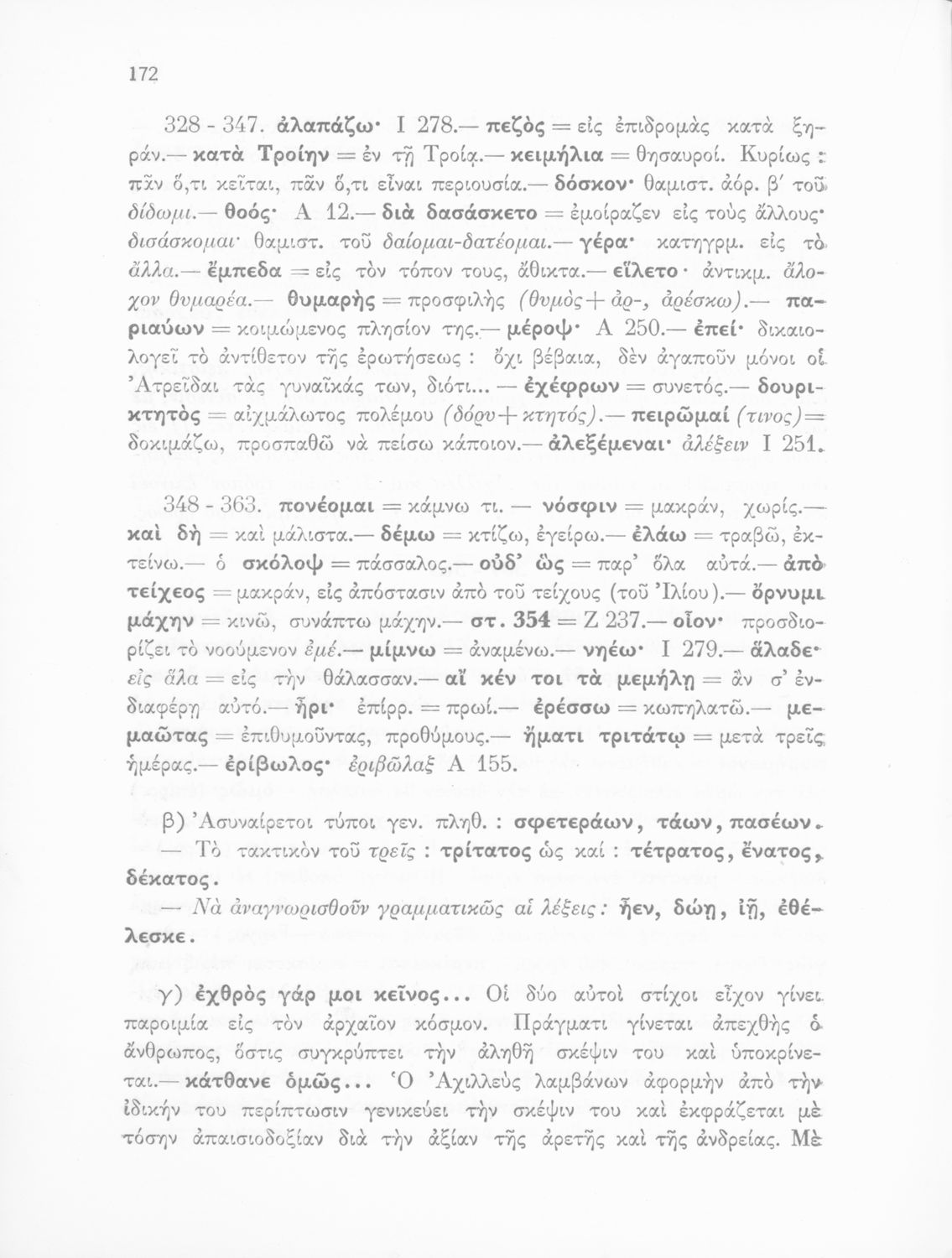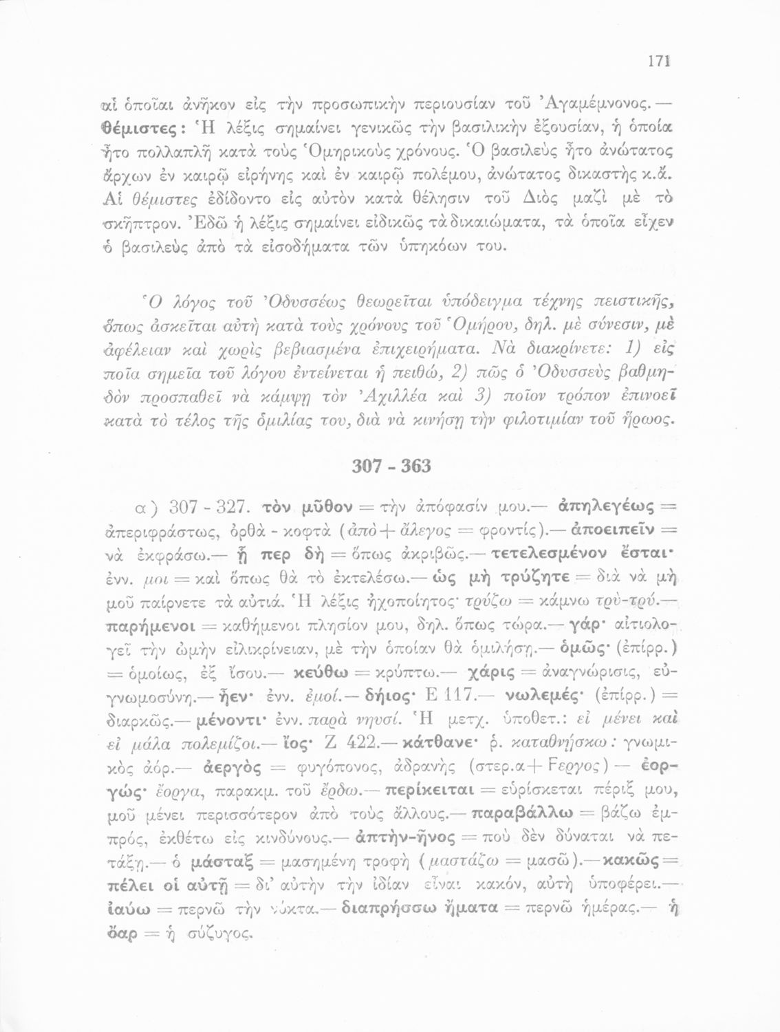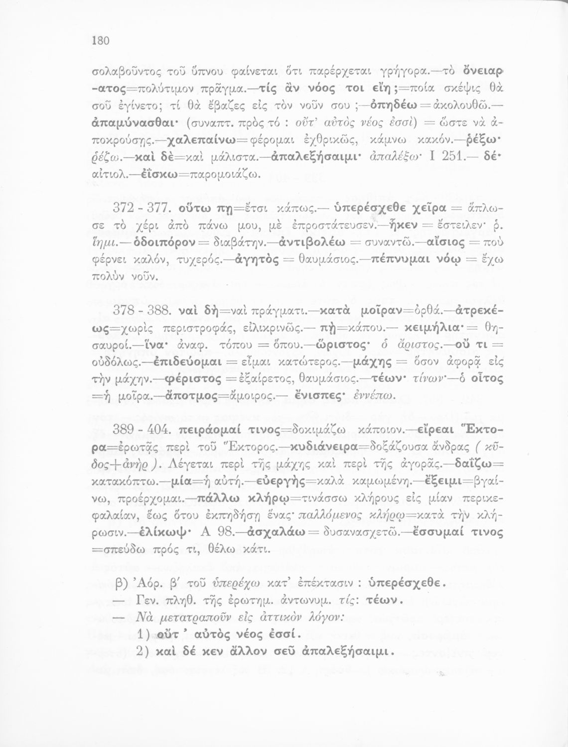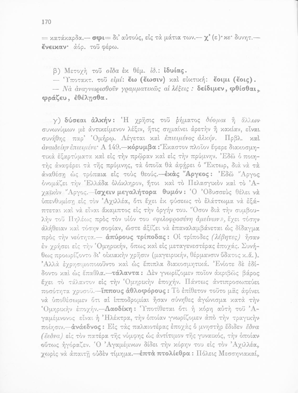 Μαθητικό βοήθημα του Ελληνικού Σχολείου, των Παρθεναγωγείων και του Γυμνασίου για το μάθημα των Αρχαίων Ελληνικών. Περιέχει τις ραψωδίες Ο, Π, Ρ, Σ, Τ, Χ, ψ, Ω από το πρωτότυπο με σχόλια και ερμηνευτικές ...