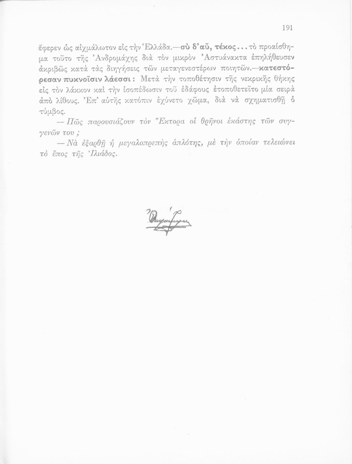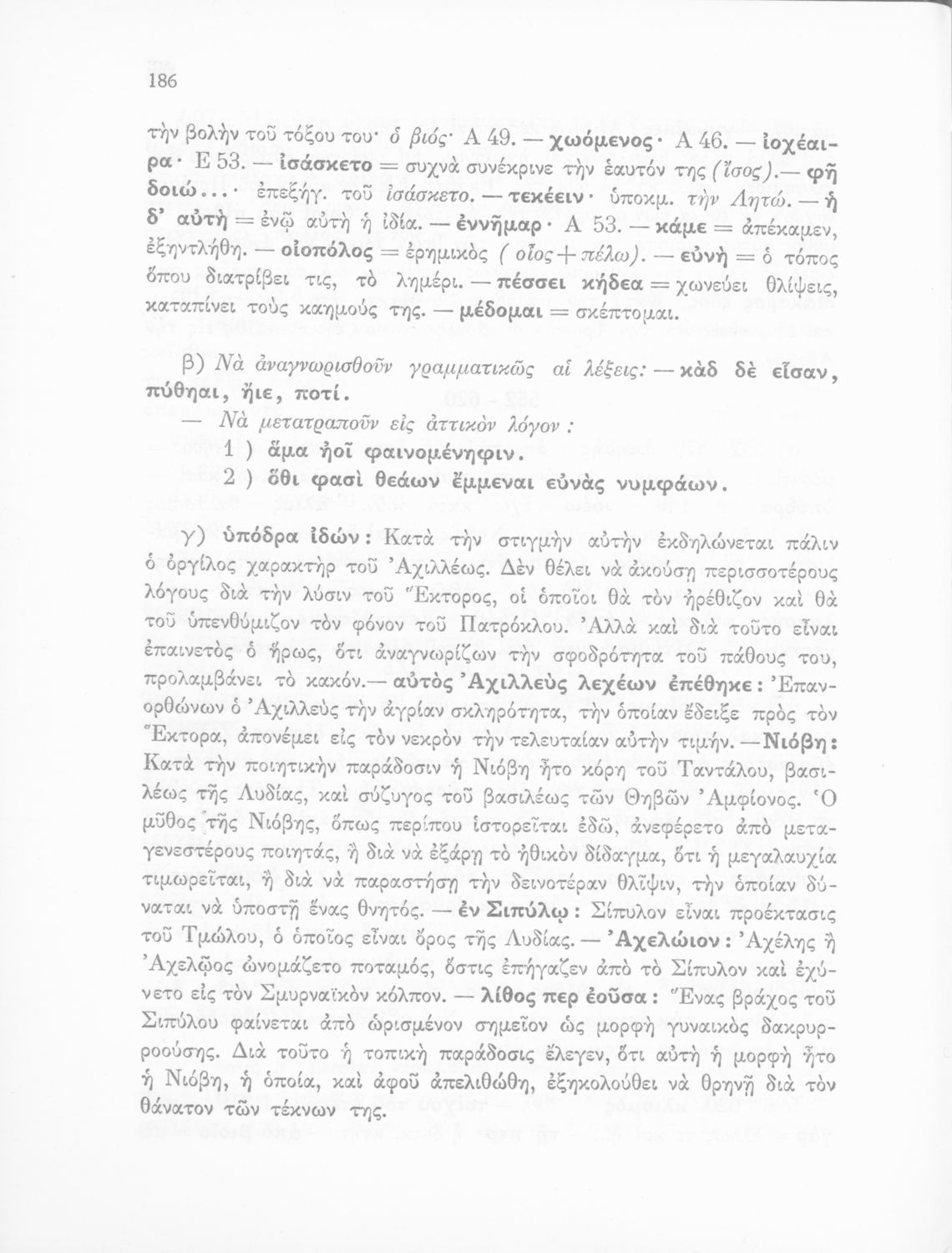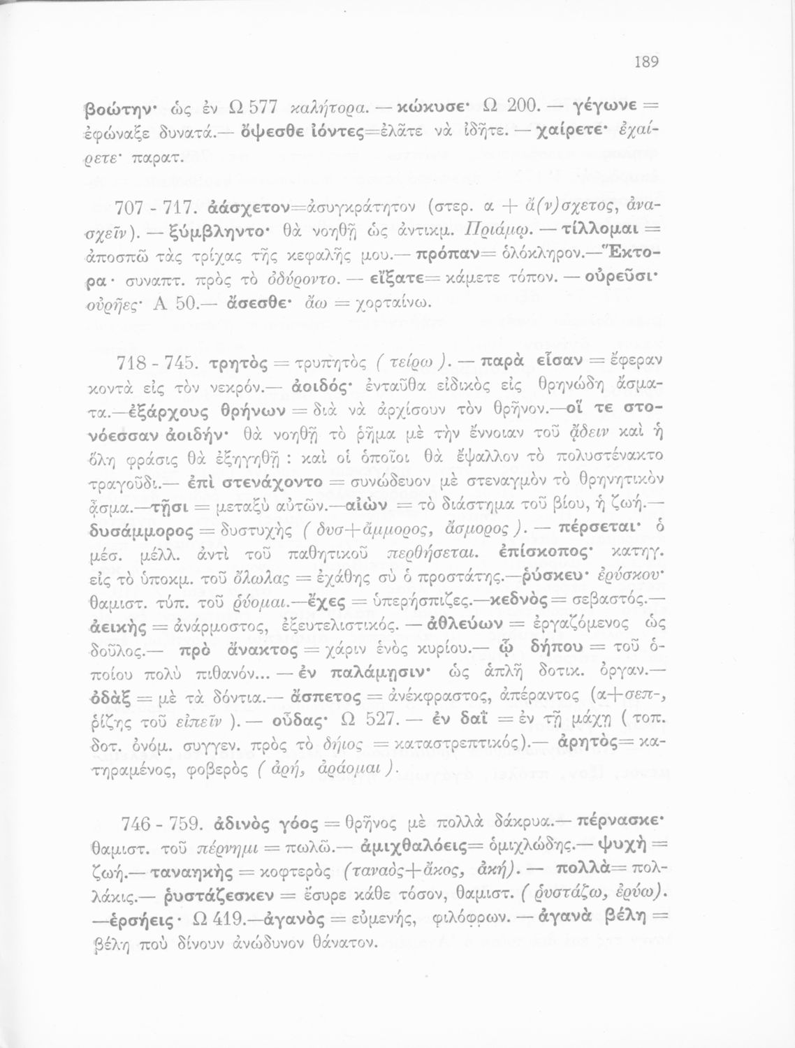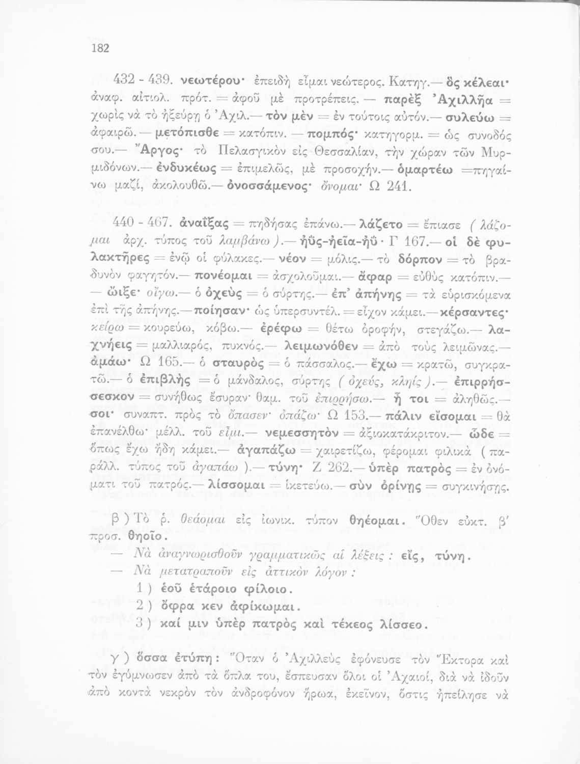 Μαθητικό βοήθημα του Ελληνικού Σχολείου, των Παρθεναγωγείων και του Γυμνασίου για το μάθημα των Αρχαίων Ελληνικών. Περιέχει τις ραψωδίες Ο, Π, Ρ, Σ, Τ, Χ, ψ, Ω από το πρωτότυπο με σχόλια και ερμηνευτικές ...
