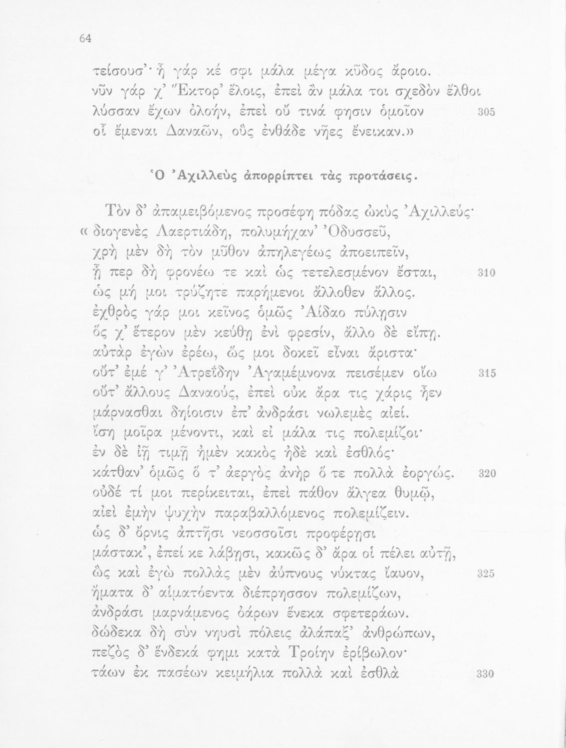 Μαθητικό βοήθημα του Ελληνικού Σχολείου, των Παρθεναγωγείων και του Γυμνασίου για το μάθημα των Αρχαίων Ελληνικών. Περιέχει τις ραψωδίες Ο, Π, Ρ, Σ, Τ, Χ, ψ, Ω από το πρωτότυπο με σχόλια και ερμηνευτικές ...