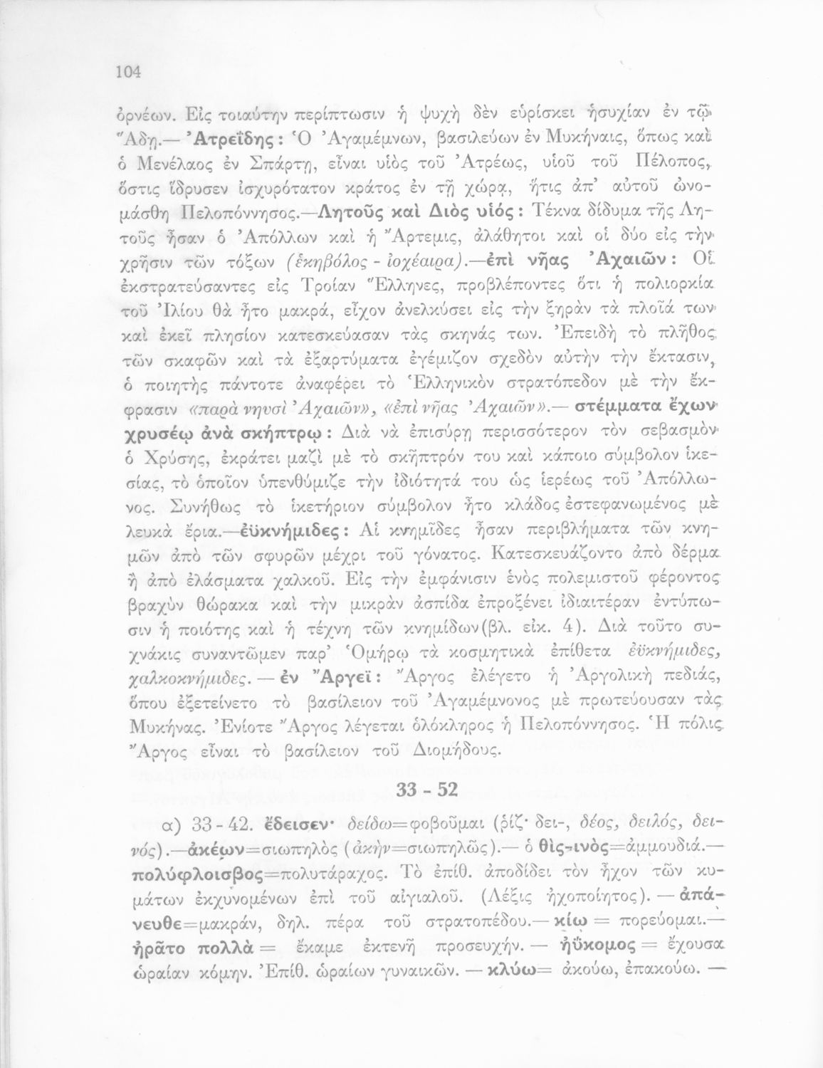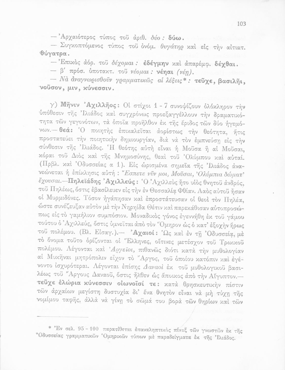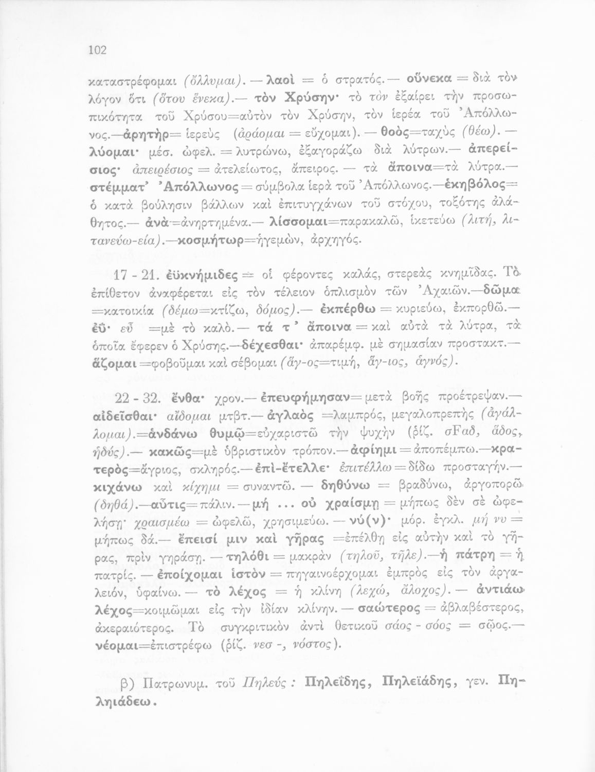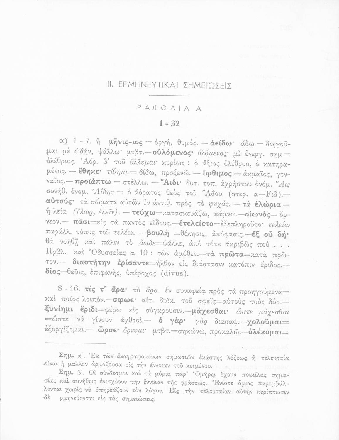 Μαθητικό βοήθημα του Ελληνικού Σχολείου, των Παρθεναγωγείων και του Γυμνασίου για το μάθημα των Αρχαίων Ελληνικών. Περιέχει τις ραψωδίες Ο, Π, Ρ, Σ, Τ, Χ, ψ, Ω από το πρωτότυπο με σχόλια και ερμηνευτικές ...