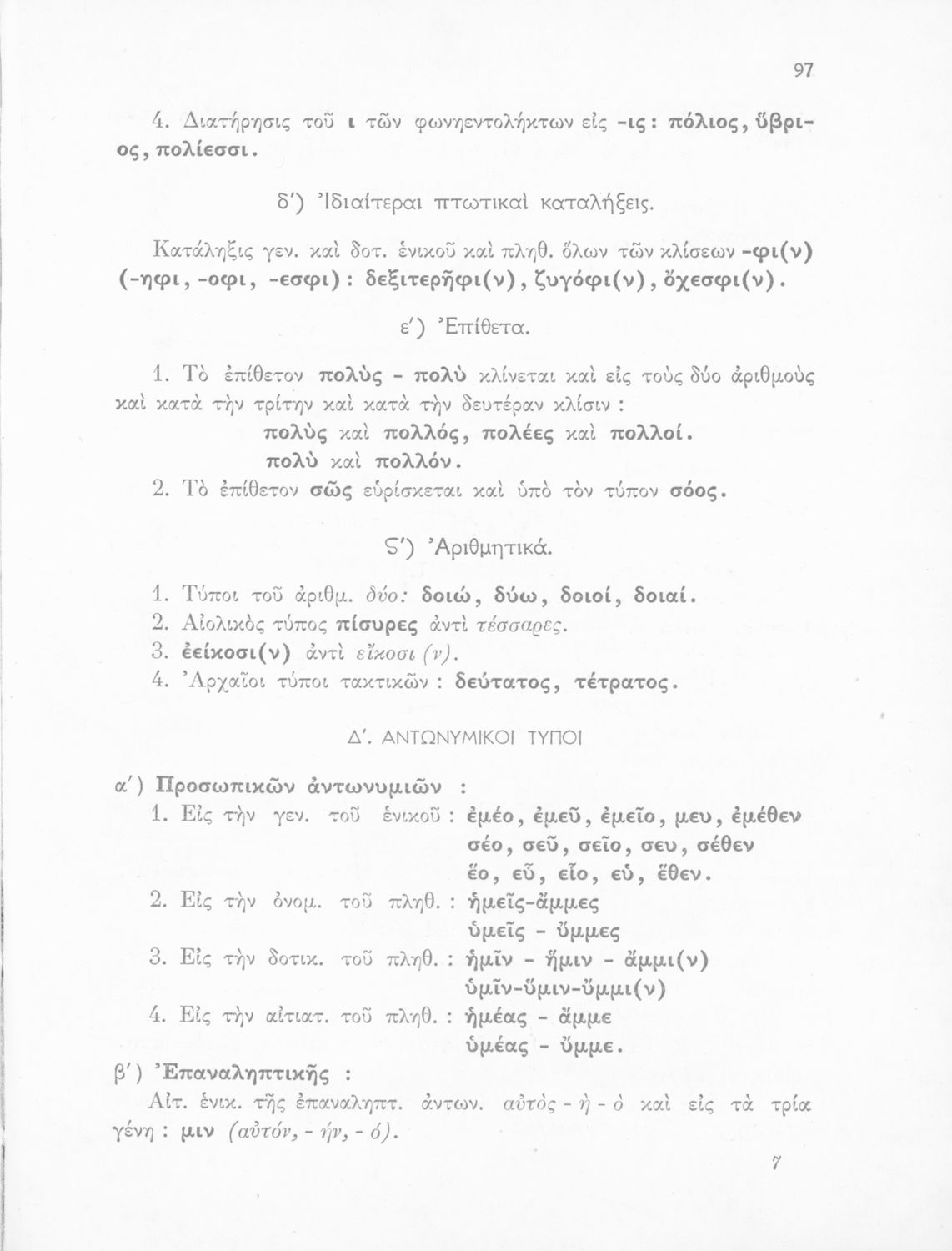Παρουσίαση περιεχομένου: Σχολικό εγχειρίδιο για το μάθημα των Αρχαίων Ελληνικών στο Γυμνάσιο. Περιέχει το αρχαίο κείμενο και μετάφραση ερμηνευτικά, πραγματολογικά σχόλια και λεξιλογικές παρατηρήσεις των συγγραφέων. Στο βιβλίο υπάρχουν εμπιστευτικά γράμματα της μαθήτριας προς τις φίλες της. Παρουσιάζουν τις σχέσεις με το άλλο φύλλο, το νεανικό ειδύλλιο και το προξενιό από τους συγγενείς. Επίσης, αναφέρεται στη συνήθεια της κατασκήνωση κατά τους θερινούς μήνες. Τα γράμματα έχουν ημερομηνία 1970, 1972.
