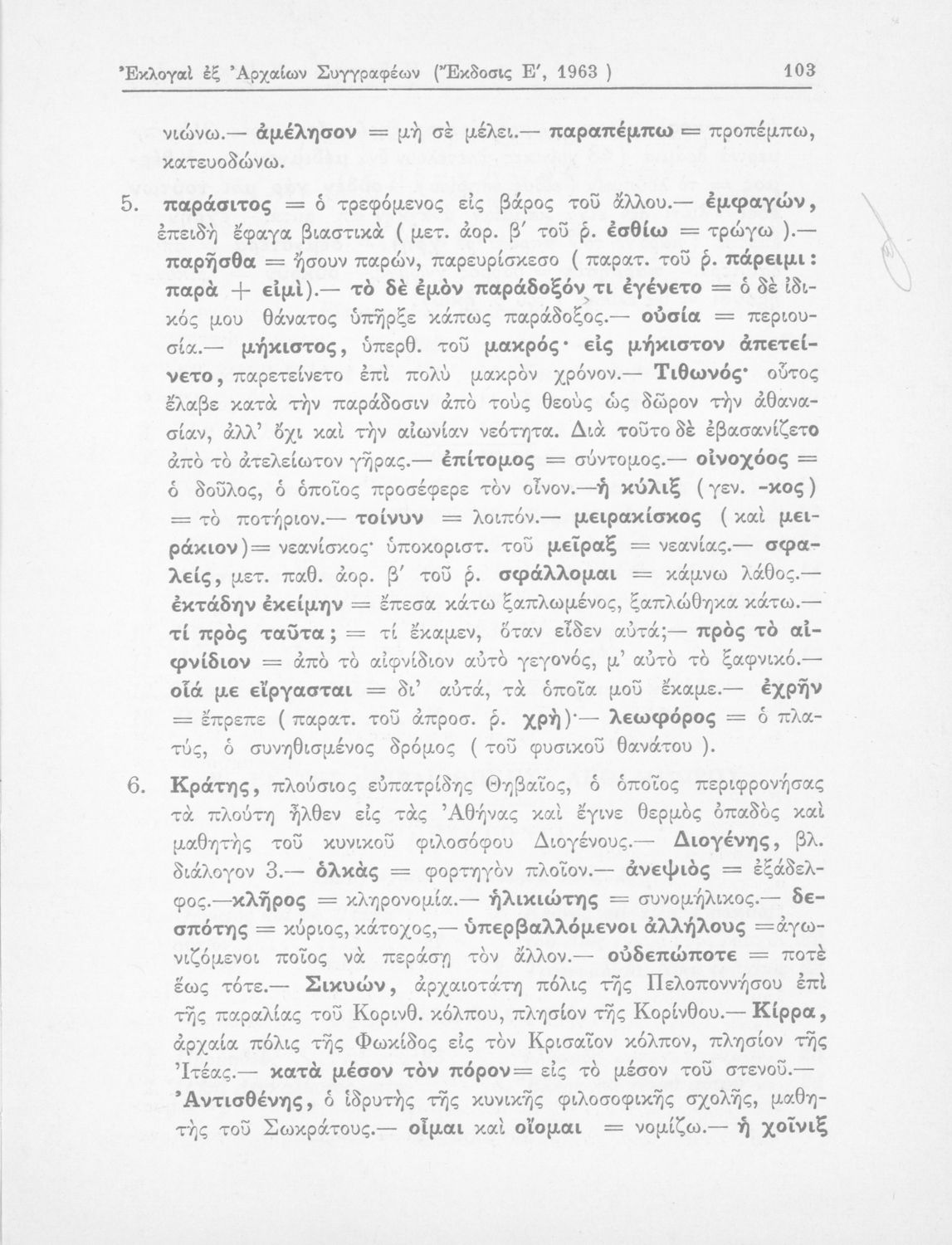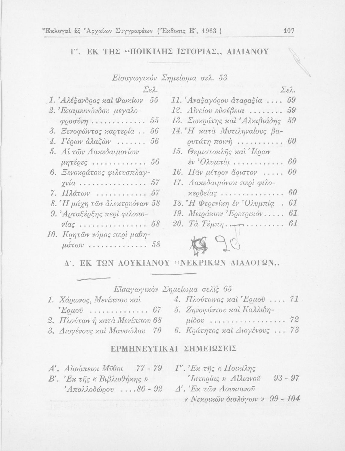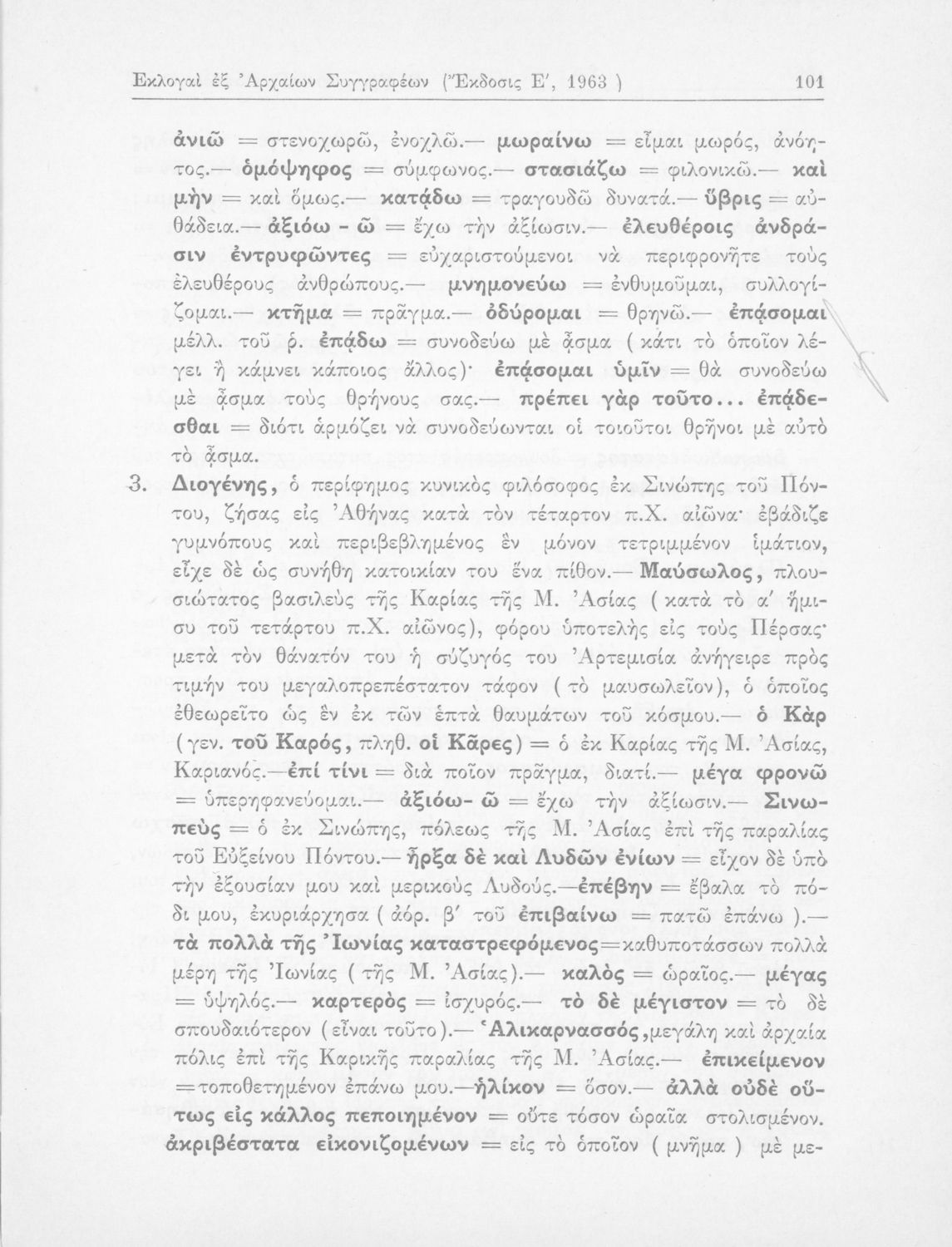 Σχολικό εγχειρίδιο Αρχαίων Ελληνικών Β΄ και Γ΄ Γυμνασίου που περιέχει αποσπάσματα από έργα αρχαίων Ελλήνων συγγραφέων, ερμηνευτικά και πραγματολογικά σχόλια και γραμματικές παρατηρήσεις.