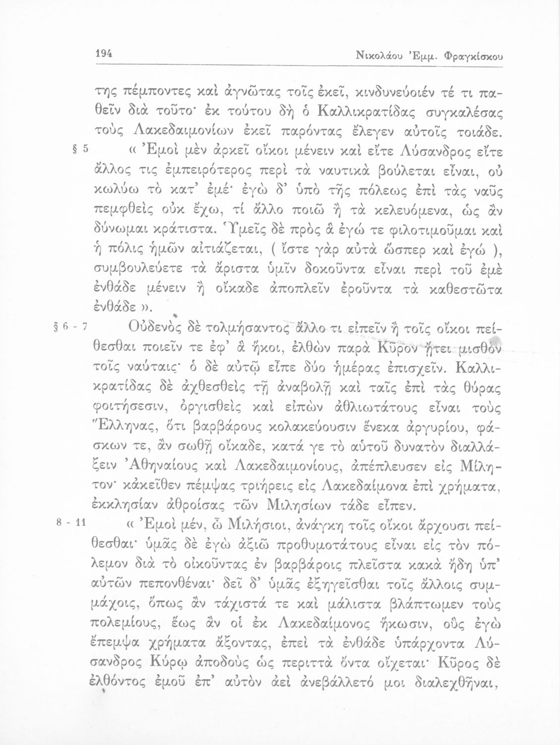 Ξενοφών, Κυριάκος Κοσμάς, Νικόλαος Φραγκίσκος (σχόλια)