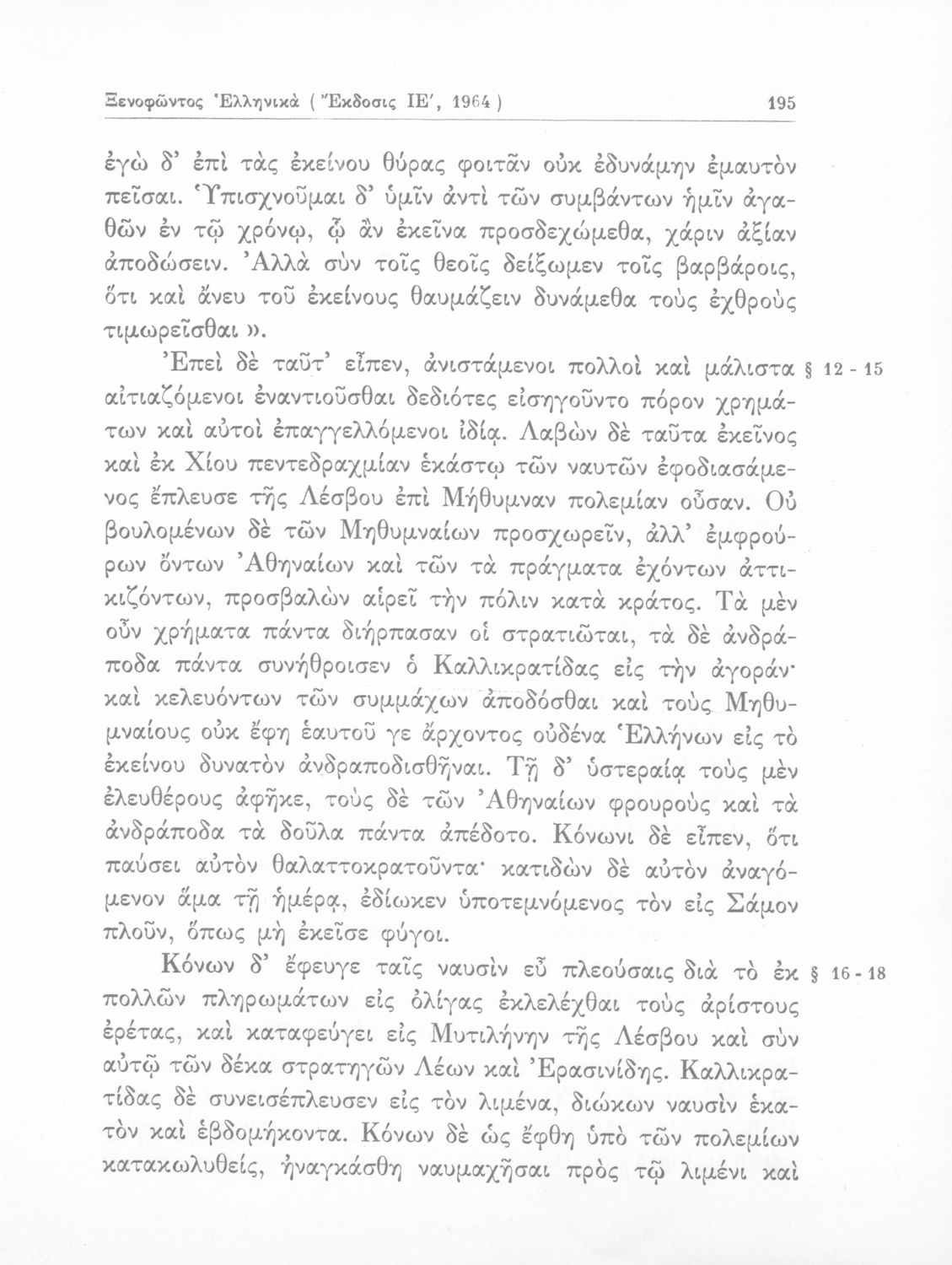 Σχολικό εγχειρίδιο της Β΄ Γυμνασίου για το μάθημα των Αρχαίων Ελληνικών. Περιλαμβάνει αποσπάσματα από τα Ελληνικά του Ξενοφώντα. Περιέχει το αρχαίο κείμενο, λεξιλογικές παρατηρήσεις, ερμηνευτικά, ...
