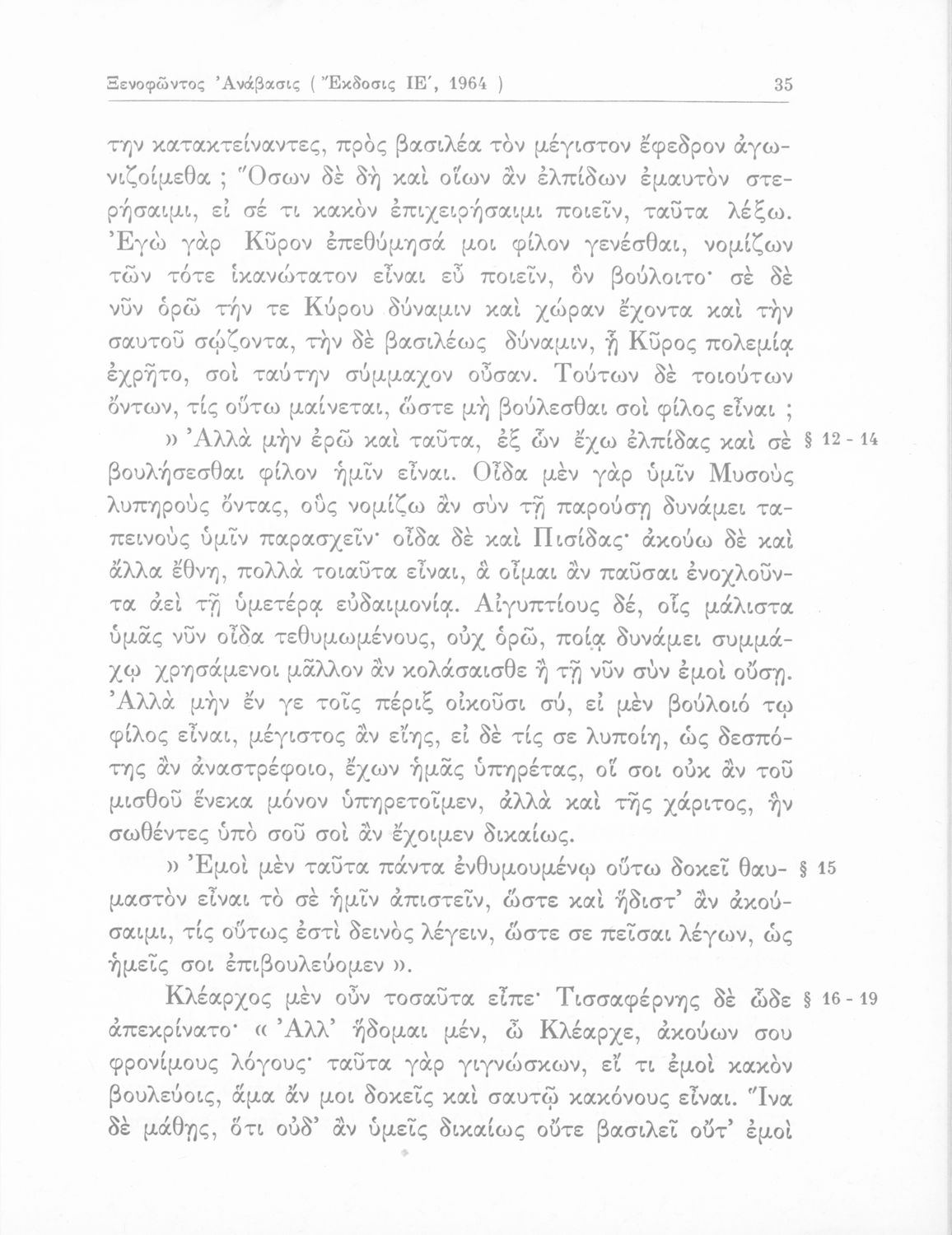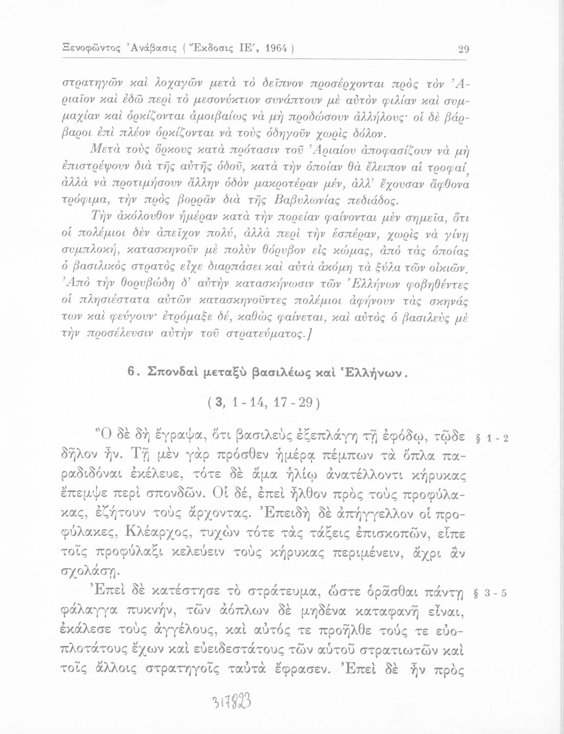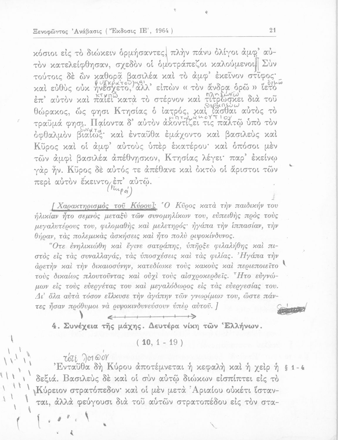 520 ## _aΣχολικό εγχειρίδιο Αρχαίων Ελληνικών για τη Β΄ Γυμνασίου με αποσπάσματα από το έργο του Ξενοφώντα. Το βιβλίο περιέχει ερμηνευτικές σημειώσεις και σχόλια.