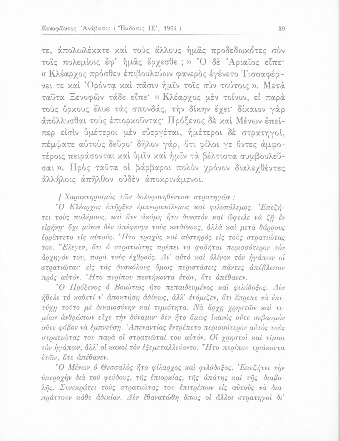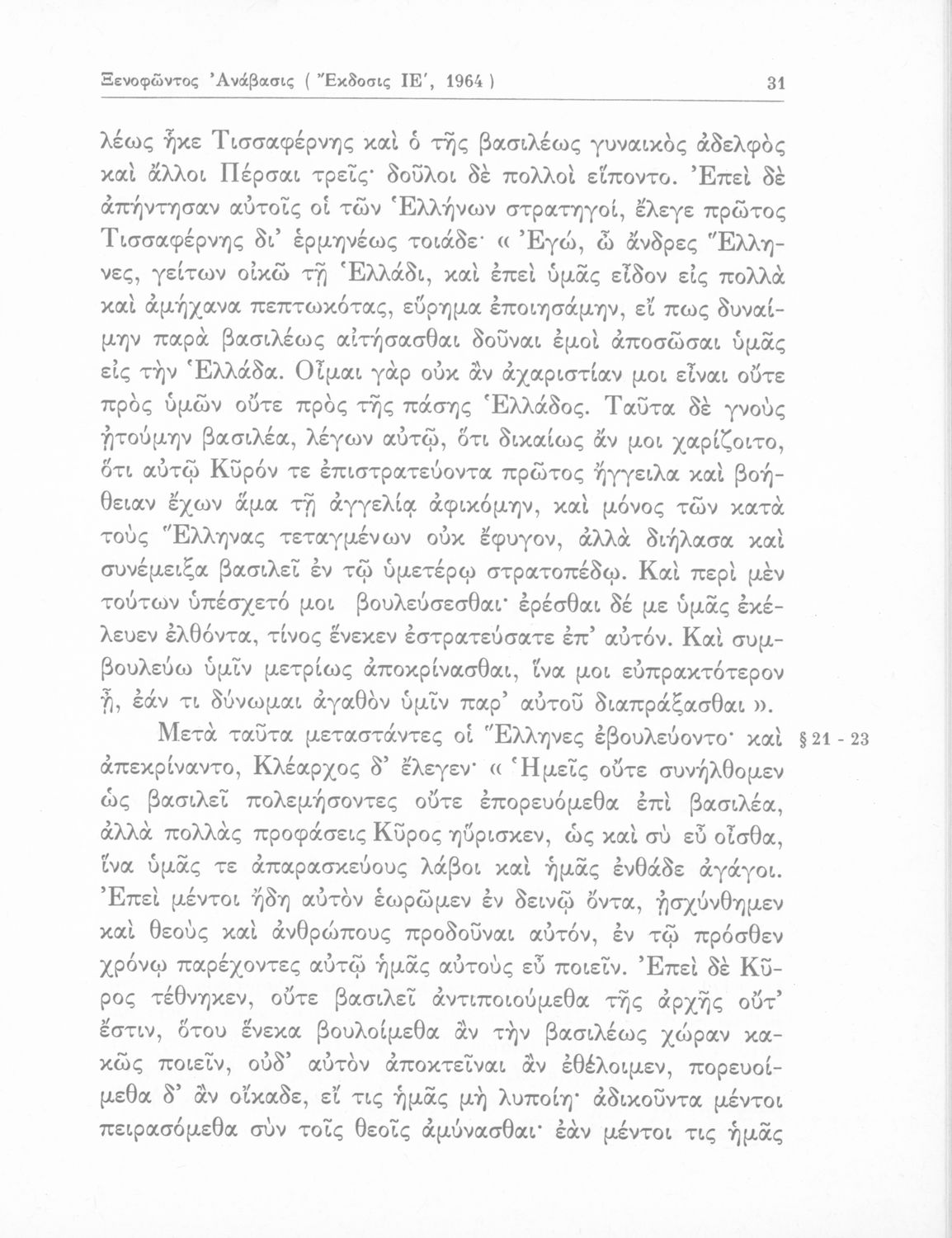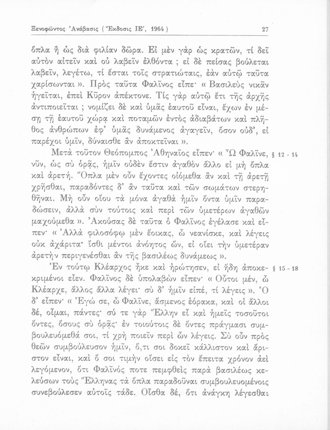 520 ## _aΣχολικό εγχειρίδιο Αρχαίων Ελληνικών για τη Β΄ Γυμνασίου με αποσπάσματα από το έργο του Ξενοφώντα. Το βιβλίο περιέχει ερμηνευτικές σημειώσεις και σχόλια.