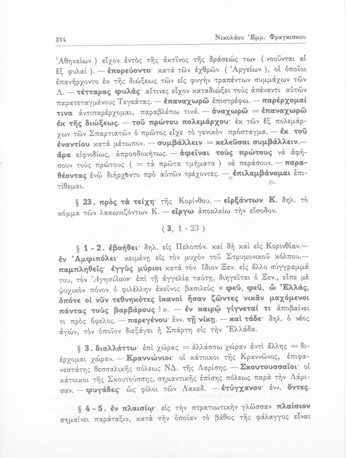 Ξενοφών, Κυριάκος Κοσμάς, Νικόλαος Φραγκίσκος (σχόλια)