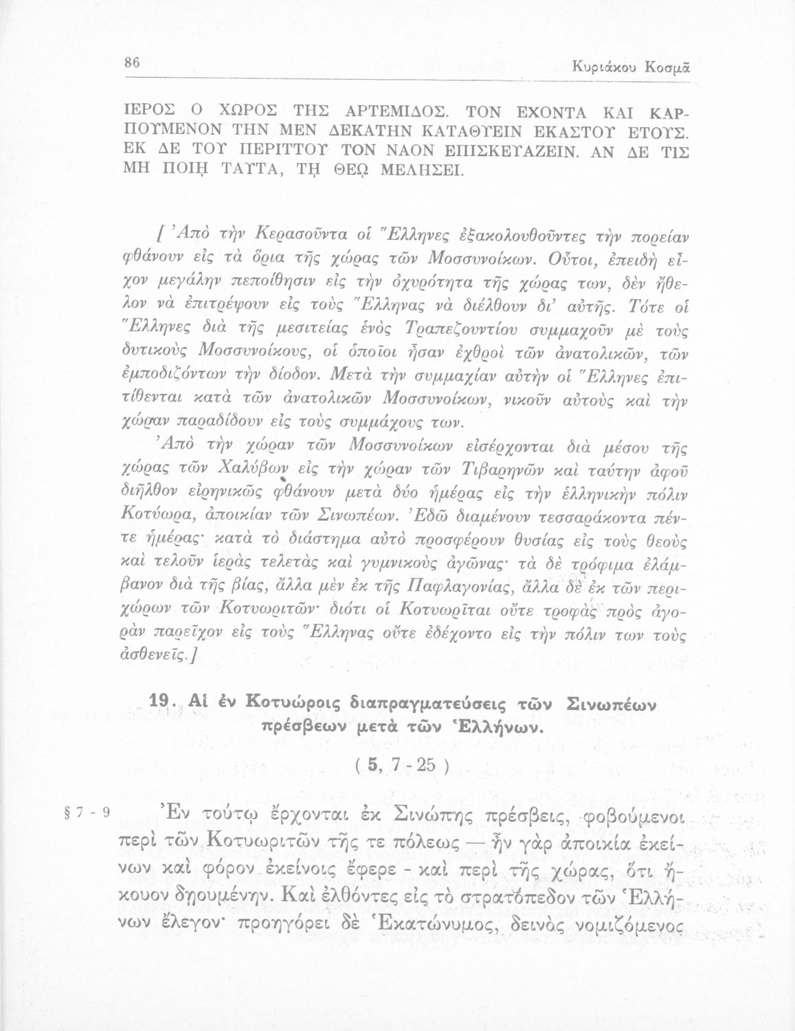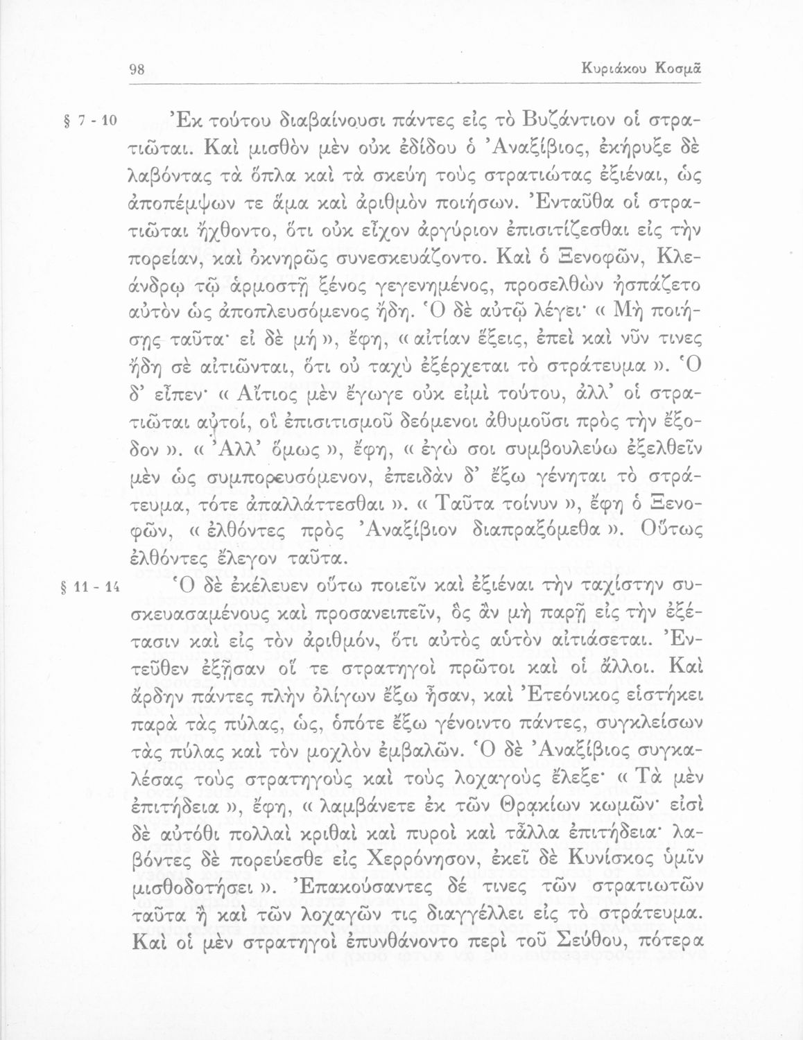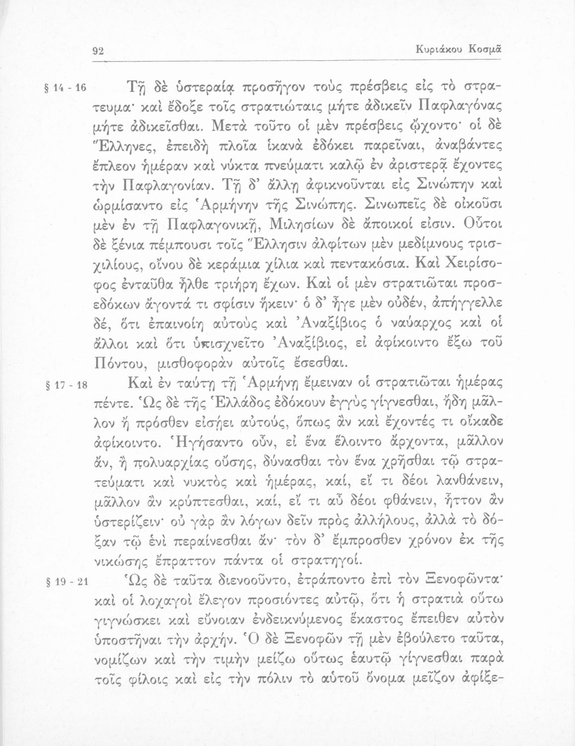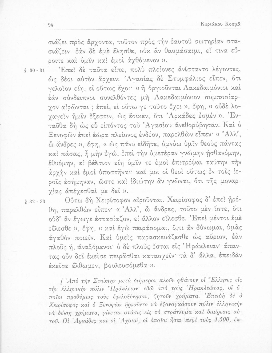 Ξενοφών, Κυριάκος Κοσμάς (σχόλια)