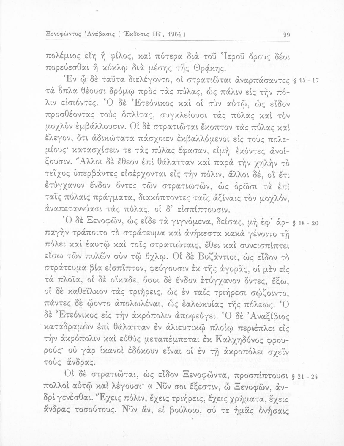 Σχολικό εγχειρίδιο της Γ΄ Γυμνασίου για το μάθημα των Αρχαίων. Περιέχει αποσπάσματα από το έργο του Ξενοφώντα, ερμηνευτικά και πραγματολογικά σχόλια και λεξιλογικές παρατηρήσεις.