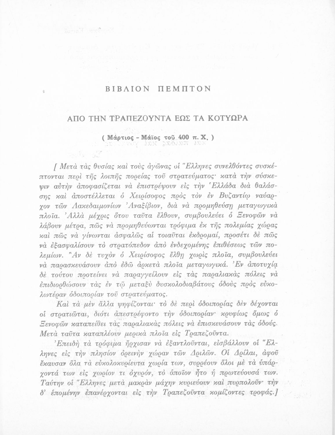 Σχολικό Εγχειρίδιο Αρχαίων Ελληνικών της Β' Γυμνασίου. Το βιβλίο αναφέρεται στο σύγγραμμα του Ξενοφώντα για την εκστρατεία του Κύρου κατά του Αρταξέρξη και κυρίως την κάθοδο ( επιστροφή) των Μυρίων. Στο ...
