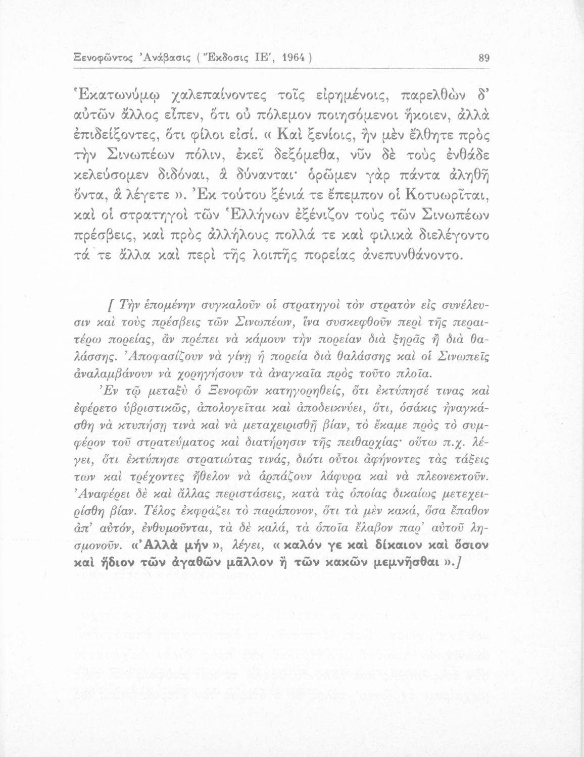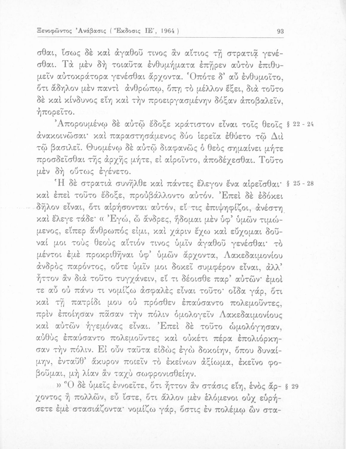 Ξενοφών, Νικόλαος Ι. Ζαφειρίου (σχόλια)