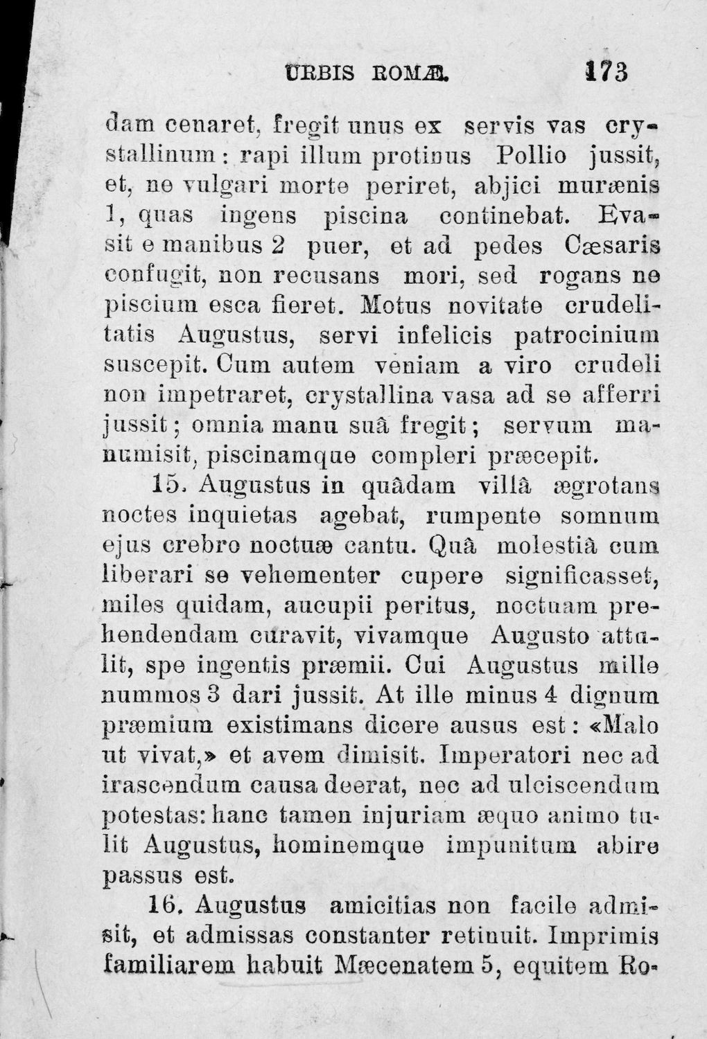 Σχολικό εγχειρίδιο Λατινικών που περιέχει 64 αποσπάσματα από το βιβλίο του Lhomond και παρουσιάζει βίους επιφανών Ρωμαίων από το 753 π.Χ μέχρι το 14 μ.Χ.