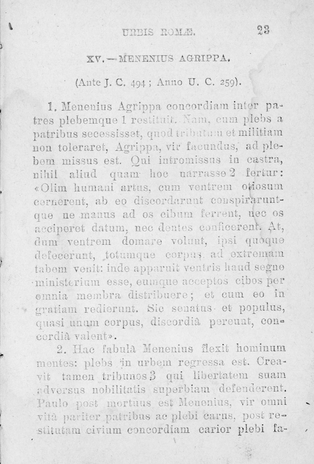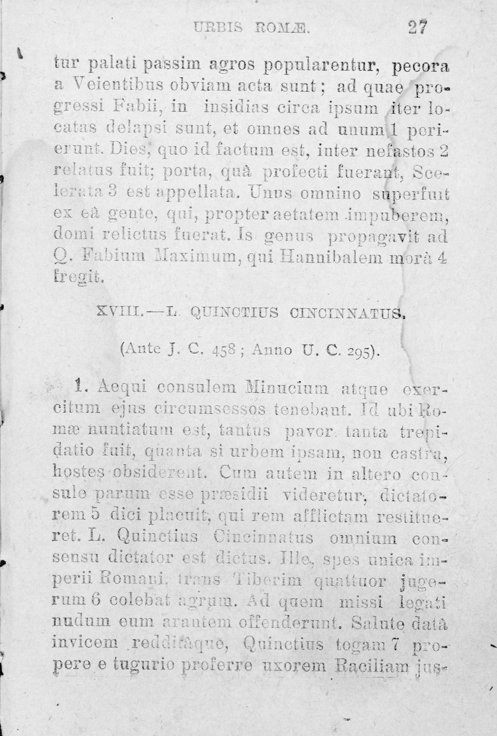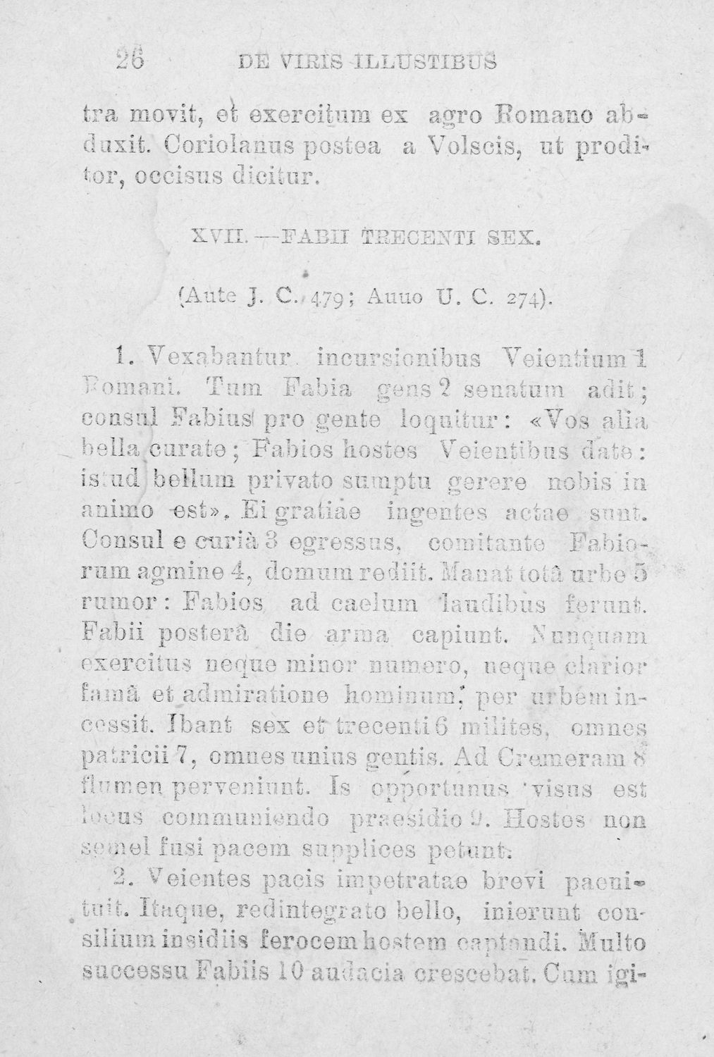 Σχολικό εγχειρίδιο Λατινικών που περιέχει 64 αποσπάσματα από το βιβλίο του Lhomond και παρουσιάζει βίους επιφανών Ρωμαίων από το 753 π.Χ μέχρι το 14 μ.Χ.