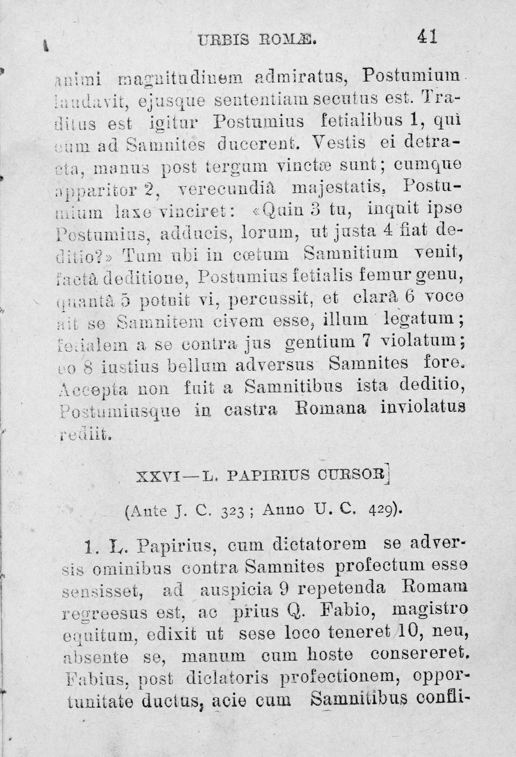Παρουσίαση περιεχομένου: Σχολικό εγχειρίδιο Λατινικών που περιέχει 64 αποσπάσματα από το βιβλίο του Lhomond και παρουσιάζει βίους επιφανών Ρωμαίων από το 753 π.Χ μέχρι το 14 μ.Χ.