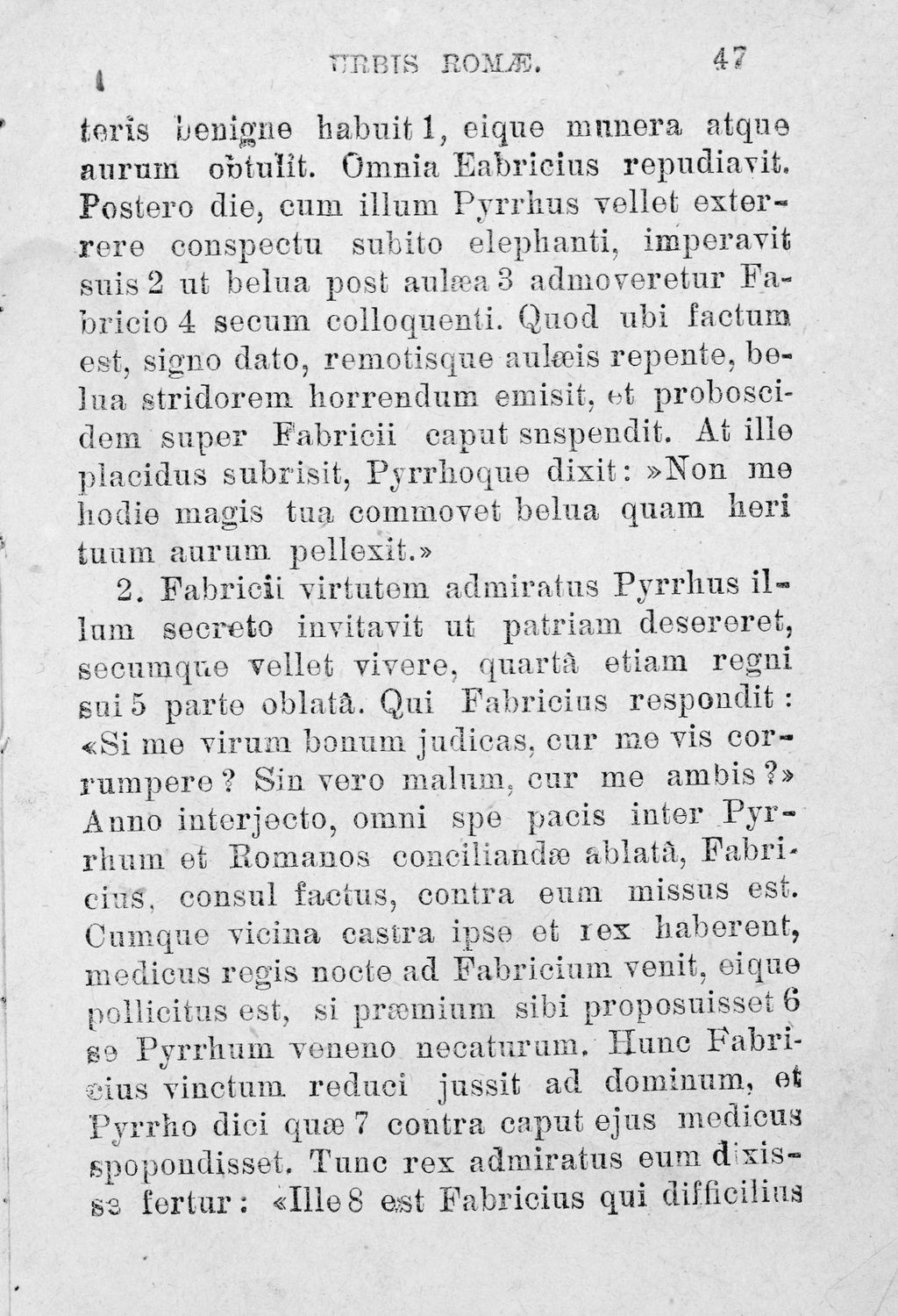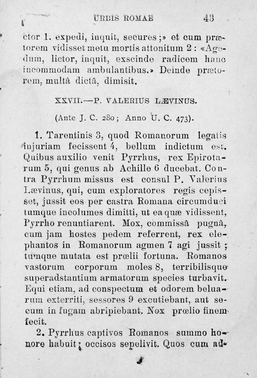 Σχολικό εγχειρίδιο Λατινικών που περιέχει 64 αποσπάσματα από το βιβλίο του Lhomond και παρουσιάζει βίους επιφανών Ρωμαίων από το 753 π.Χ μέχρι το 14 μ.Χ.