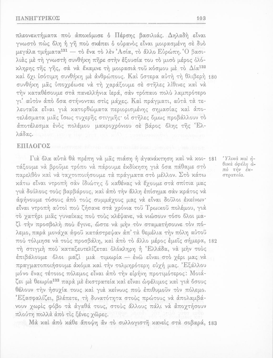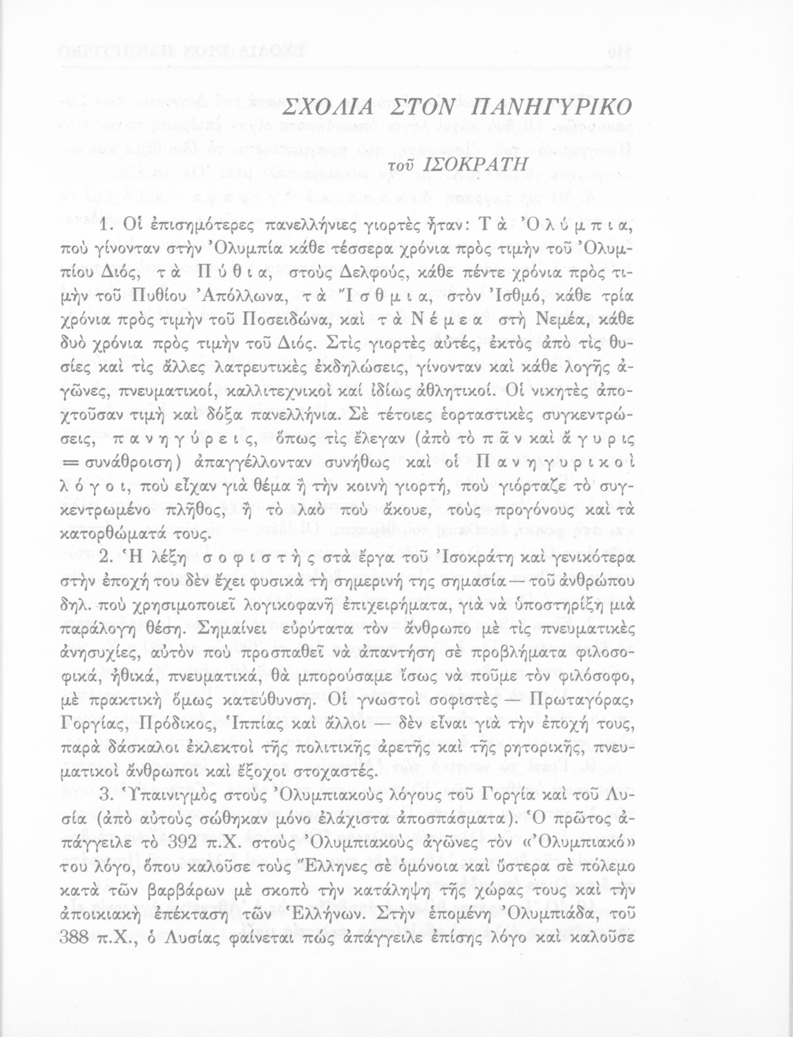 Σχολικό εγχειρίδιο Αρχαίων Ελληνικών Β΄ Γυμνασίου που περιλαμβάνει εισαγωγή στη ζωή και το έργο του Ισοκράτη, τον Πανηγυρικό, μετάφραση και ερμηνευτικές σημειώσεις.