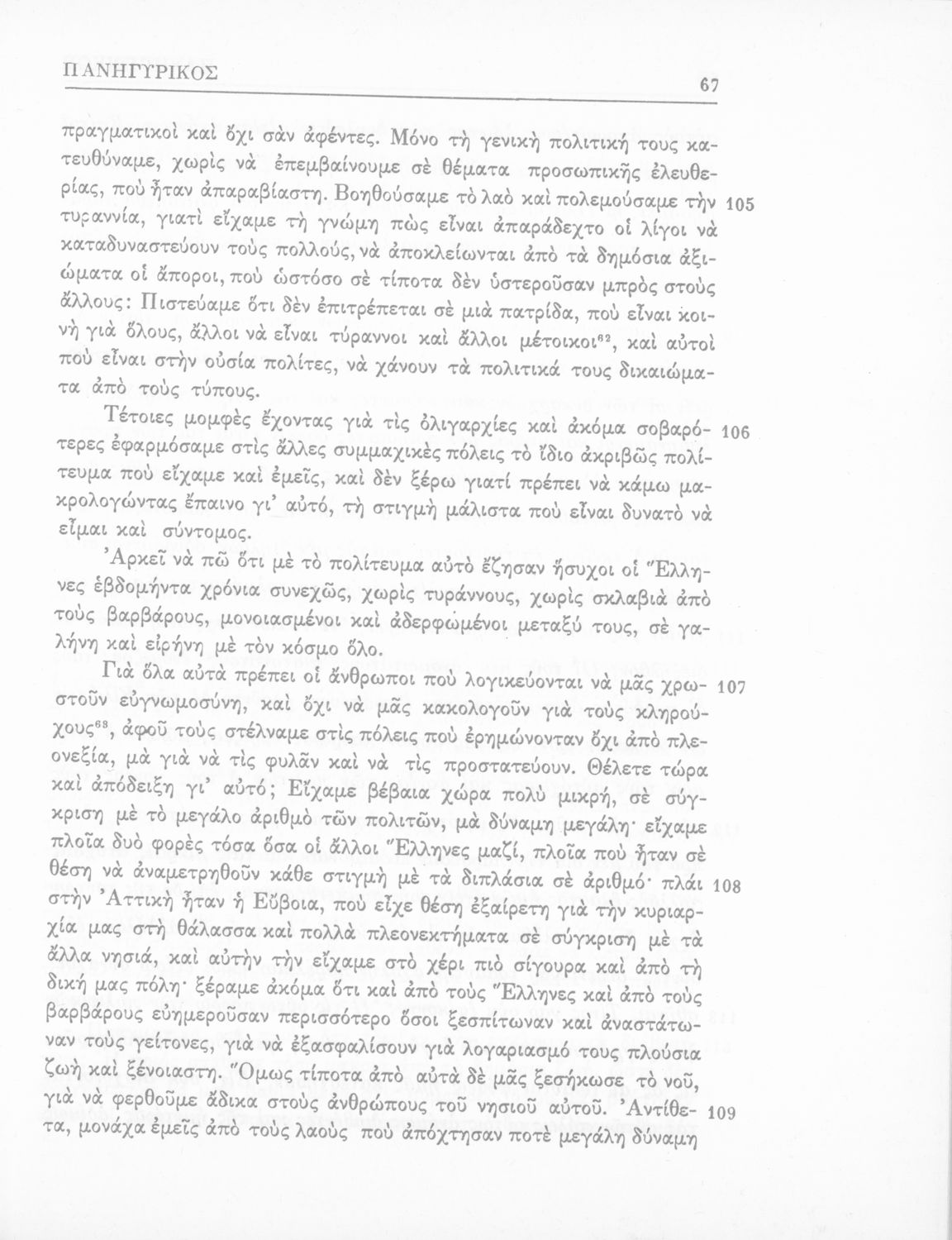 Σχολικό εγχειρίδιο Αρχαίων Ελληνικών Β΄ Γυμνασίου που περιλαμβάνει εισαγωγή στη ζωή και το έργο του Ισοκράτη, τον Πανηγυρικό, μετάφραση και ερμηνευτικές σημειώσεις.