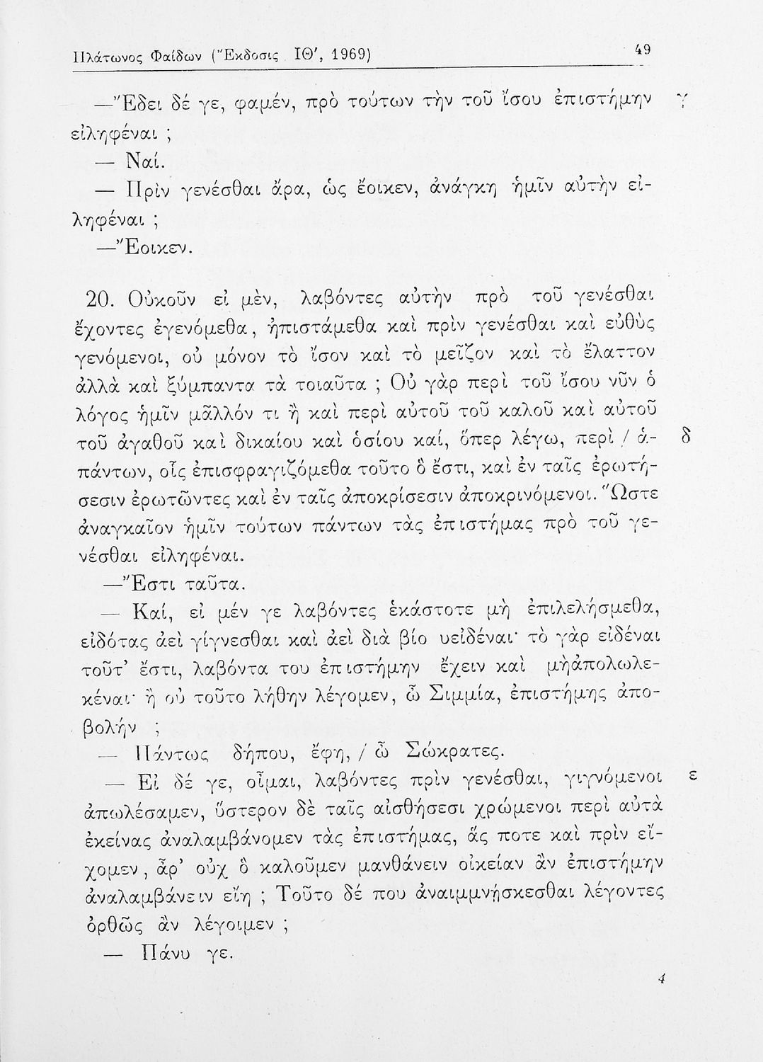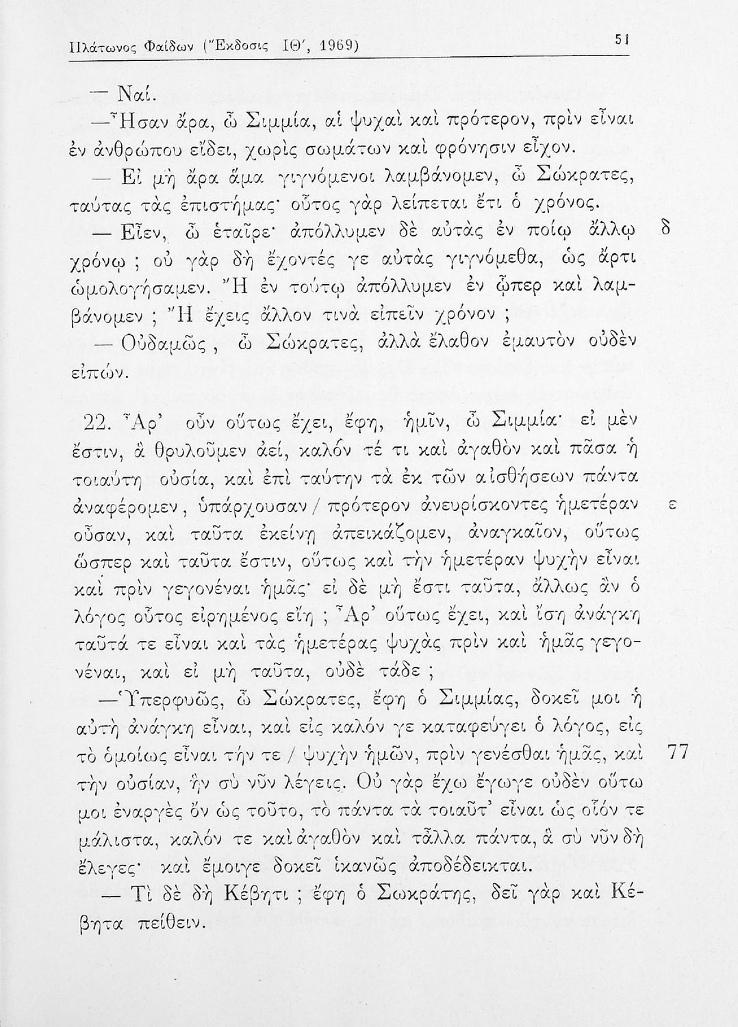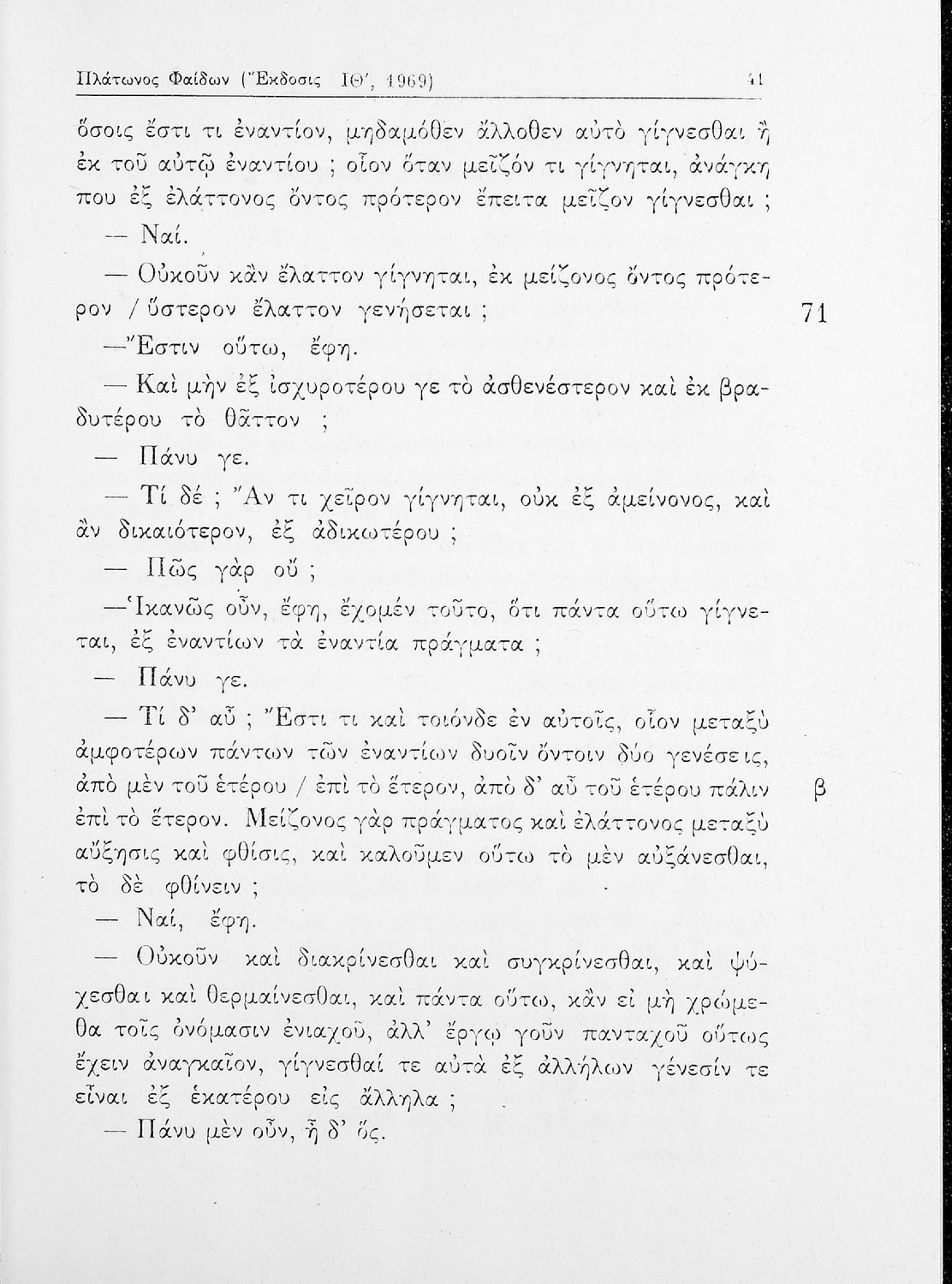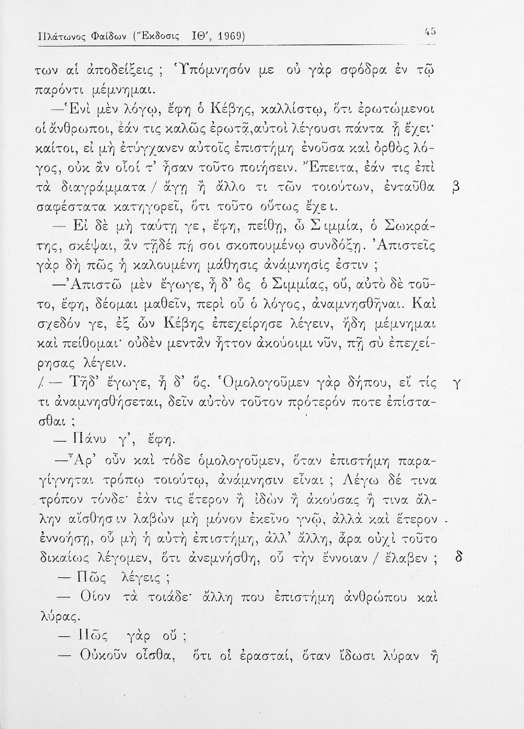 Σχολικό εγχειρίδιο της ΣΤ΄ Γυμνασίου για το μάθημα των Αρχαίων Ελληνικών. Περιλαμβάνει το έργο του Πλάτωνα, Φαίδων. Διαθέτει εισαγωγή, και ερμηνευτικές παρατηρήσεις του συγγραφέα. Φέρει το σύμβολο της δικτατορίας.