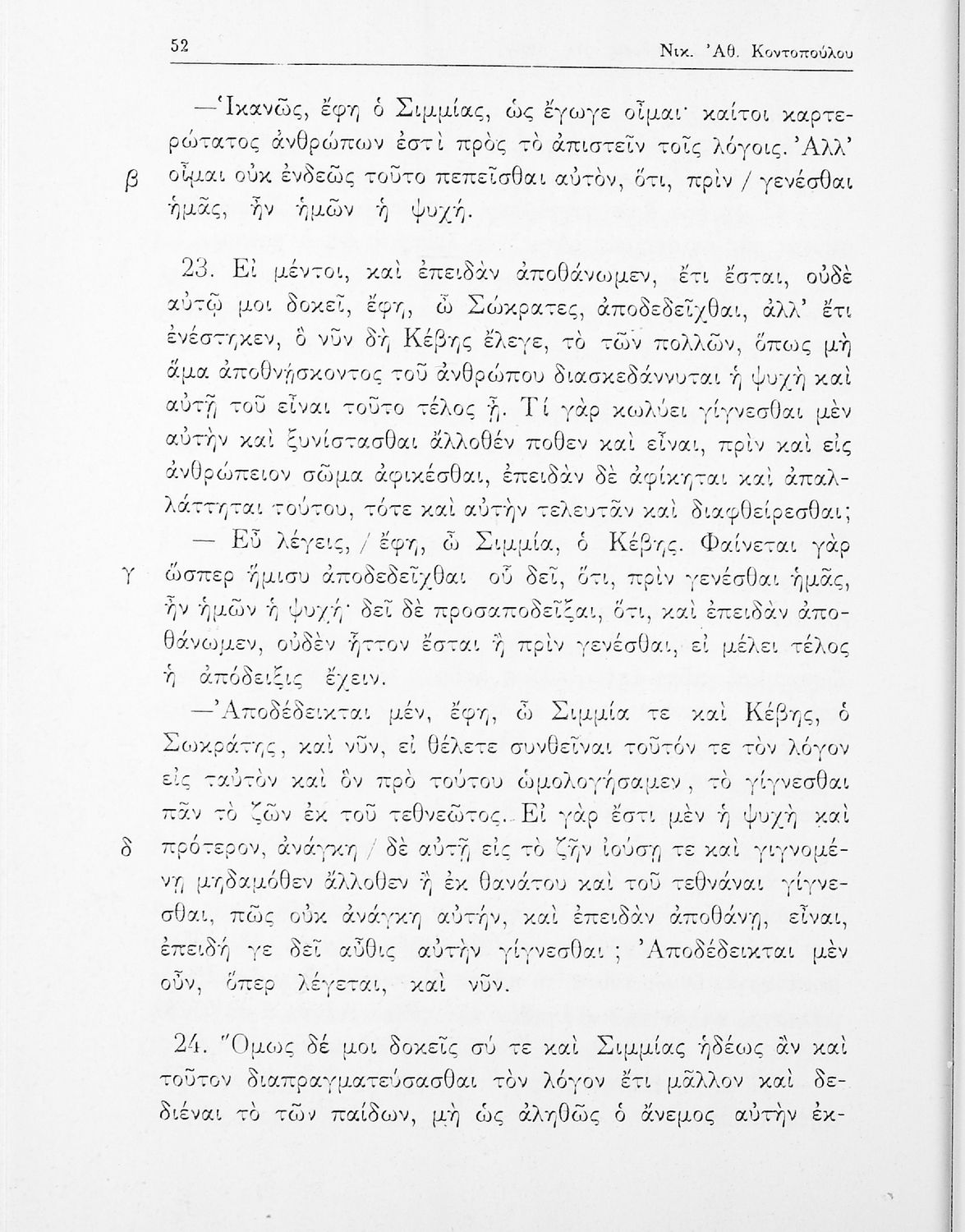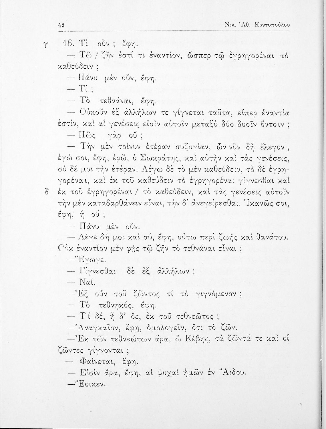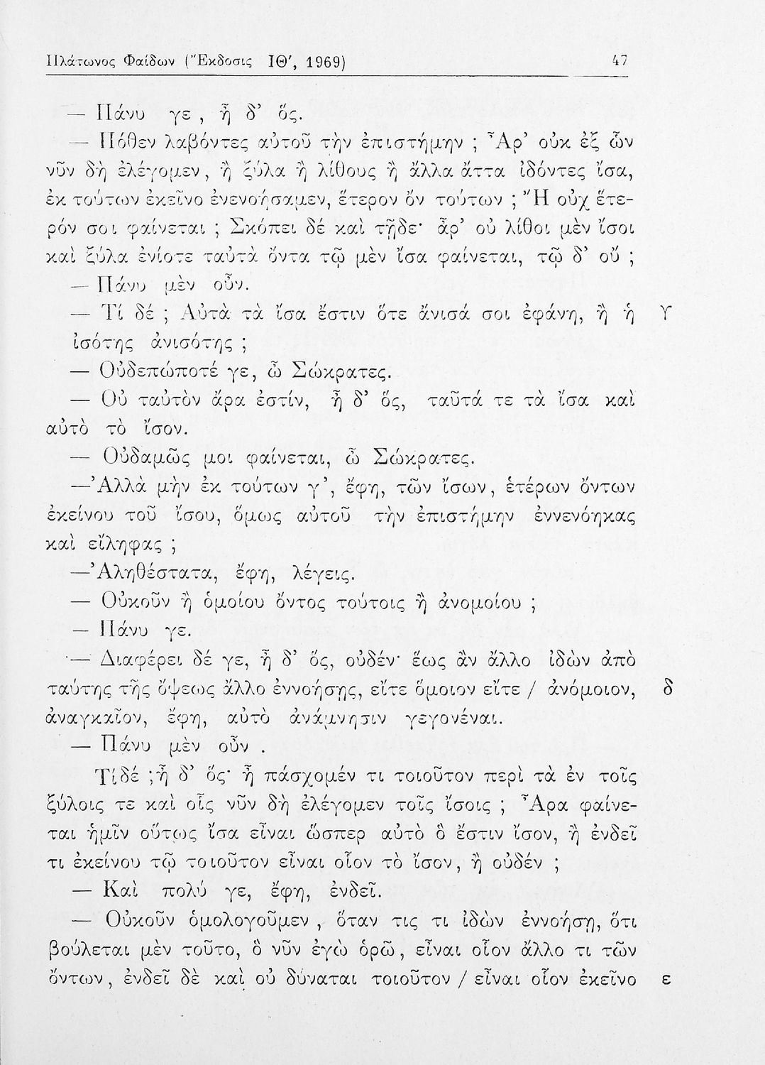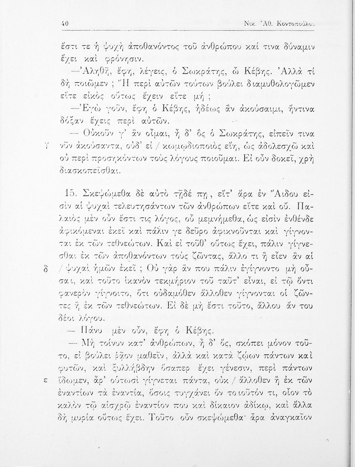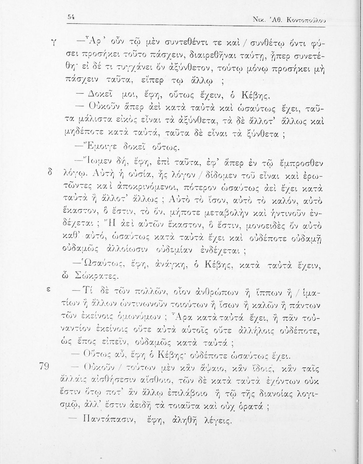 Σχολικό εγχειρίδιο της ΣΤ΄ Γυμνασίου για το μάθημα των Αρχαίων Ελληνικών. Περιλαμβάνει το έργο του Πλάτωνα, Φαίδων. Διαθέτει εισαγωγή, και ερμηνευτικές παρατηρήσεις του συγγραφέα. Φέρει το σύμβολο της δικτατορίας.