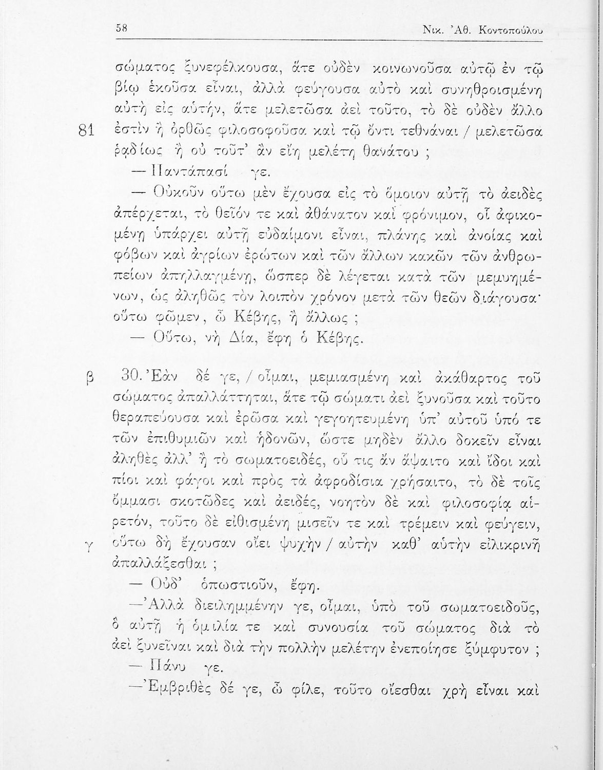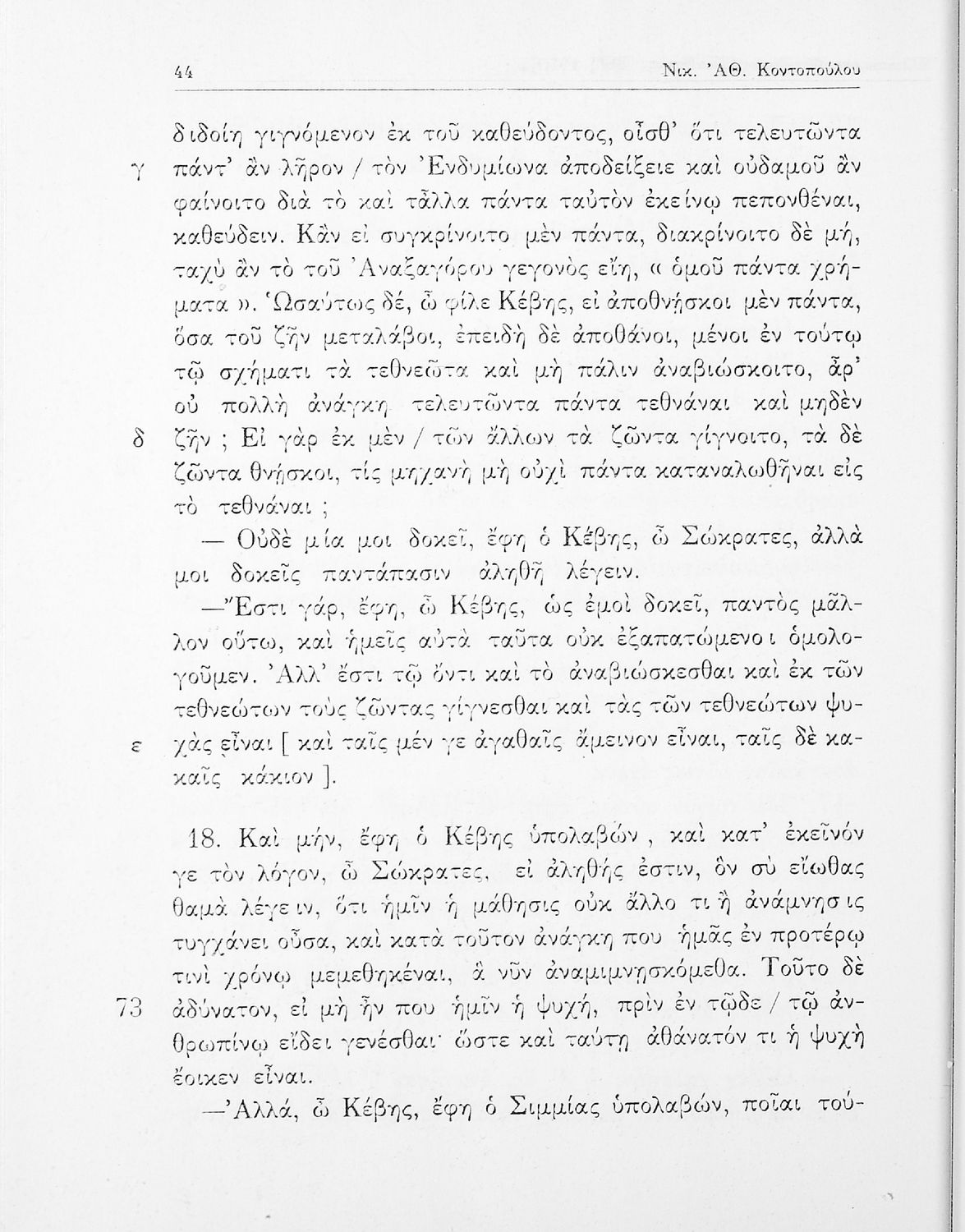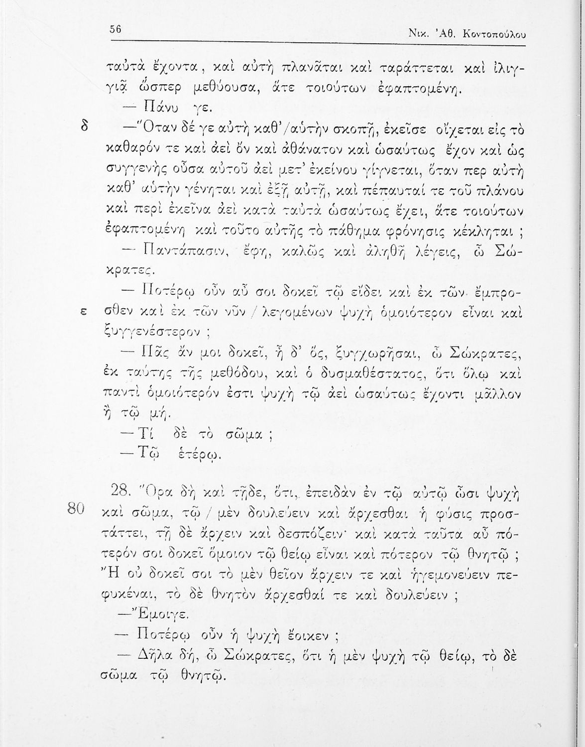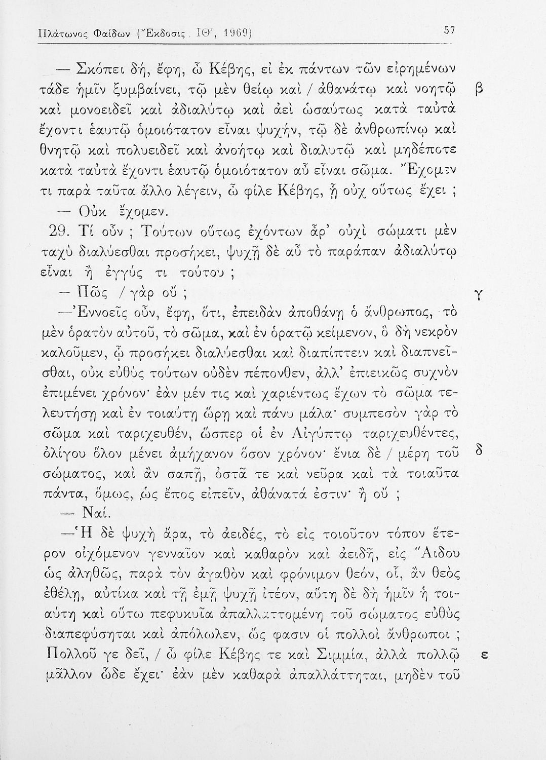 Σχολικό εγχειρίδιο της ΣΤ΄ Γυμνασίου για το μάθημα των Αρχαίων Ελληνικών. Περιλαμβάνει το έργο του Πλάτωνα, Φαίδων. Διαθέτει εισαγωγή, και ερμηνευτικές παρατηρήσεις του συγγραφέα. Φέρει το σύμβολο της δικτατορίας.