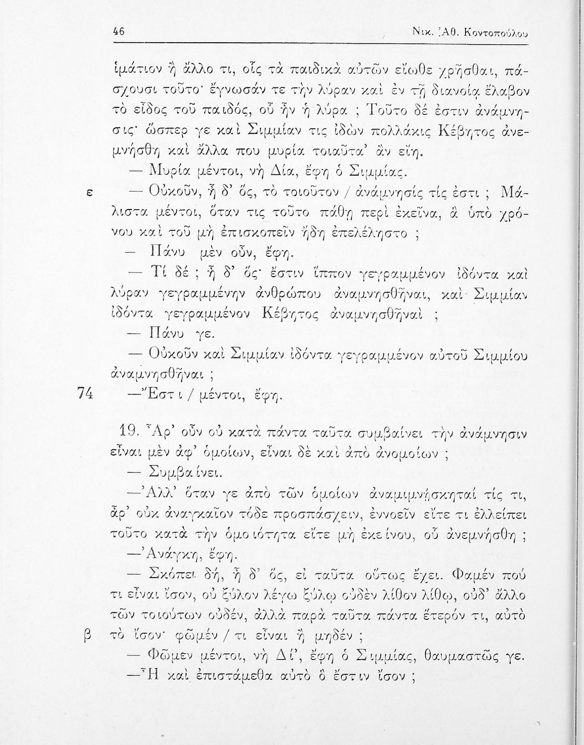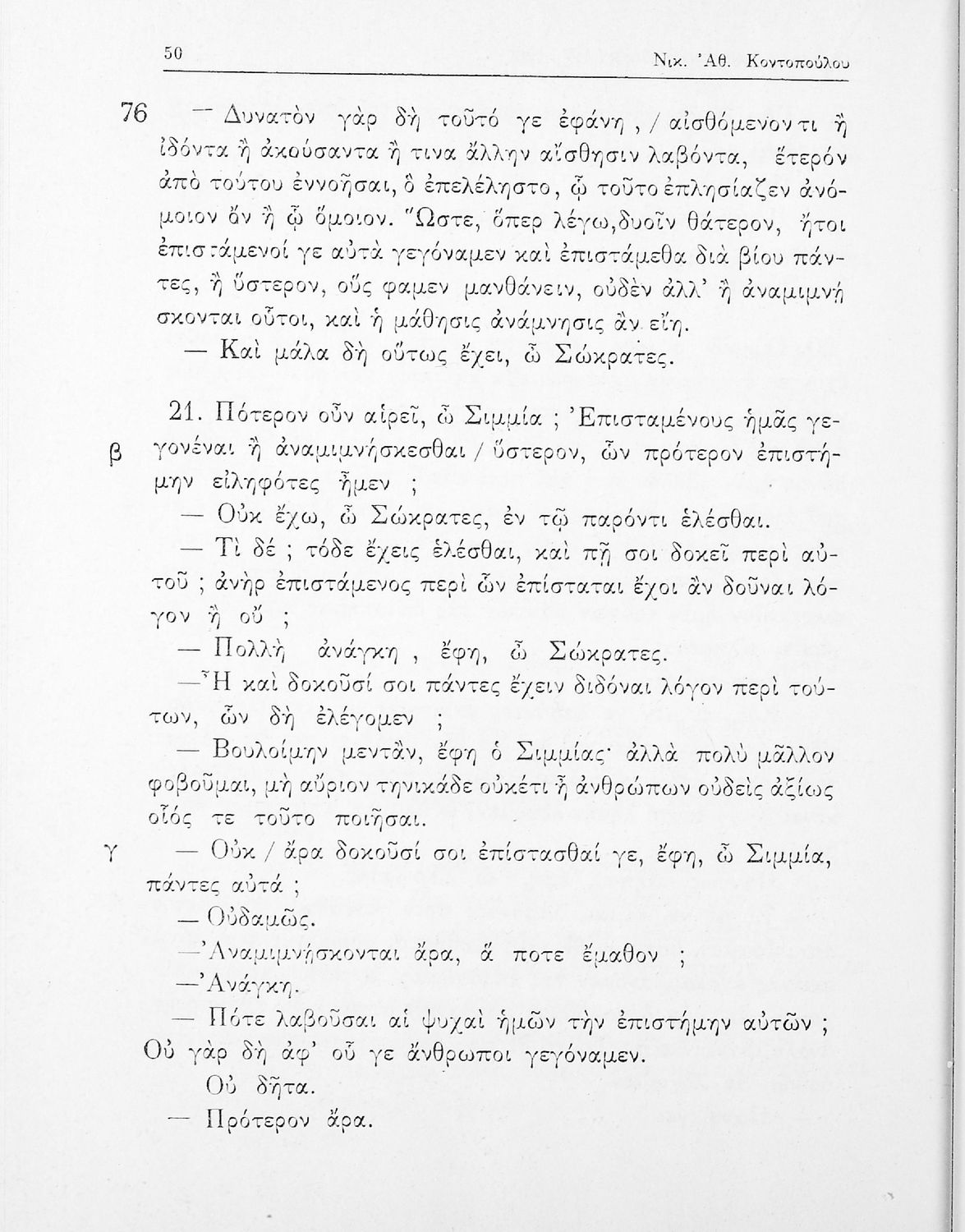 LDR 01265 2200217 4500 035 ## _a01-17867 040 ## _aΙνστιτούτο Εκπαιδευτικής Πολιτικής 041 ## _ael 100 ## _aΠλάτων _aΝ. Κοντόπουλος _aΝ. Ζαφειρίου _aΝ. Ελεόπουλος _aΕ. Ελεοπούλου (σχόλια) 110 ## _a17867 245 0# _aΠλάτωνος Φαίδων ΣΤ΄ Γυμνασίου 250 ## _a19η Έκδοση 260 ## _aΑθήνα _bΟργανισμός Εκδόσεως Διδακτικών Βιβλίων _c1969 300 ## _a109 520 ## _aΣχολικό εγχειρίδιο της ΣΤ΄ Γυμνασίου για το μάθημα των Αρχαίων Ελληνικών. Περιλαμβάνει το έργο του Πλάτωνα, Φαίδων. Διαθέτει εισαγωγή, και ερμηνευτικές παρατηρήσεις του συγγραφέα. Φέρει το σύμβολο της δικτατορίας. 521 ## _aΣΤ' Γυμνασίου 522 ## _aΕλλάδα 546 ## _aΔημοτική 563 ## _aΣκληρό Εξώφυλλο 583 ## _a1822/22-5-1969, 1899/4-6-1969 _c1969 650 #4 _aΑρχαία _aΛόγος _aΠλάτωνας _aΣωκράτης _aΦαίδων