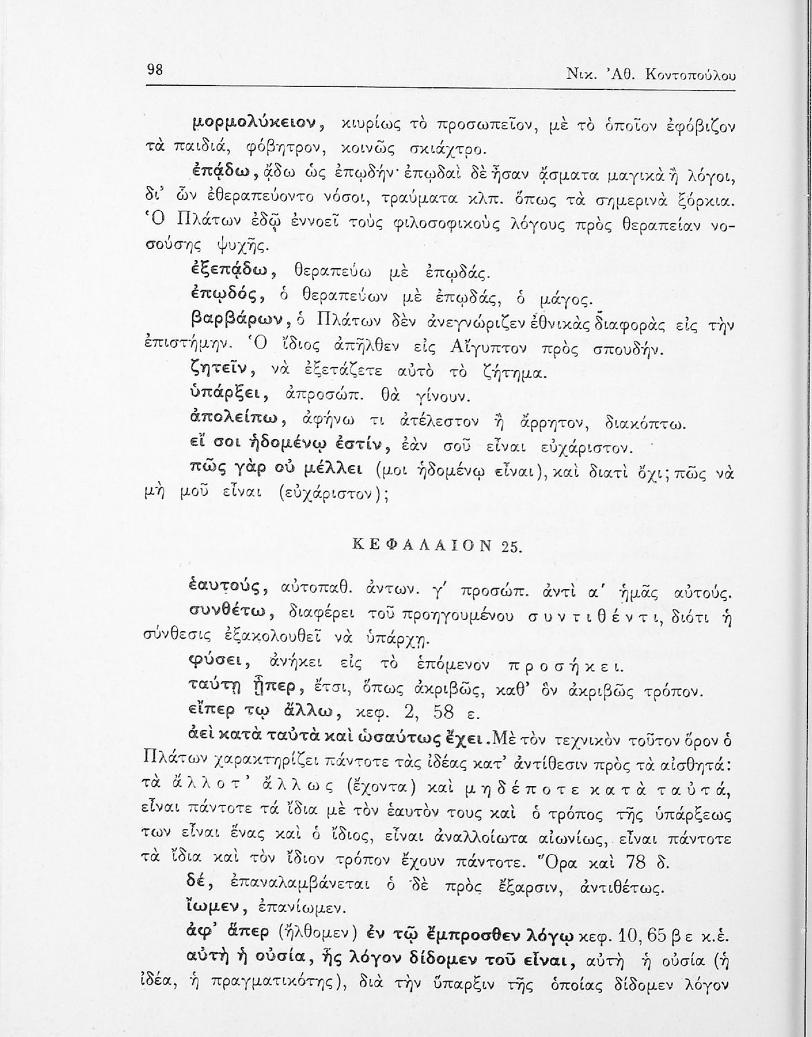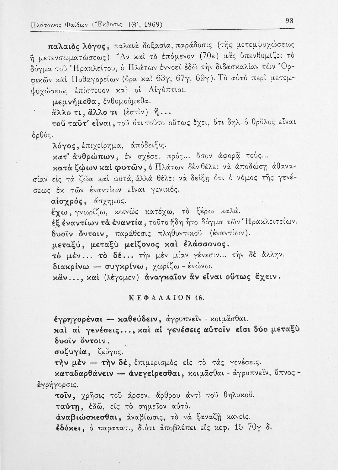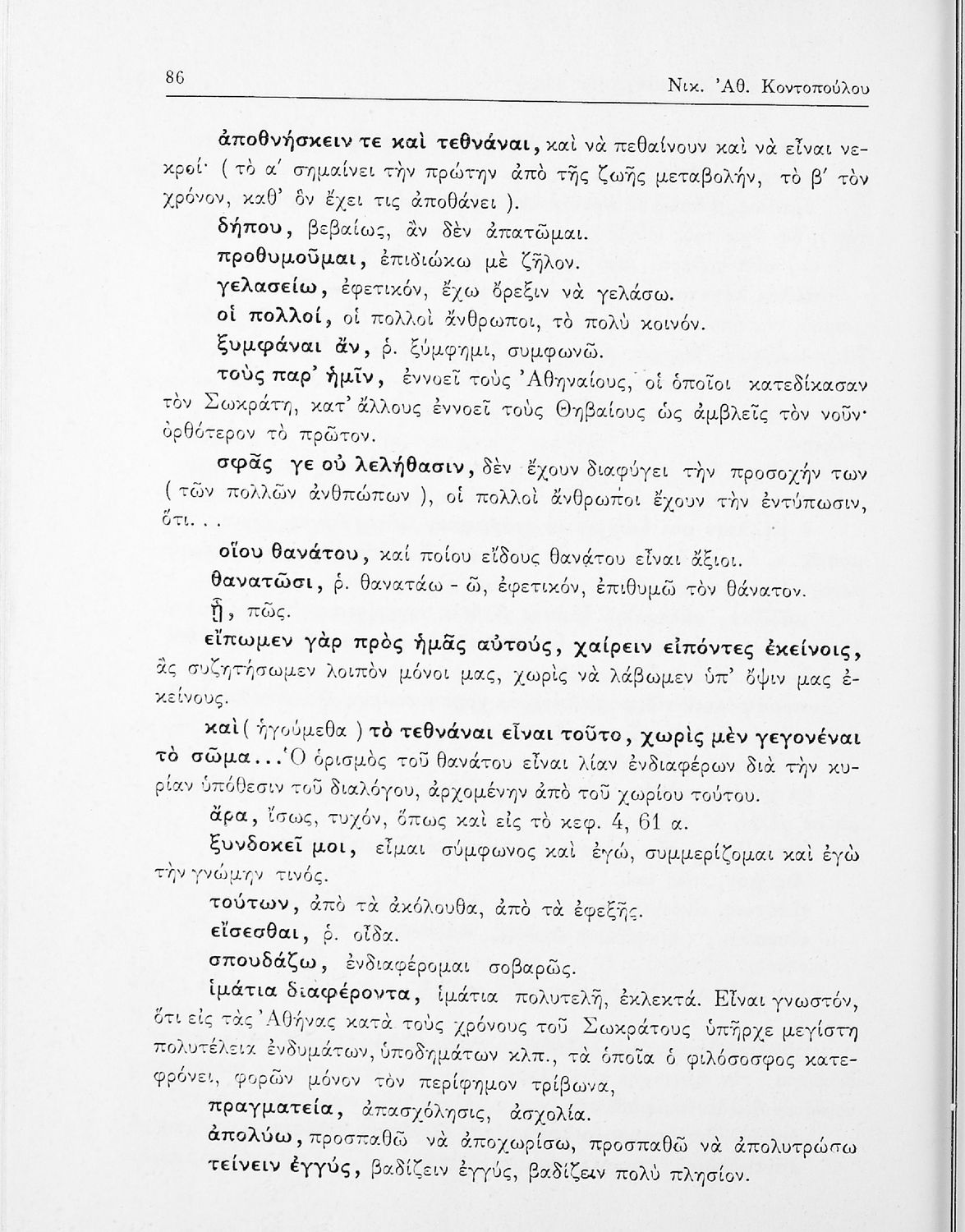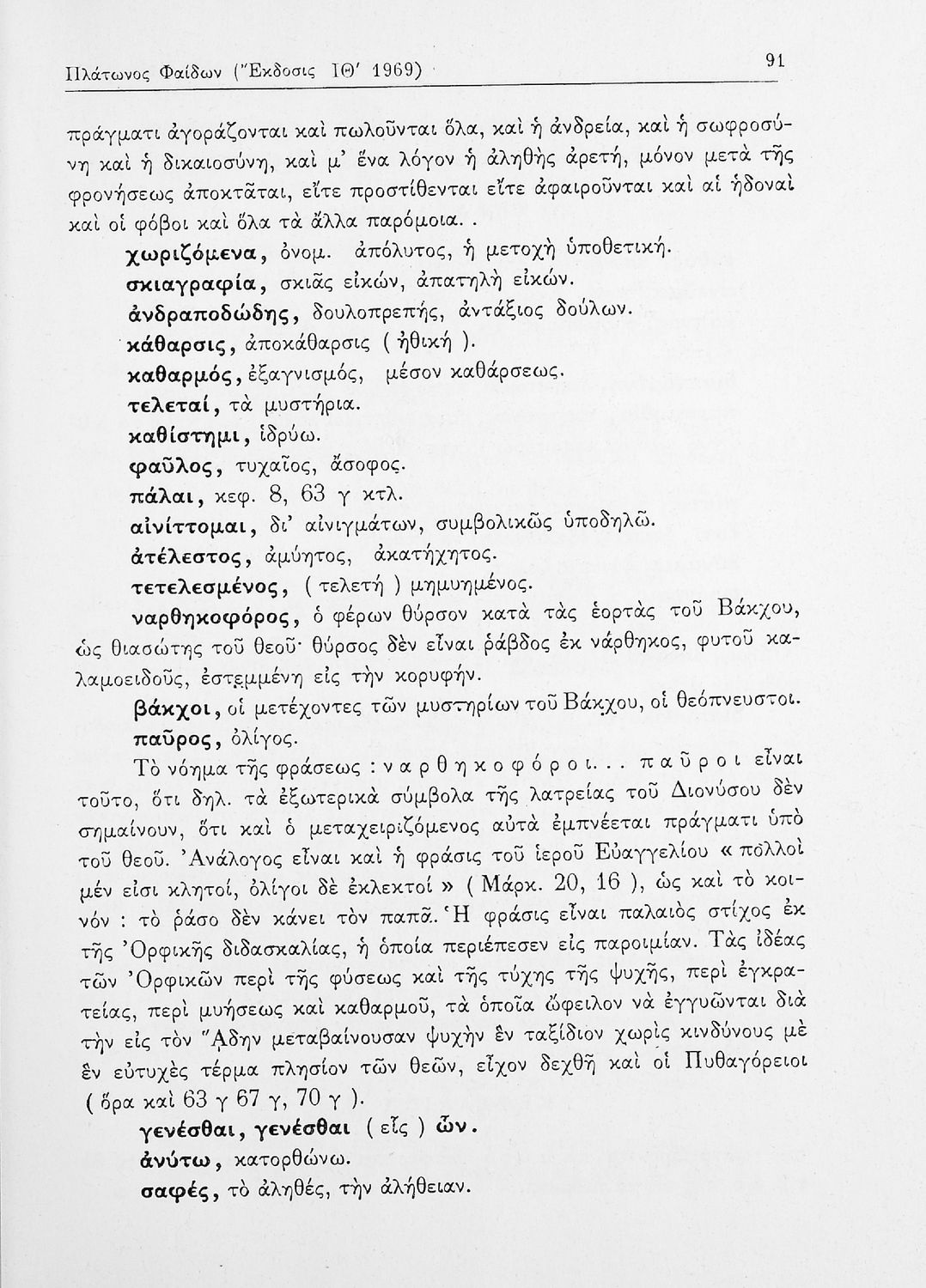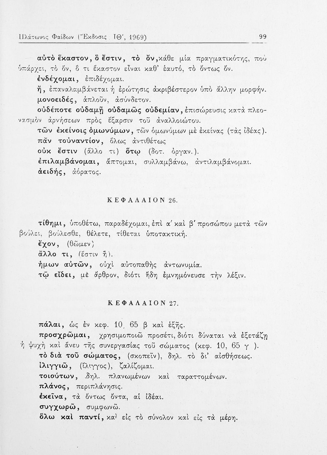 Σχολικό εγχειρίδιο της ΣΤ΄ Γυμνασίου για το μάθημα των Αρχαίων Ελληνικών. Περιλαμβάνει το έργο του Πλάτωνα, Φαίδων. Διαθέτει εισαγωγή, και ερμηνευτικές παρατηρήσεις του συγγραφέα. Φέρει το σύμβολο της δικτατορίας.