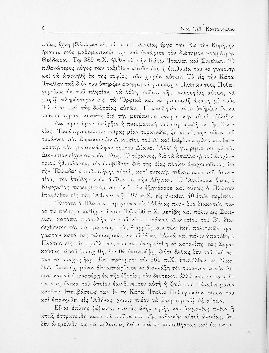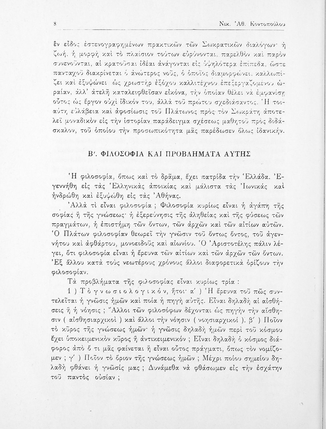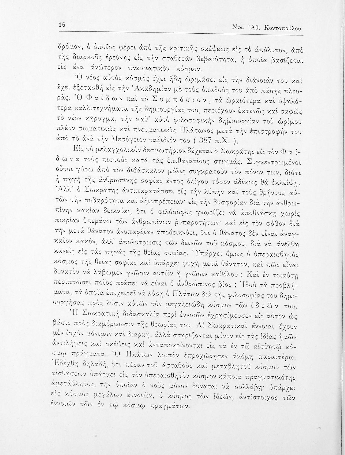 Πλάτων, Νικόλαος Αθ. Κοντόπουλος (σχόλια)