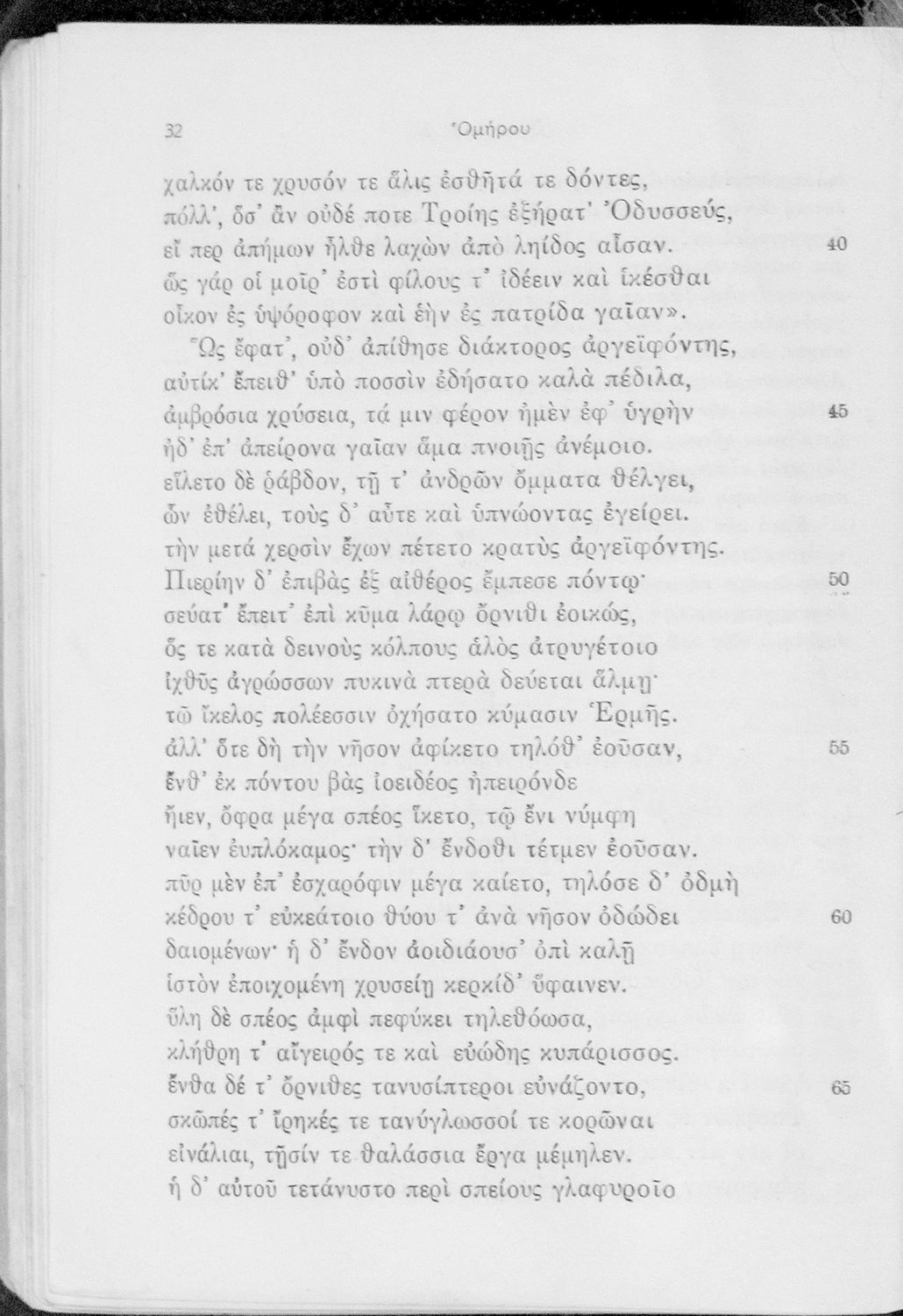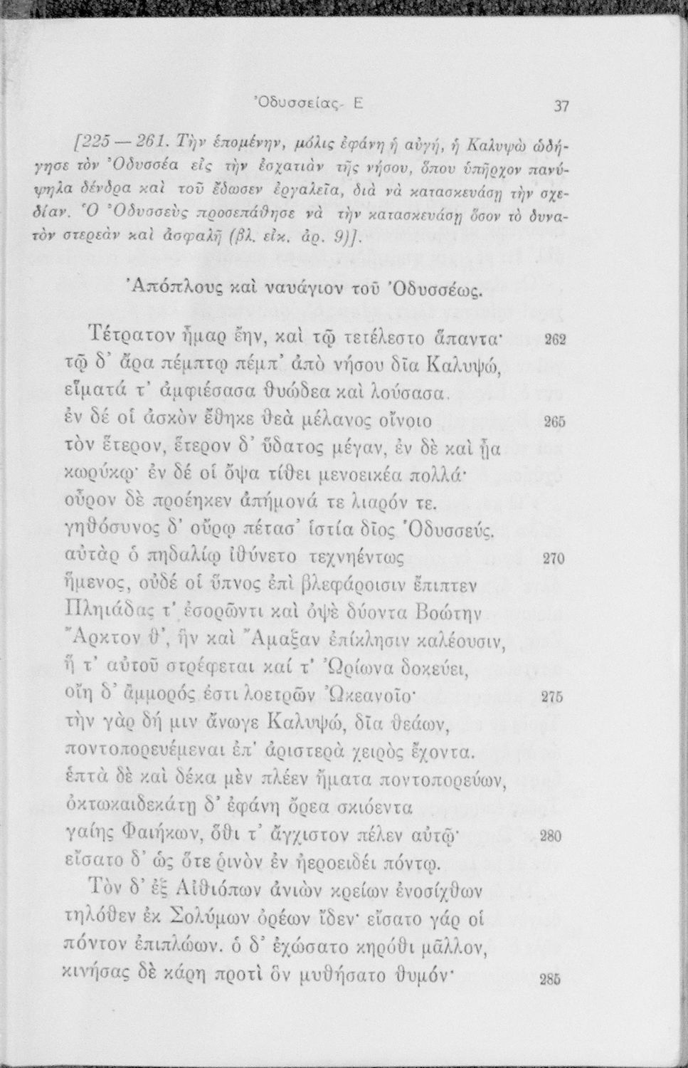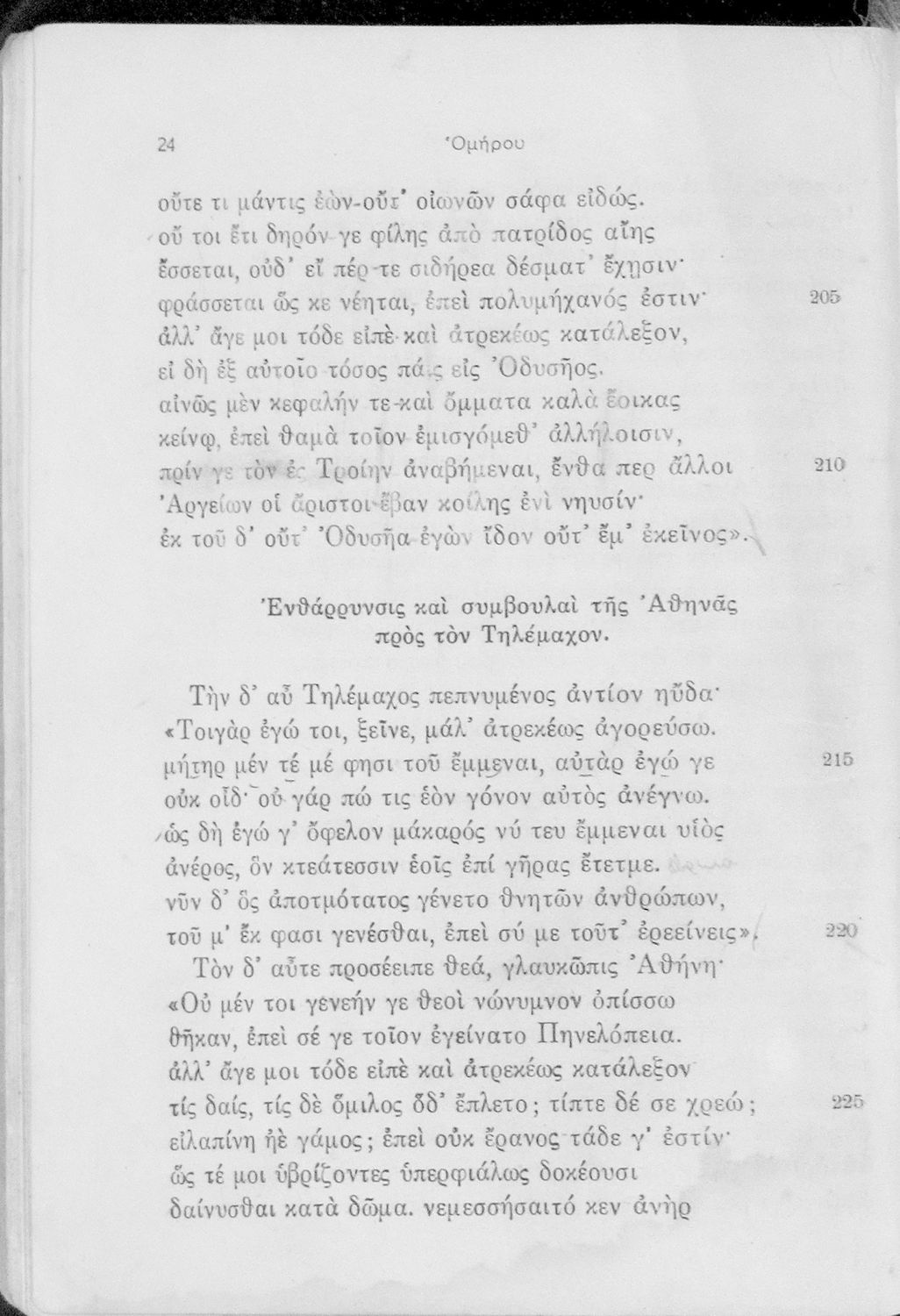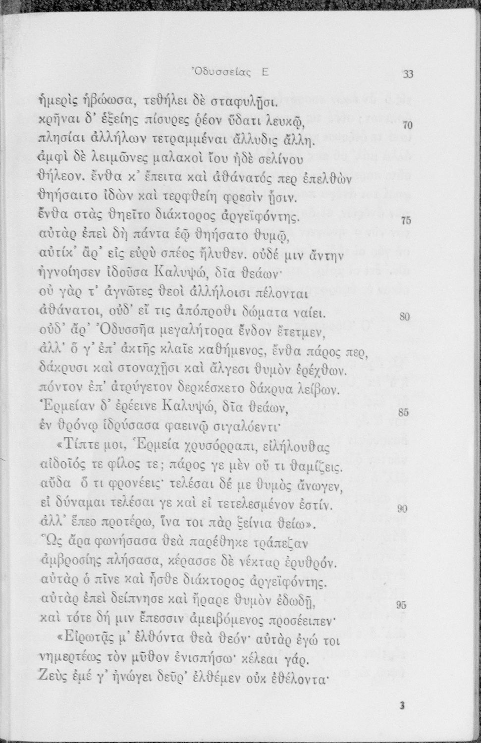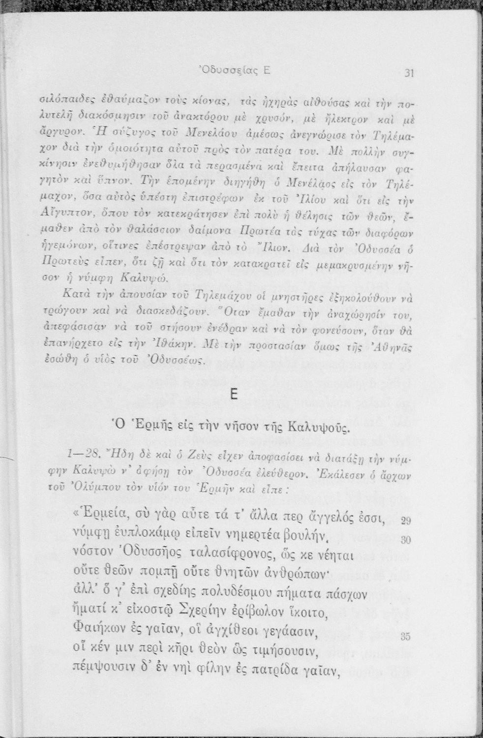Σχολικό εγχειρίδιο Αρχαίων Ελληνικών Ε΄ Γυμνασίου που περιέχει αποσπάσματα από τις ραψωδίες της Οδύσσειας, εισαγωγή στη ζωή και το έργο του Όμηρου, περιλήψεις των ραψωδιών, ερμηνευτικά, πραγματολογικά σχόλια και λεξιλογικές παρατηρήσεις.