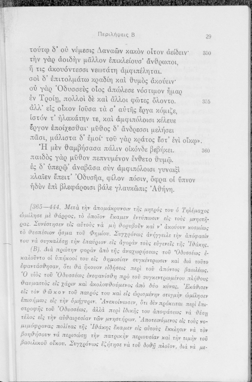 Βαθμίδα εκπαίδευσης: Δευτεροβάθμια Τάξη: Ε' Γυμνασίου Μάθημα: Αρχαία Ελληνικά Γλώσσα: Απλή καθαρεύουσα Παρουσίαση περιεχομένου: Σχολικό εγχειρίδιο Αρχαίων Ελληνικών Ε΄ Γυμνασίου που περιέχει αποσπάσματα από τις ραψωδίες της Οδύσσειας, εισαγωγή στη ζωή και το έργο του Όμηρου, περιλήψεις των ραψωδιών, ερμηνευτικά, πραγματολογικά σχόλια και λεξιλογικές παρατηρήσεις. |