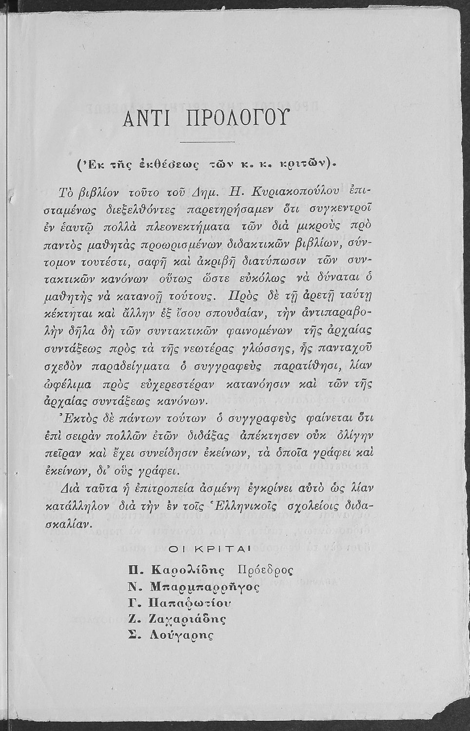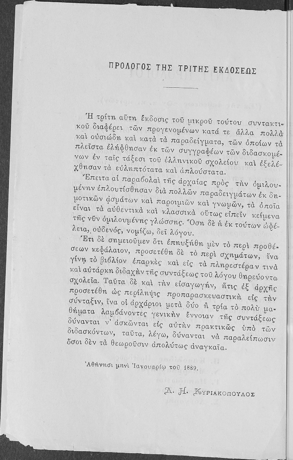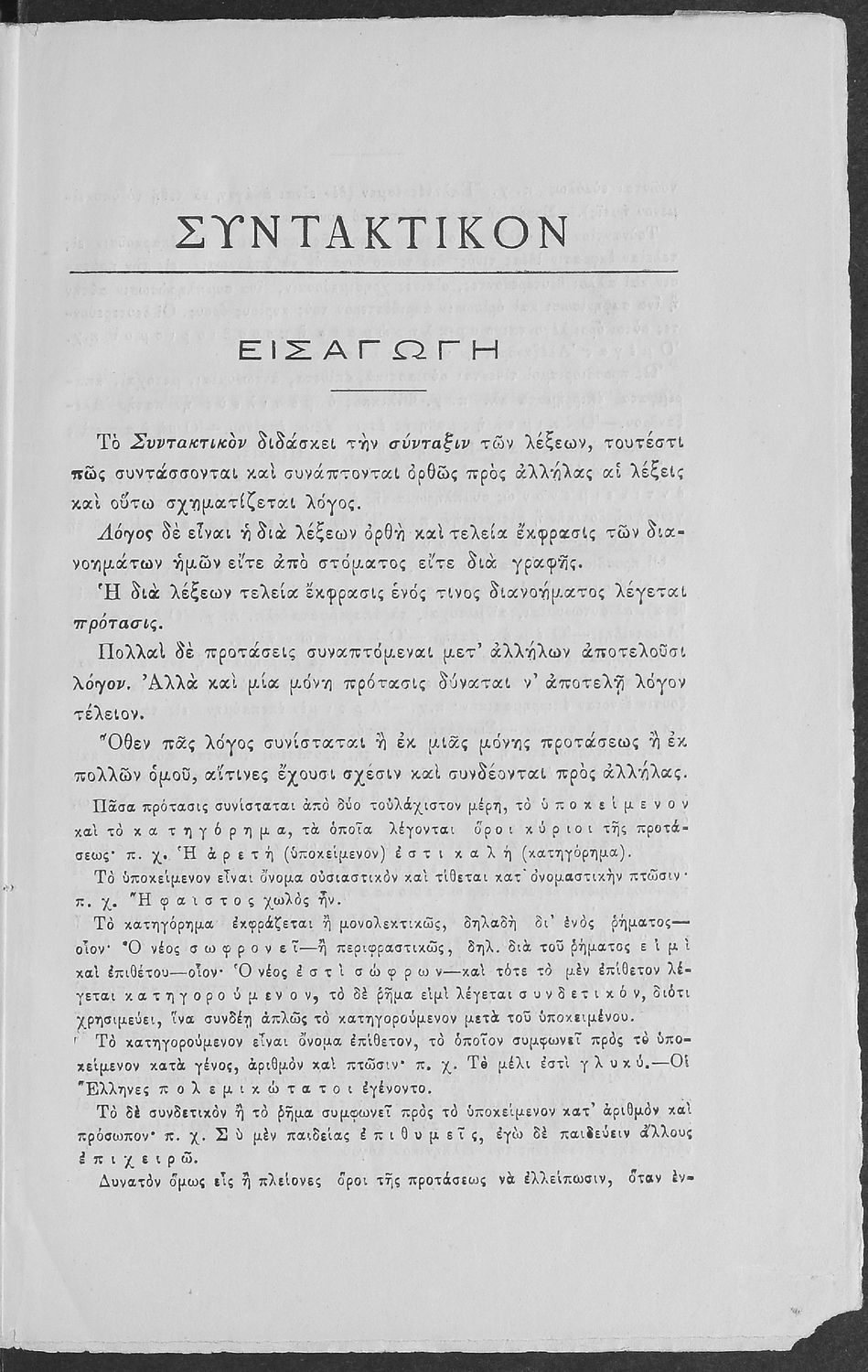 Σχολικό εγχειρίδιο Αρχαίων Ελληνικών για τους μαθητές των Ελληνικών Σχολείων και Παρθεναγωγείων που περιέχει τους συντακτικούς κανόνες.