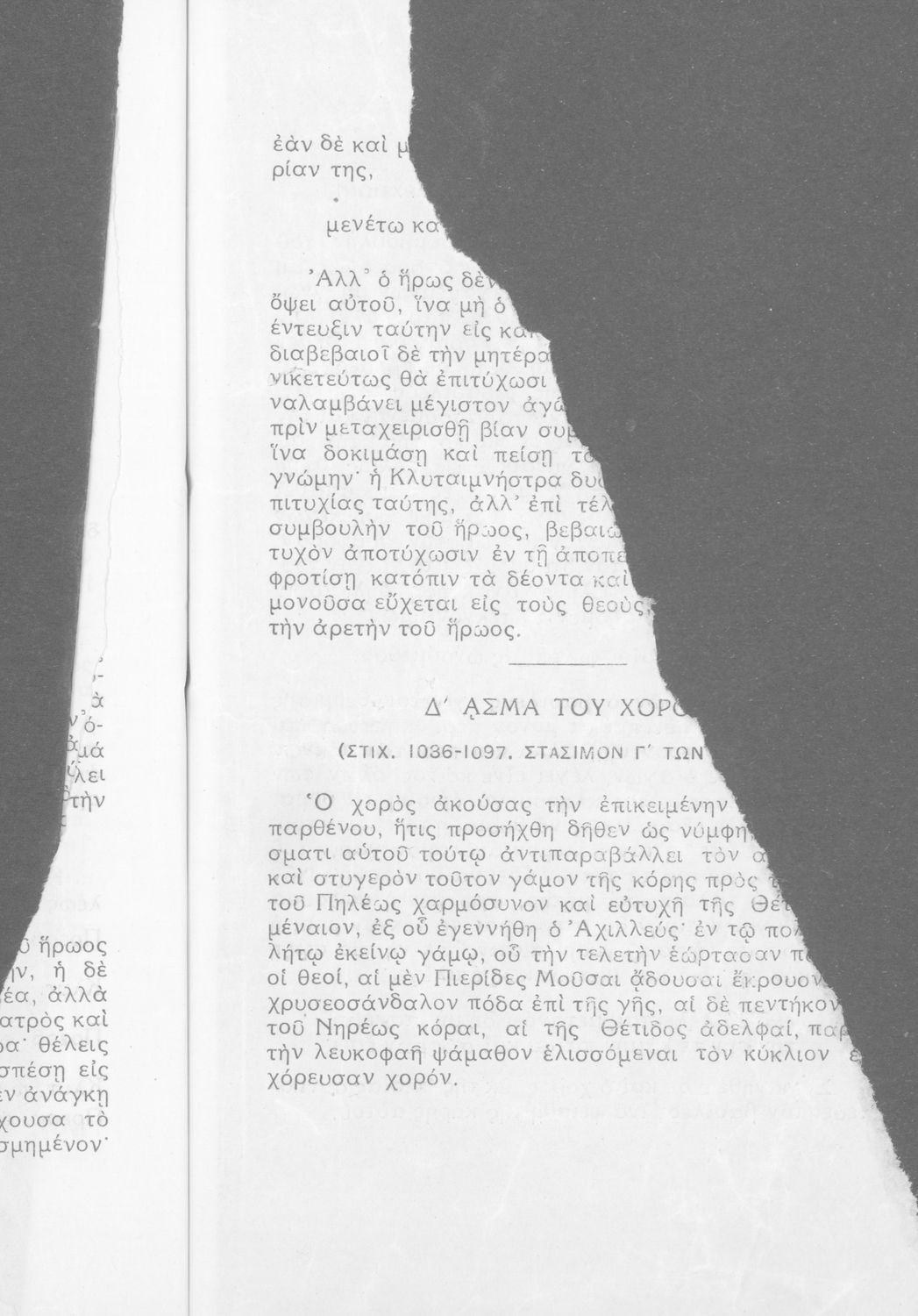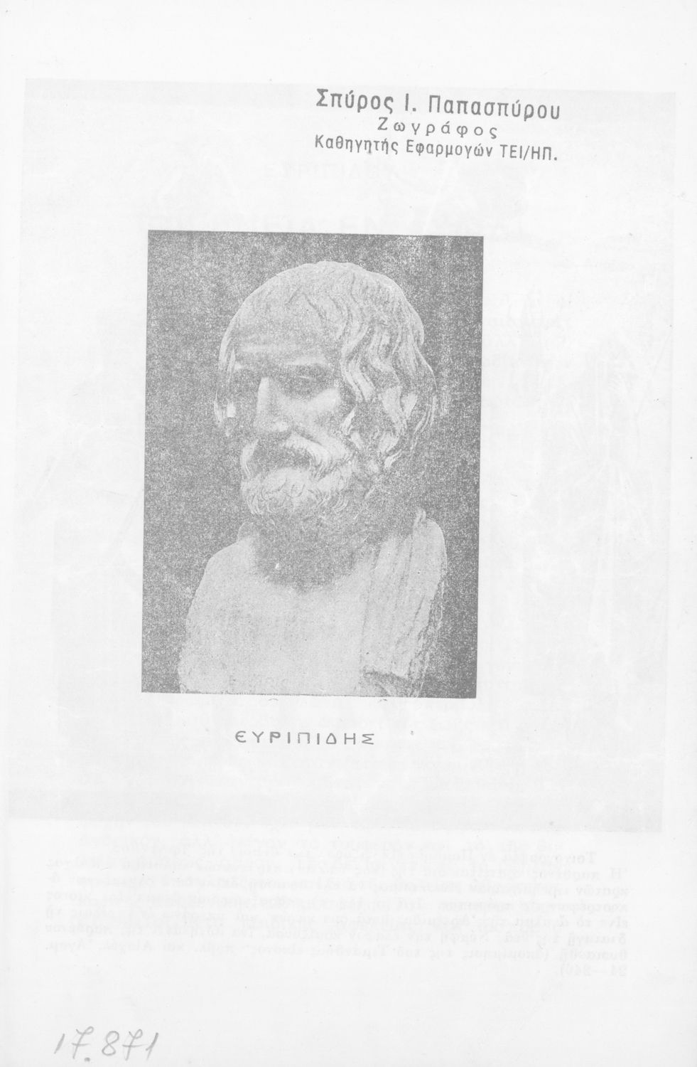 Σχολικό εγχειρίδιο Αρχαίων Ελληνικών Ε΄ Γυμνασίου που περιέχει εισαγωγή στο αρχαίο δράμα και στη ζωή και το έργο του Ευριπίδη, αποσπάσματα από την Ιφιγένεια η εν Αυλίδι και ερμηνευτικά σχόλια. Φέρει το σύμβολο
