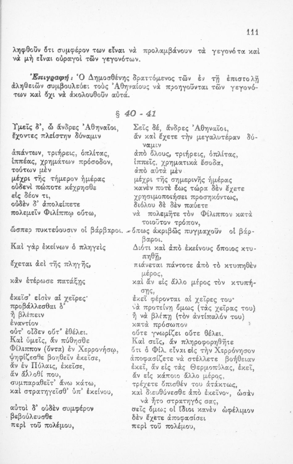 Δημοσθένους Α΄ Φιλιππικός δια τους μαθητάς της Δ΄ τάξεως των Εξαταξίων Γυμνασίων
