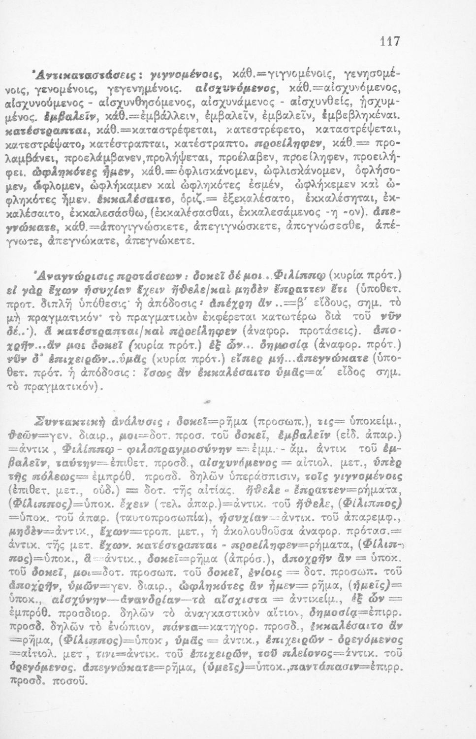 Μαθητικό βοήθημα Αρχαίων Ελληνικών Δ' Γυμνασίου που περιλαμβάνει τον Α΄ Φιλιππικό του Δημοσθένη, μετάφραση, γραμματικά, αισθητικά και σημασιολογικά σχόλια και αντικαταστάσεις ρημάτων.