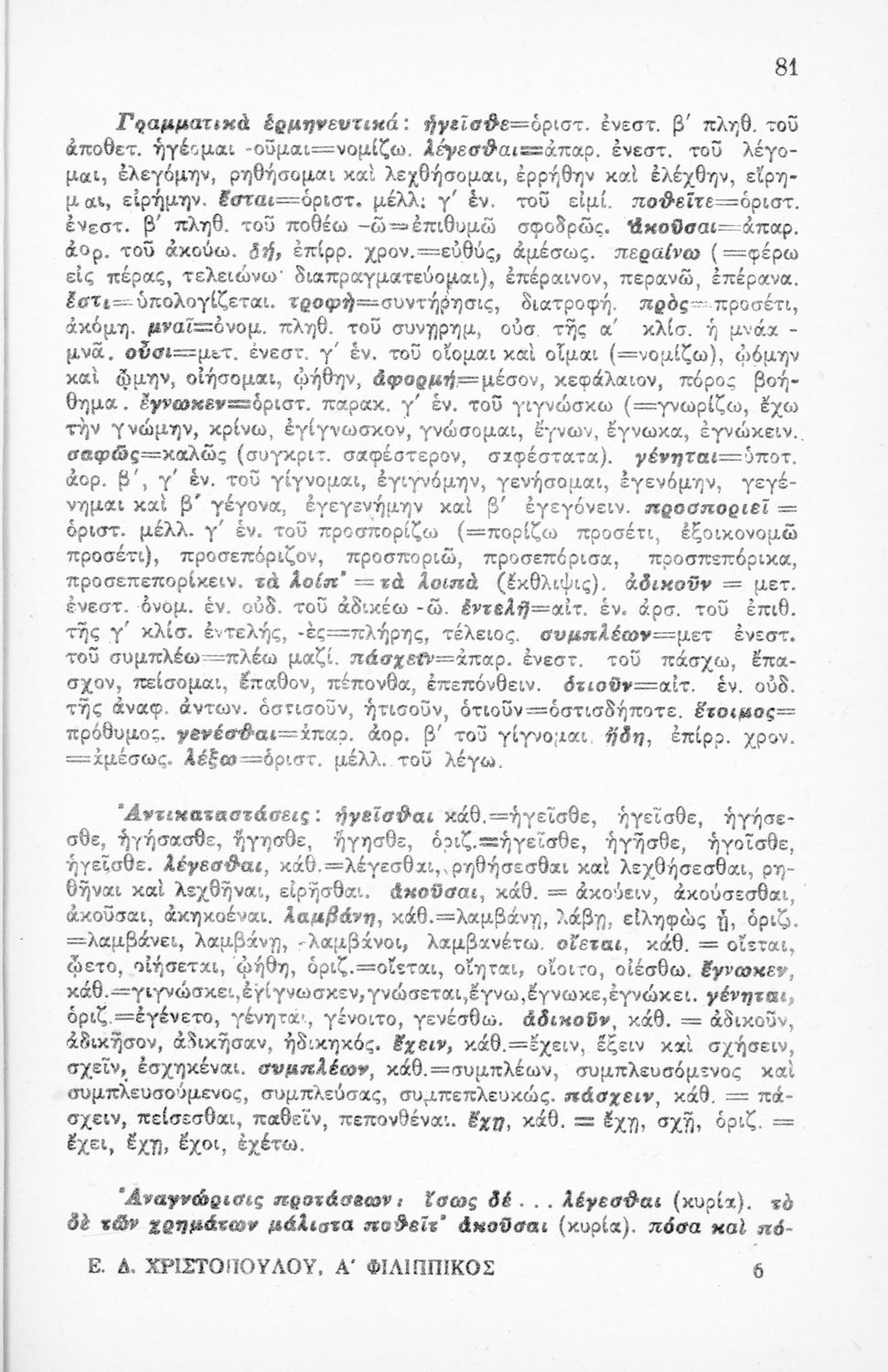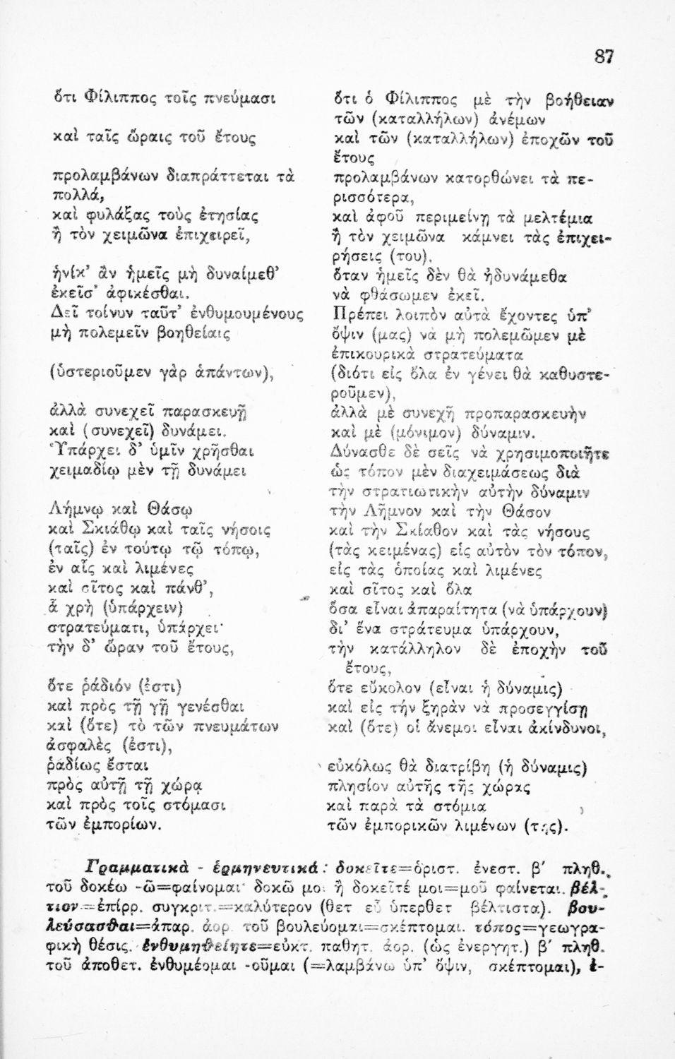Μαθητικό βοήθημα Αρχαίων Ελληνικών ΣΤ΄ Οκταταξίου Γυμνασίου που περιέχει τον Α΄ Φιλιππικό του Δημοσθένη, μετάφραση, γραμματικά και συντακτικά σχόλια.