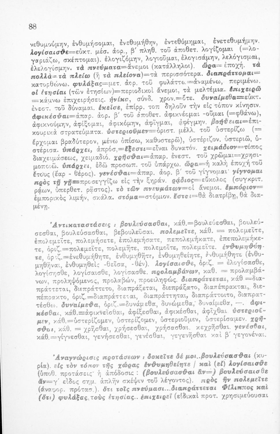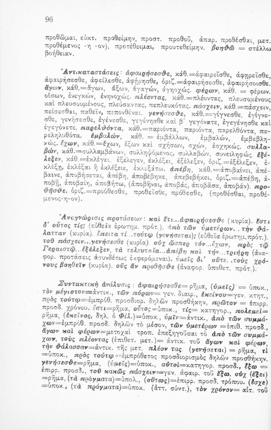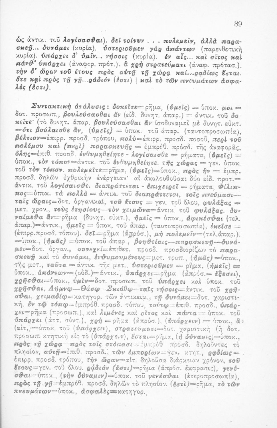Μαθητικό βοήθημα Αρχαίων Ελληνικών Δ' Γυμνασίου που περιλαμβάνει τον Α΄ Φιλιππικό του Δημοσθένη, μετάφραση, γραμματικά, αισθητικά και σημασιολογικά σχόλια και αντικαταστάσεις ρημάτων.