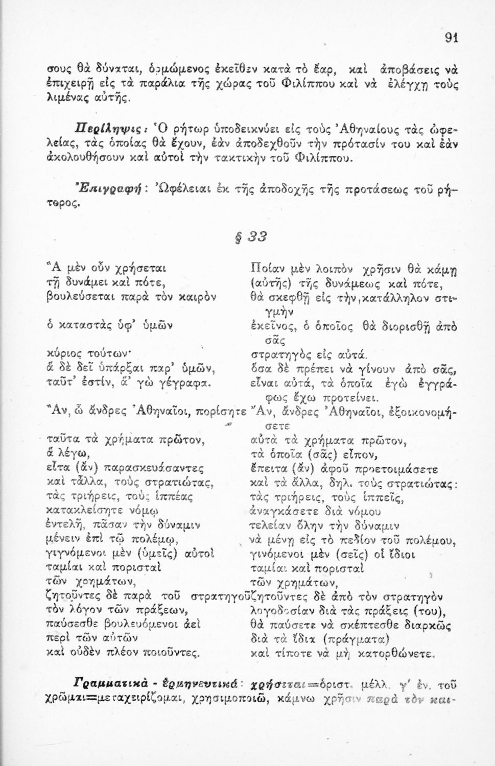 Δημοσθένους Α΄ Φιλιππικός δια τους μαθητάς της Δ΄ τάξεως των Εξαταξίων Γυμνασίων