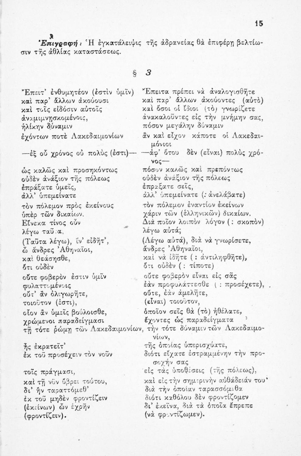 LDR 01148 2200193 4500 035 ## _a01-17872 040 ## _aΙνστιτούτο Εκπαιδευτικής Πολιτικής 041 ## _ael 100 ## _aΔημοσθένης _aΕυθ. Δ. Χριστόπουλος (μετάφραση _aσχόλια) 110 ## _a17872 245 0# _aΔημοσθένους Α΄ Φιλιππικός δια τους μαθητάς της Δ΄ τάξεως των Εξαταξίων Γυμνασίων 260 ## _aΑθήνα _bΕυθ. Χριστόπουλος 300 ## _a136 520 ## _aΜαθητικό βοήθημα Αρχαίων Ελληνικών Δ' Γυμνασίου που περιλαμβάνει τον Α΄ Φιλιππικό του Δημοσθένη, μετάφραση, γραμματικά, αισθητικά και σημασιολογικά σχόλια και αντικαταστάσεις ρημάτων. 521 ## _aΔ' Γυμνασίου 522 ## _aΕλλάδα 546 ## _aΚαθαρεύουσα 563 ## _aΜαλακό Εξώφυλλο 650 #4 _aΔημοσθένης _aΕπίλογος _aΠροοίμιο _aΦιλιππικός λόγος