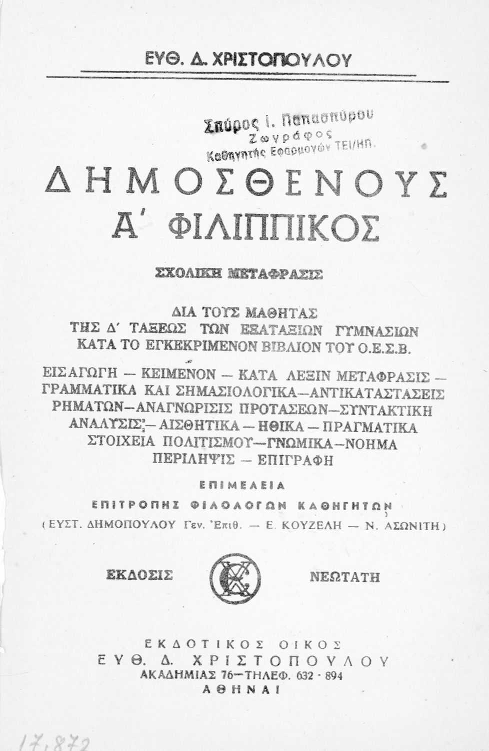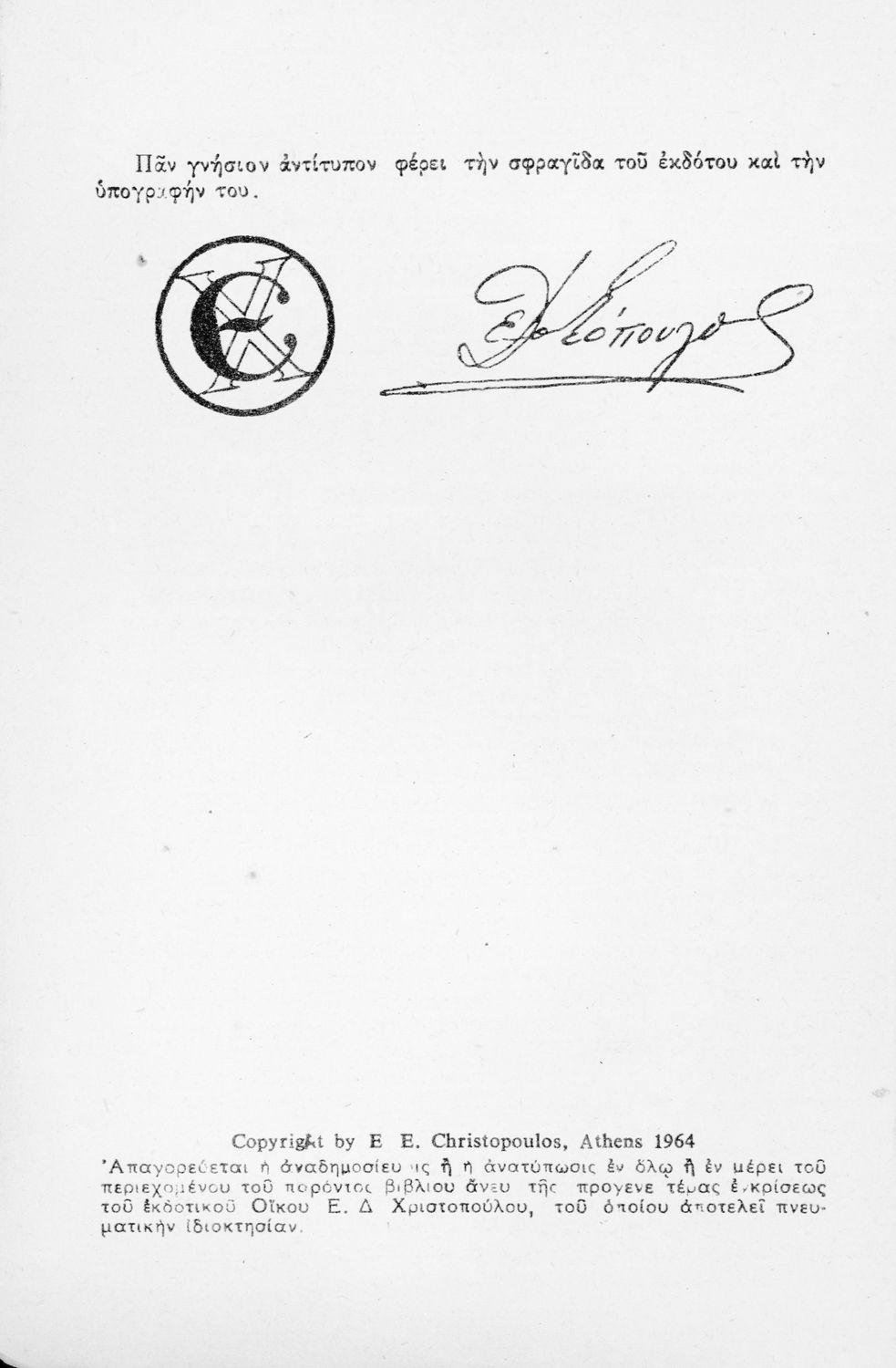 Εκδότης: Ευθ. Χριστόπουλος Τόπος έκδοσης: Αθήνα |