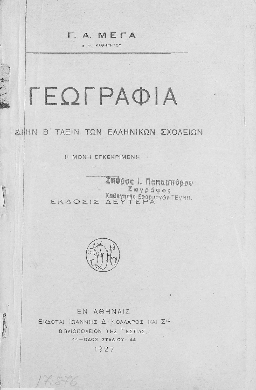 Τίτλος: Γεωγραφία δια την Β΄ τάξιν των Ελληνικών Σχολείων