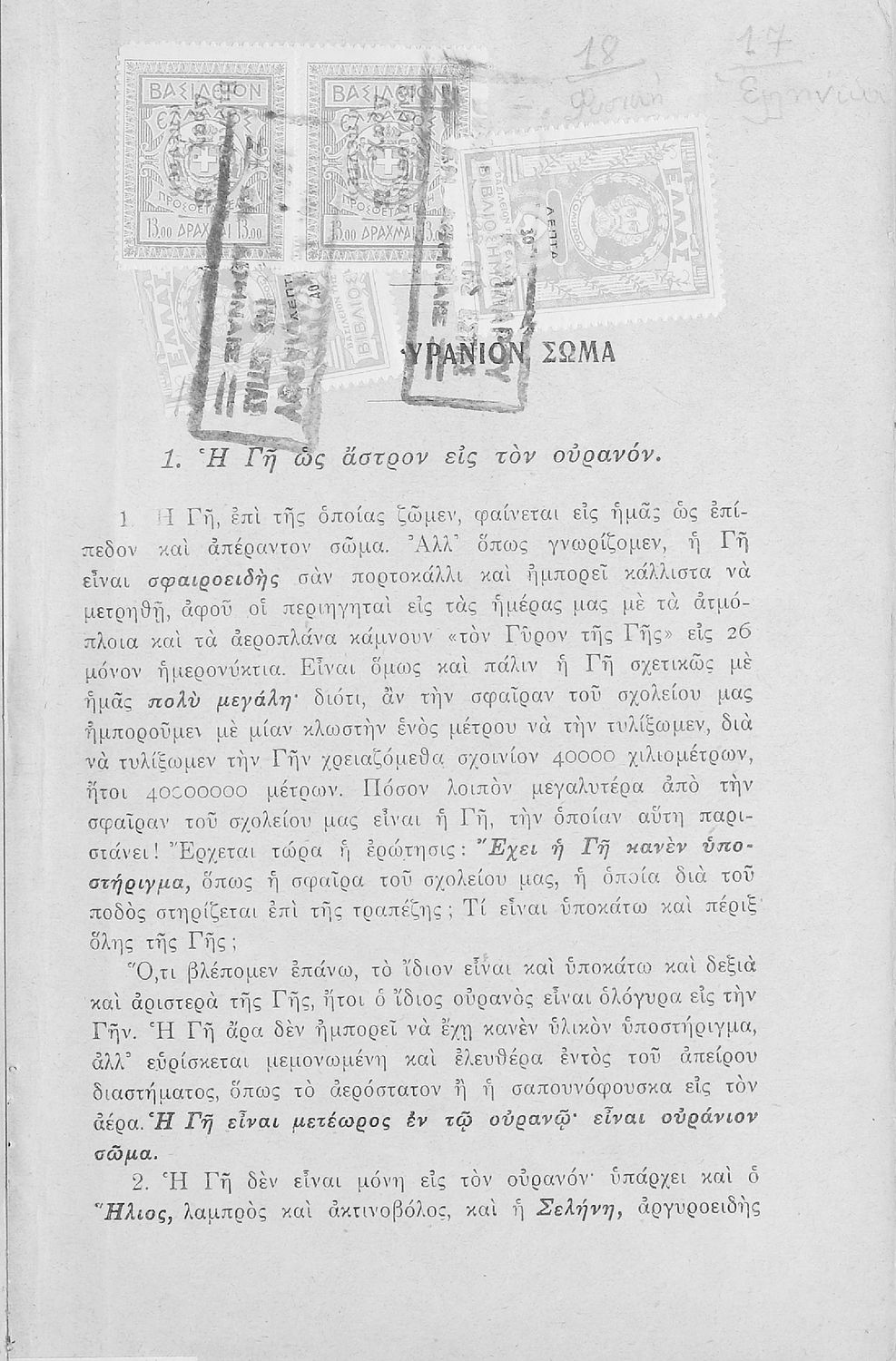 Τάξη:  Β' Ελληνικού Σχολείου / Γ'Ελληνικού Σχολείου / Αστικό Σχολείο / Παρθεναγωγείο
