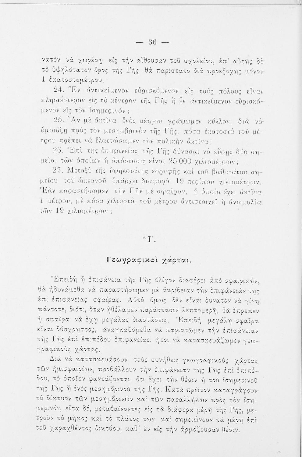 Βαθμίδα εκπαίδευσης: Δευτεροβάθμια Τάξη: Δ' Γυμνασίου Μάθημα: Γεωγραφία Γλώσσα: Καθαρεύουσα Παρουσίαση περιεχομένου: Σχολικό εγχειρίδιο Γεωγραφίας Δ' Γυμνασίου που περιλαμβάνει στοιχεία φυσικής και μαθηματικής γεωγραφίας και γεωλογίας. |