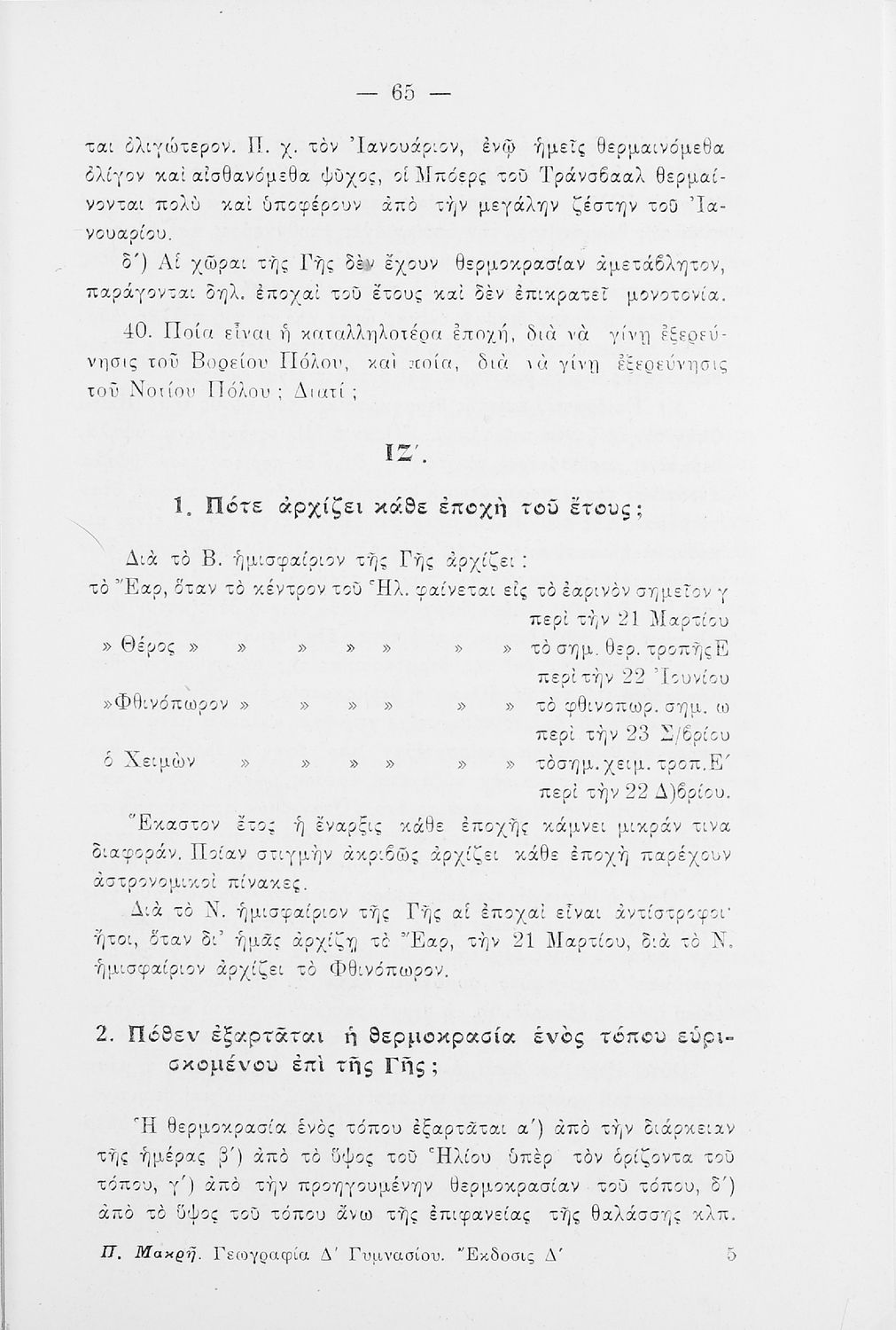 Βαθμίδα εκπαίδευσης: Δευτεροβάθμια Τάξη: Δ' Γυμνασίου Μάθημα: Γεωγραφία Γλώσσα: Καθαρεύουσα Παρουσίαση περιεχομένου: Σχολικό εγχειρίδιο Γεωγραφίας Δ' Γυμνασίου που περιλαμβάνει στοιχεία φυσικής και μαθηματικής γεωγραφίας και γεωλογίας. |