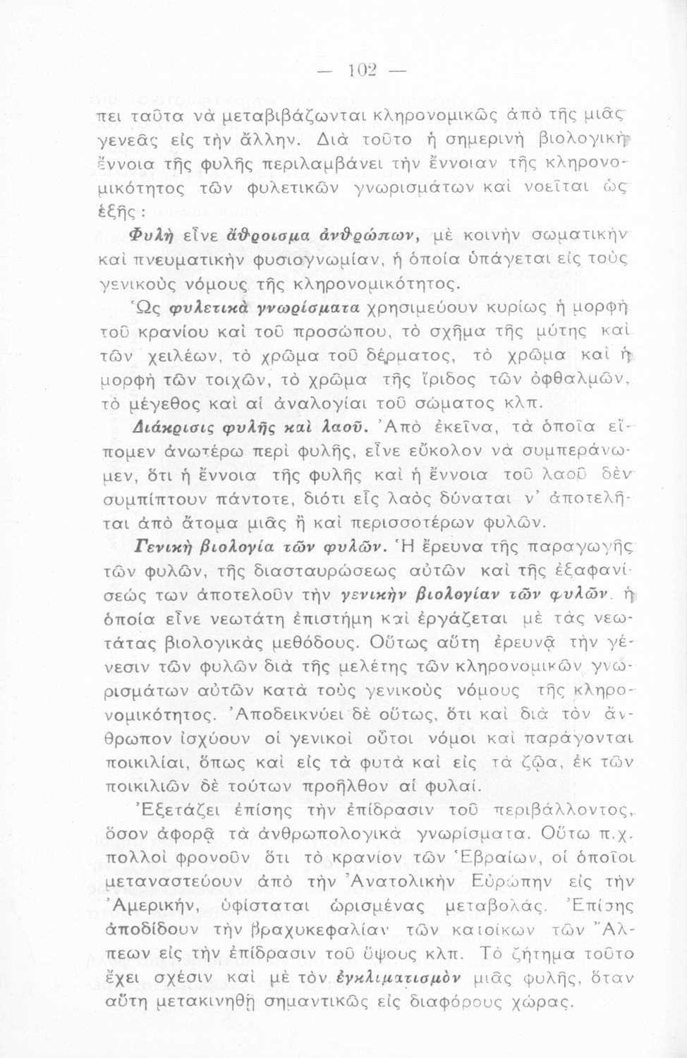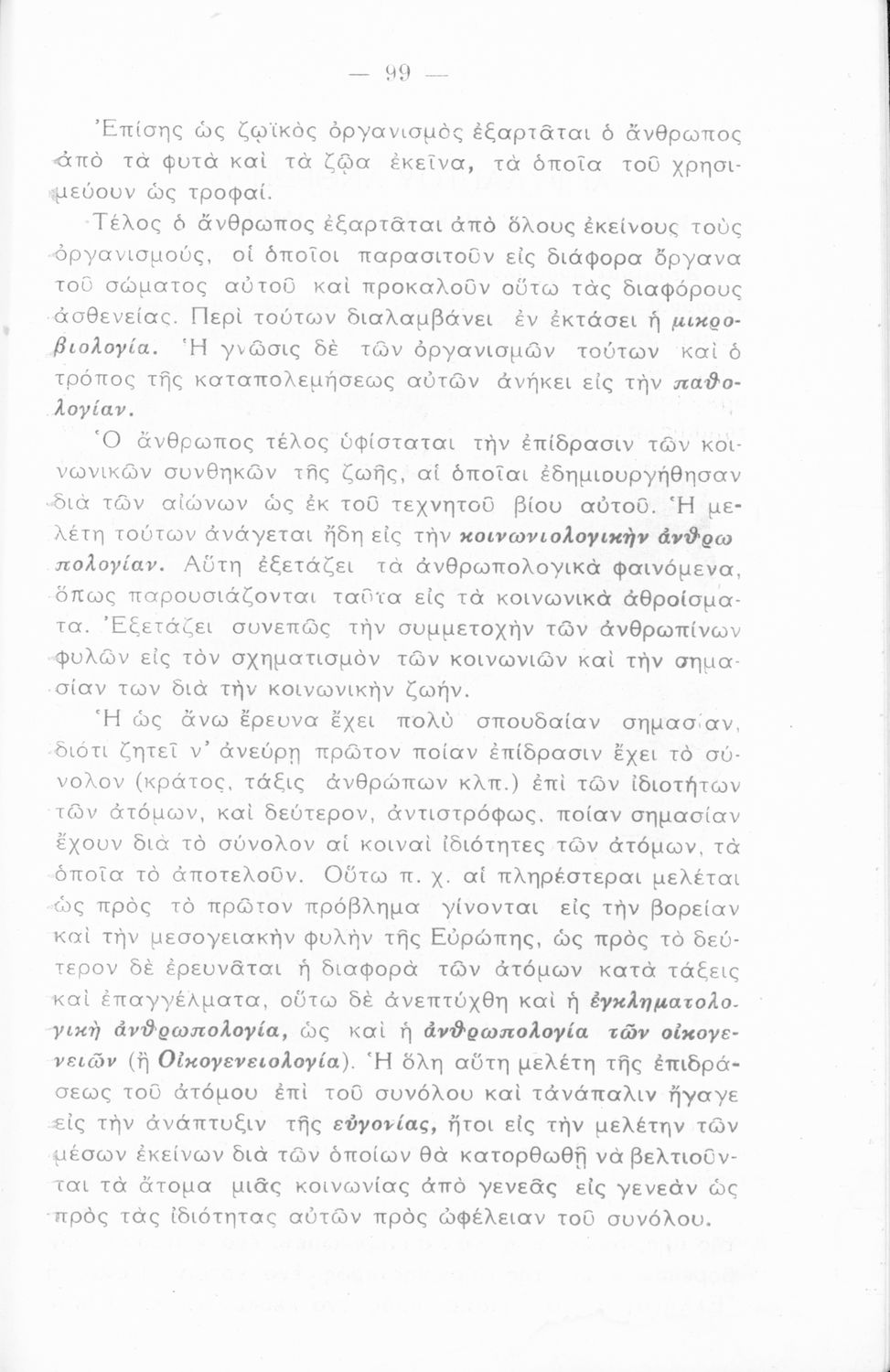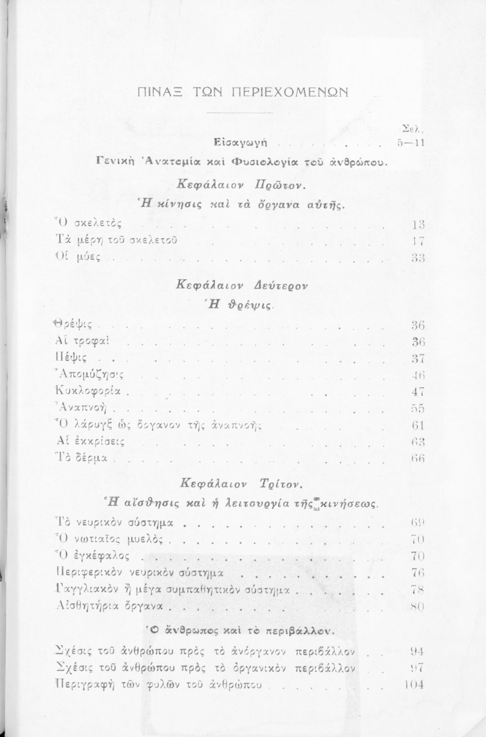 Βαθμίδα εκπαίδευσης: Δευτεροβάθμια Τάξη: Δ' Γυμνασίου Μάθημα: Ανθρωπολογία Γλώσσα: Απλή καθαρεύουσα Παρουσίαση περιεχομένου: Σχολικό εγχειρίδιο της Δ΄ Γυμνασίου για το μάθημα της Ανθρωπολογίας. Παρέχει πληροφορίες για την κατασκευή και τη λειτουργία του ανθρώπινου οργανισμού, τη γέννηση, την ανάπτυξη, καθώς και τη σχέση του ανθρώπου με το φυσικό περιβάλλον στο τέλος γίνεται αναφορά στις ανθρώπινες φυλές. |
