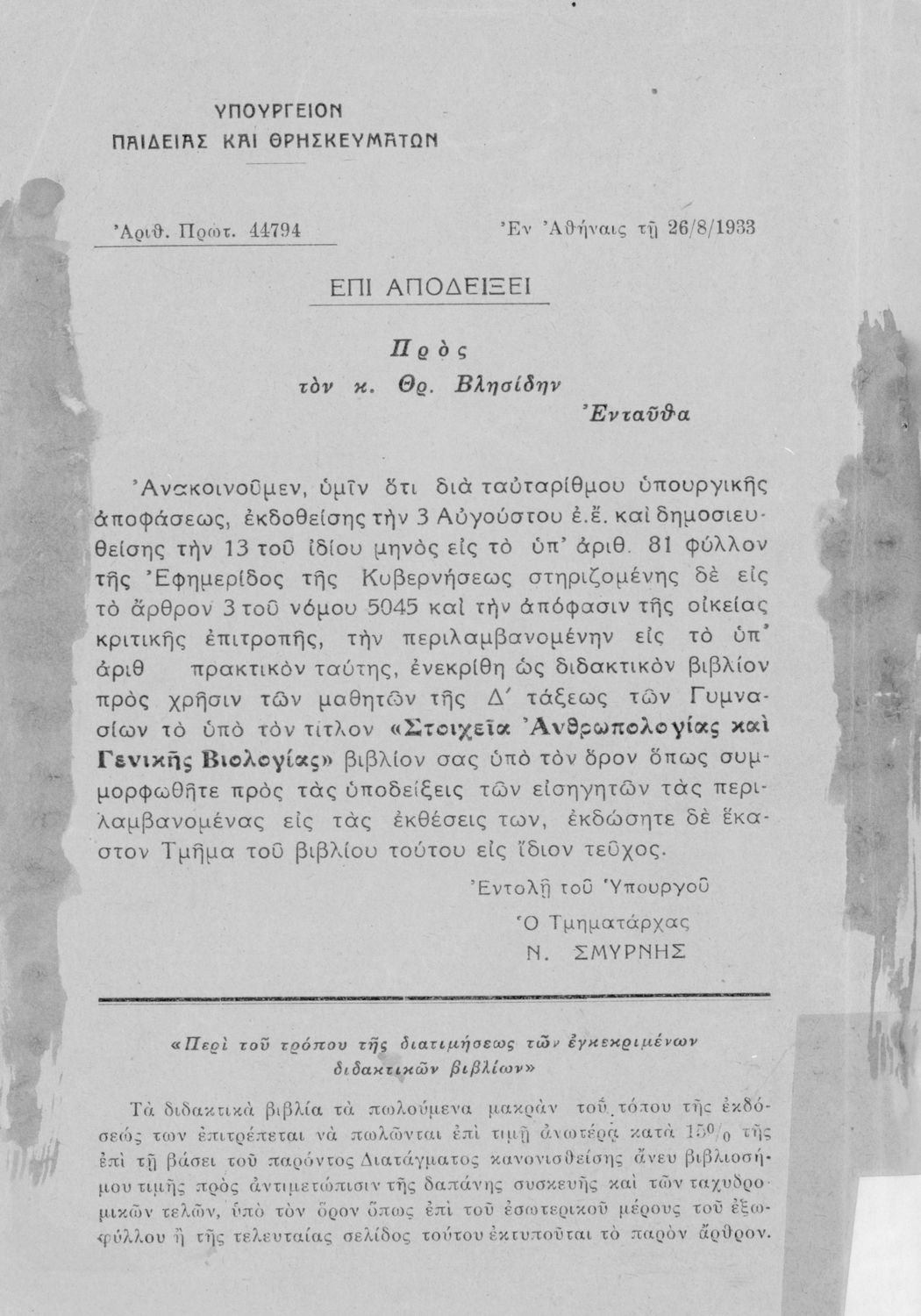 Εκδότης: Βιβλιοπωλείο Ιωάννη Ν. Σιδέρη Έτος έκδοσης: 1938 Τόπος έκδοσης: Αθήνα Έκδοση: 6η Υπουργική απόφαση / Σύμβαση: 98116/31-10-1938. Έτος έγκρισης: 1938 |