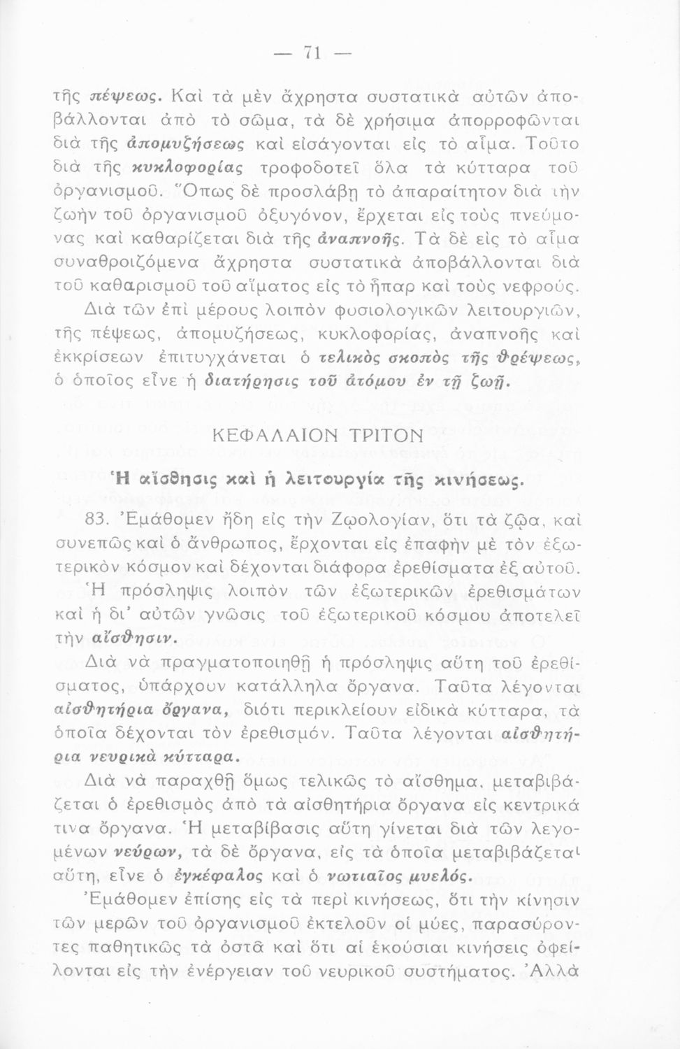 Βαθμίδα εκπαίδευσης: Δευτεροβάθμια Τάξη: Δ' Γυμνασίου Μάθημα: Ανθρωπολογία Γλώσσα: Απλή καθαρεύουσα Παρουσίαση περιεχομένου: Σχολικό εγχειρίδιο της Δ΄ Γυμνασίου για το μάθημα της Ανθρωπολογίας. Παρέχει πληροφορίες για την κατασκευή και τη λειτουργία του ανθρώπινου οργανισμού, τη γέννηση, την ανάπτυξη, καθώς και τη σχέση του ανθρώπου με το φυσικό περιβάλλον στο τέλος γίνεται αναφορά στις ανθρώπινες φυλές. |