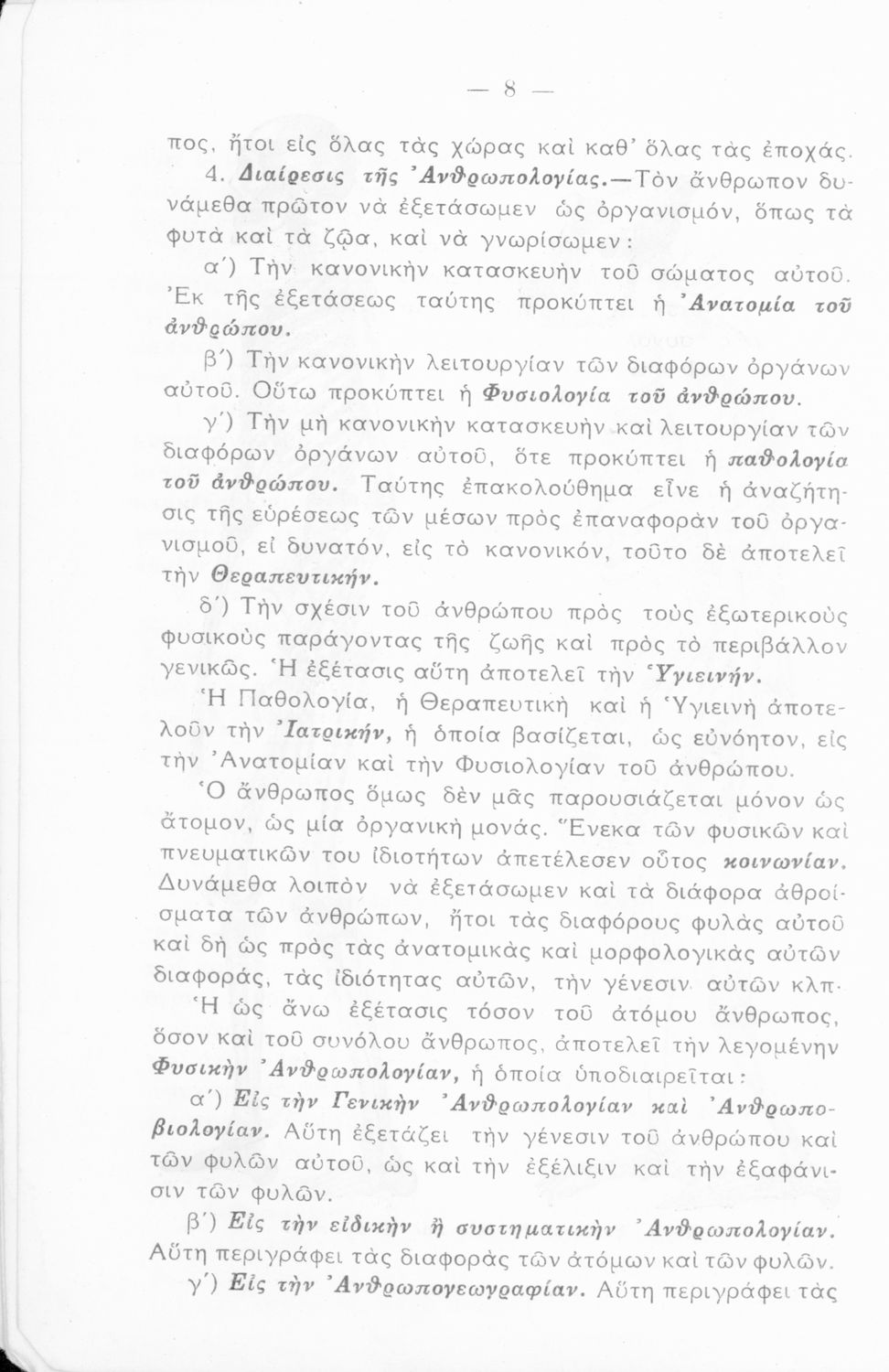 Σχολικό βιβλίο Ανθρωπολογίας για τη Δ΄ τάξη των Εξαταξίων Γυμνασίων που εστιάζει στην ανατομία και φυσιολογία του ανθρώπινου σώματος και τη σχέση του με το περιβάλλον. Ο συγγραφέας ήταν καθηγητής πανεπιστημίου.