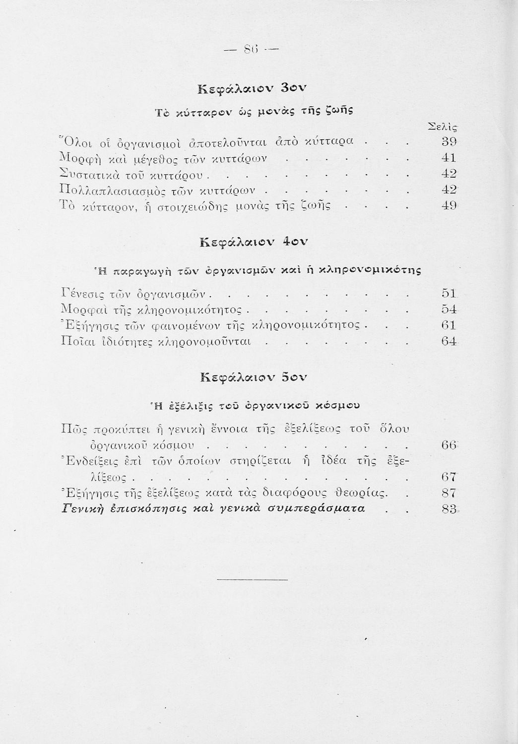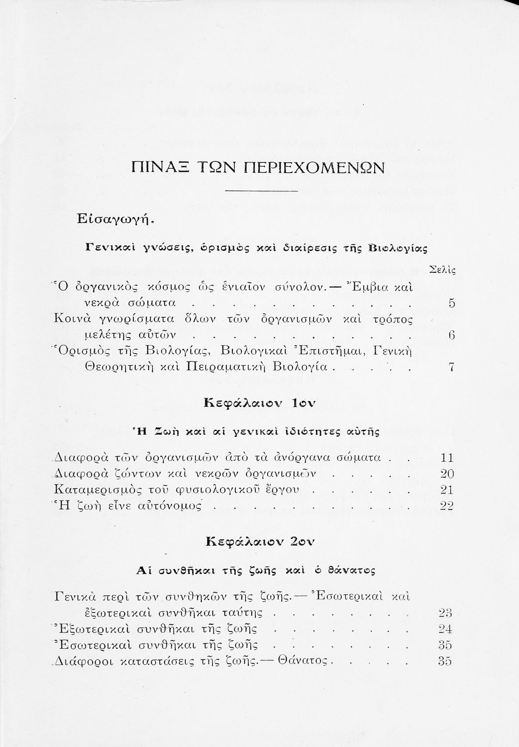 Σχολικό εγχειρίδιο Βιολογίας Δ΄ Γυμνασίου που εστιάζει στις συνθήκες γέννησης, μεταβολής και θανάτου των έμβιων οργανισμών. Ο συγγραφέας ήταν καθηγητής της γενικής Βιολογίας στο Πανεπιστήμιο Αθηνών.
